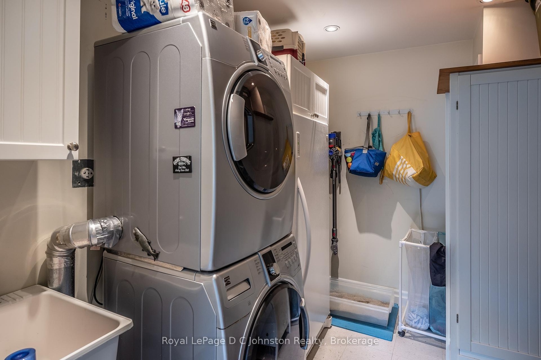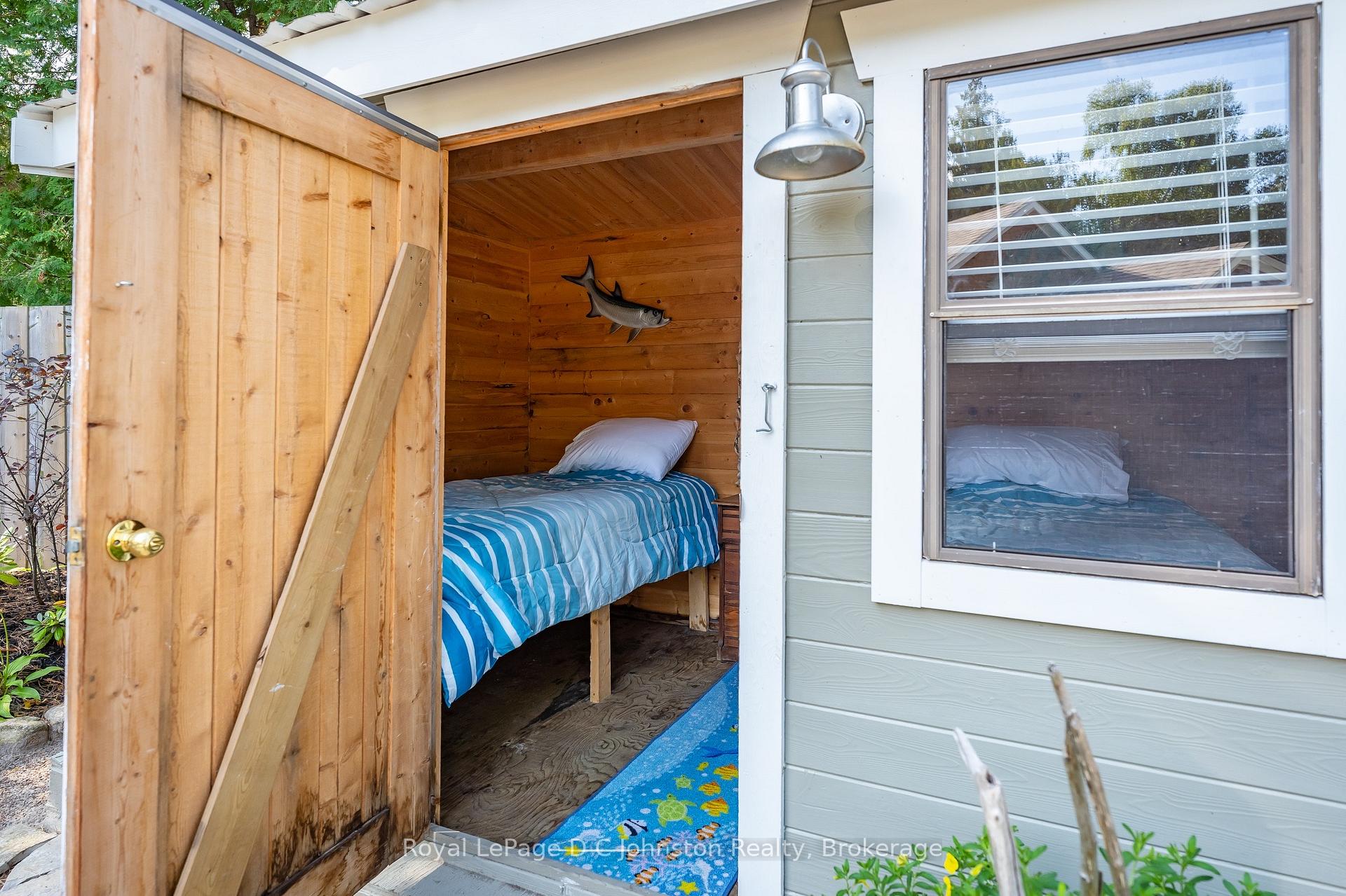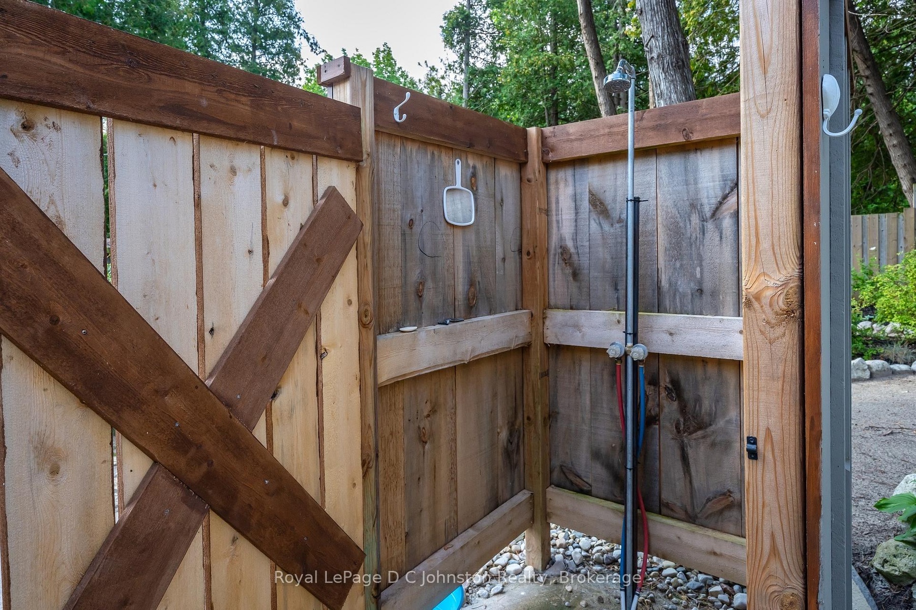 DescriptionDream Beachfront Retreat in Port Elgin. This is an unparalleled opportunity to own a piece of Saugeen Beach Road's coveted shoreline, nestled in the trees along the enclave known locally as Eidt's Grove. This property boasts a generous 111 foot frontage of sandy Lake Huron shoreline, offering spectacular panoramic views and sunsets. The large, private lot is a natural oasis, featuring a charming babbling stream that meanders through the property. The fully renovated 1,800 square foot year-round home or vacation hideaway (fully updated in 2010) is designed for comfort and style. Inside, the home is anchored by a rustic stone fireplace in the main living area, complemented by engineered hickory wood floors and a bright, functional kitchen featuring whitewashed poplar cabinetry, a large island, and stainless steel appliances. With three bedrooms, a large entrance foyer, and a main-floor laundry room, this home is as practical as it is beautiful. Step outside to exceptional outdoor living spaces, including stunning exposed aggregate concrete walkways and patios that lead directly to the white sand beach. The property is complete with an oversized, detached 24 x 30 foot insulated garage/workshop, a woodshed, a 7 x 11 foot bunkie, and a refreshing outdoor shower, making this a truly turn-key lakefront gem.Amenities- Auto Garage Door Remote