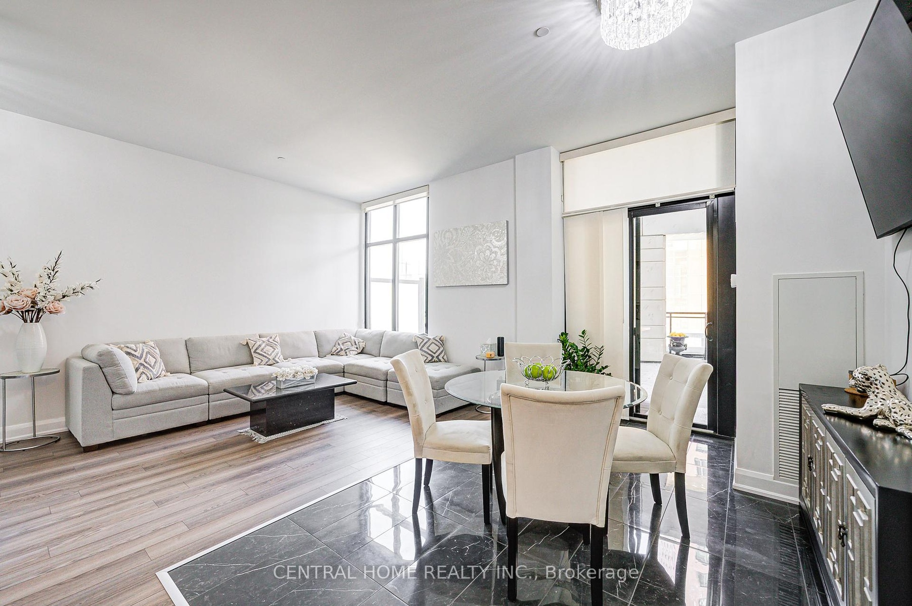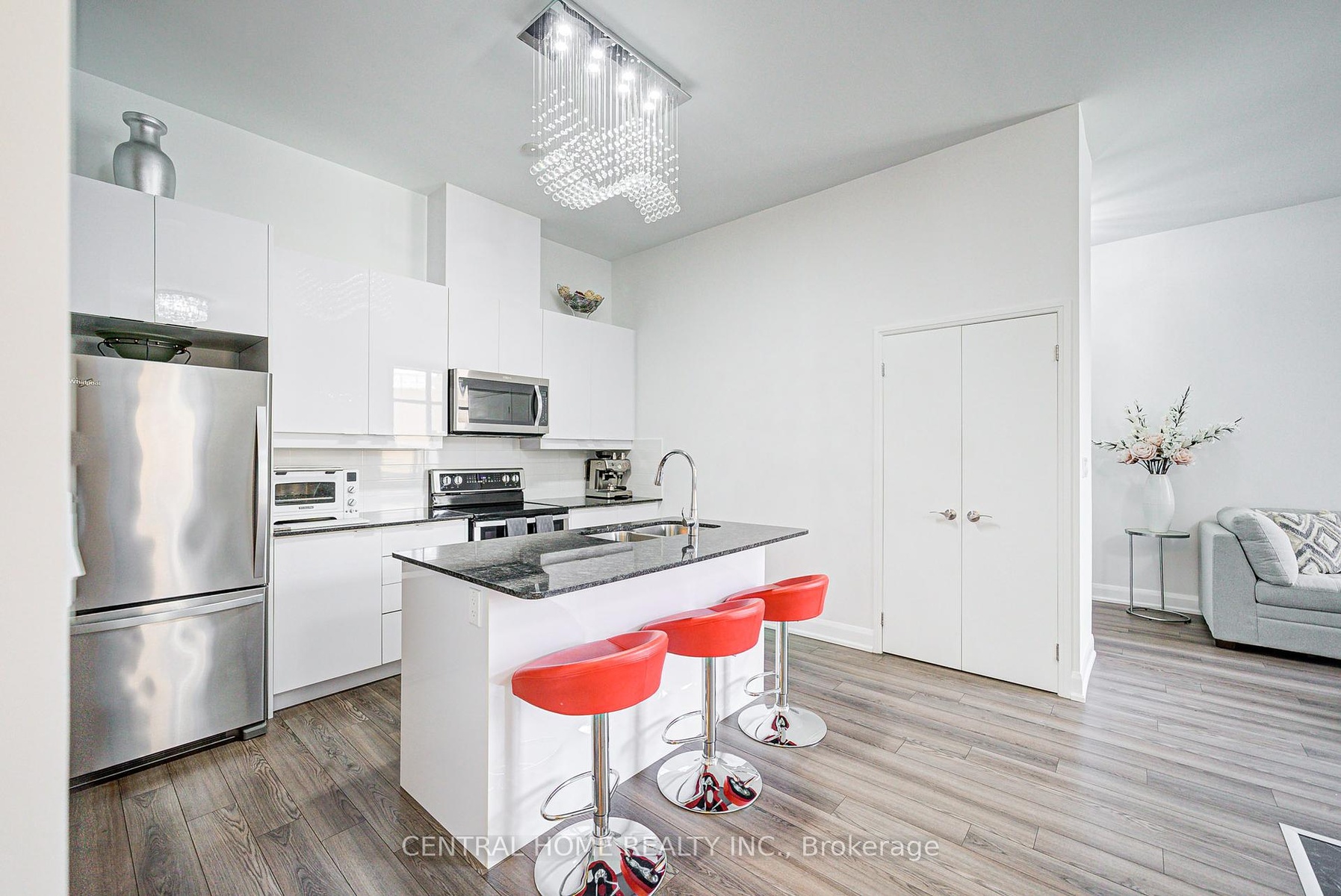 DescriptionA rare opportunity to own an exceptional, sun-drenched condo offering over 900 sq ft of elegant living space with soaring 10-ft ceilings and a thoughtfully designed open-concept layout. Enjoy over 350 sq ft of exclusive-use terrace equipped with gas, water, and electrical connections ideal for outdoor entertaining. Situated on the 2nd floor, just steps from premier amenities including a party room, gym, yoga studio, indoor pool, childrens play area, and more. Beautifully appointed with contemporary finishes and floor-to-ceiling windows for an abundance of natural light. Prime location near the subway, 24/7 shopping, university, indoor/outdoor play areas, medical clinic, and pharmacy. Quick access to Hwy 407 & 400. Includes an oversized P1 parking spot near the elevator and a large private storage locker. A perfect blend of style, space, and comfort ideal for professionals, couples, or downsizers.Amenities- Auto Garage Door Remote