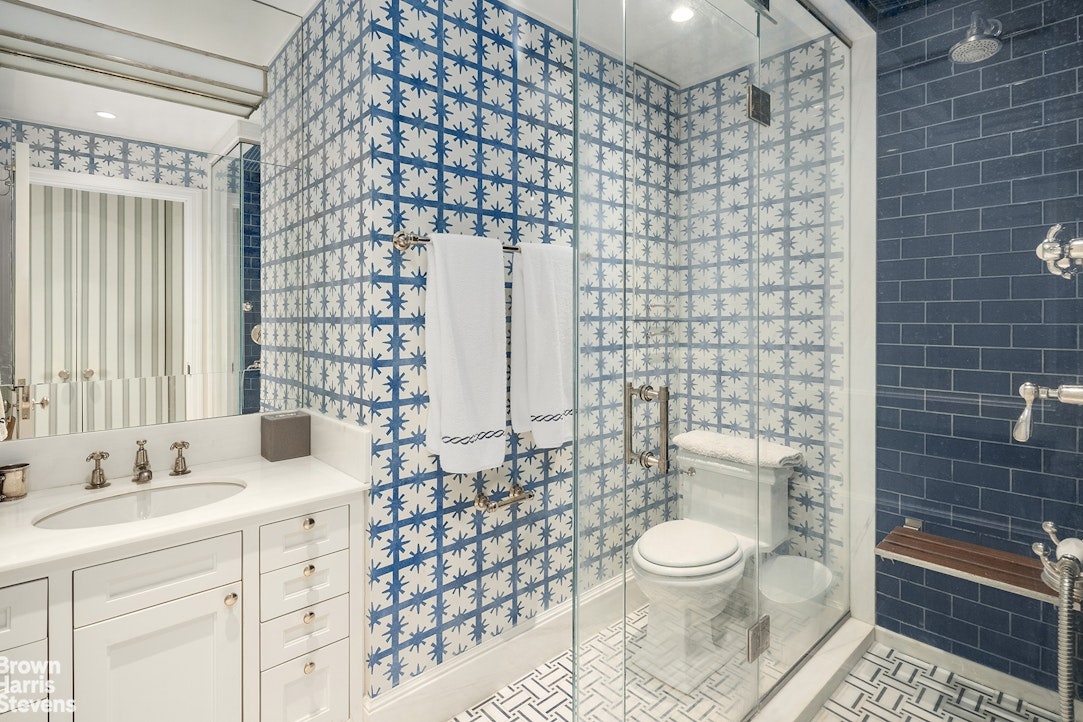 Two additional bedrooms, each with en suite baths (one with steam shower), walk-in closets, and custom cabinetry