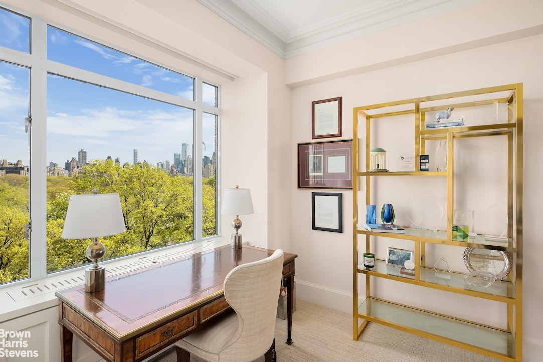 Featuring breathtaking, unobscured views of Central Park, the City skyline and open exposures east and north and a south-side angle, this spectacularly renovated space has walls of monumental picture windows-rare among CPW cooperatives-flooding the interiors with dazzling natural light all day long.