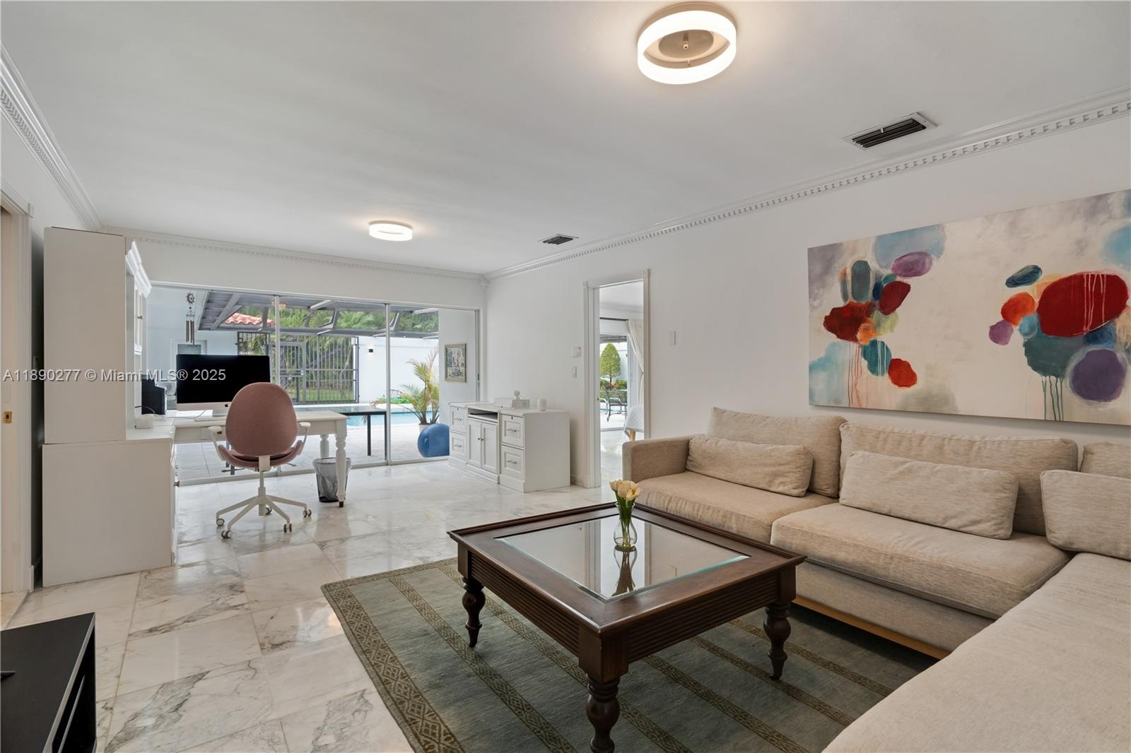 Stunning exclusive ranch-style one-story residence featuring 6 bedrooms and 4 bathrooms on an expansive 25,519 sq. ft. lot — a rare opportunity to own such a spacious property in prestigious Coral Gables. Designed for comfort, relaxation, and entertaining, the home is filled with natural light and offers beautiful courtyard and pool views throughout. Highlights include marble floors, a screened pool area, lush landscaping, fruit trees (mango, avocado, and loquat), a two-car garage, two A/C units, and generous closets. Ideally located near US-1, the University of Miami, Coconut Grove, and South Miami, with easy access to major highways leading to Downtown Miami and Brickell. Endless possibilities to upgrade or expand. All living spaces are on one level — no stairsVirtual Tour: https://www.propertypanorama.com/instaview/mia/A11890277Amenities- BedroomOnMainLevel