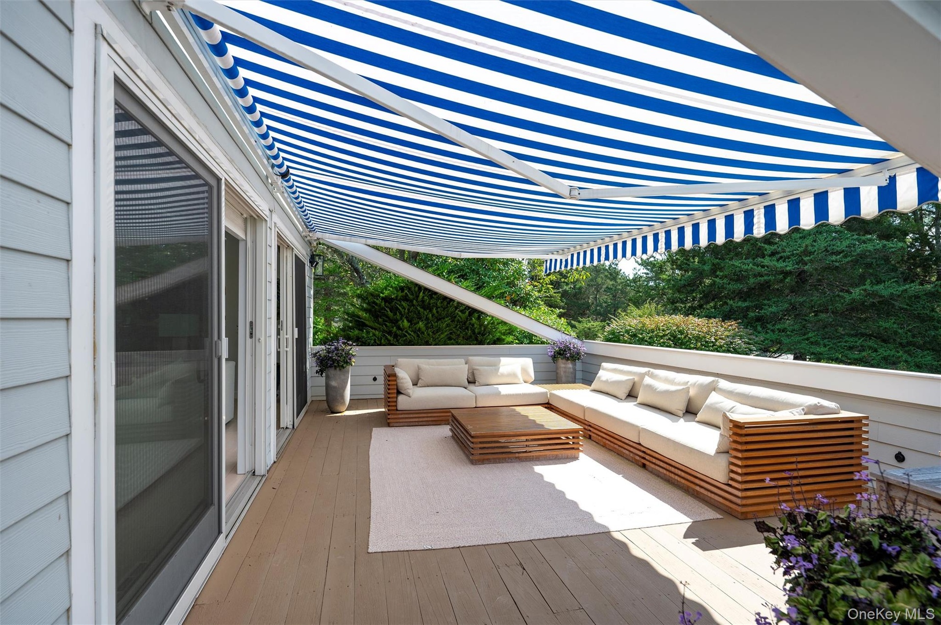 The ultimate summer property- in the heart of Westhampton Beach, is a four bed, four bath light filled contemporary with pool, tennis and hot tub in the prestigious estate district. This fully renovated home offers over 3000 square feet on two levels, with multiple decks, and a chef's kitchen . Enter to a light filled open living space with soaring ceilings, skylights and colorful art adorning the walls. Each room has access to the wraparound decks, with awnings creating shady outdoor rooms to bring the entertaining outdoors . Enjoy spaces for lounging, or cooking, and a fire pit for cozy evenings. Two bedrooms and a den complete the lower level, with two full baths, one featuring access to the pool deck. Upstairs are two bedrooms well as laundry facilities. The gracious primary features its own private sun deck (with an awning for those preferring shade) and a luxurious bath with soaking tub , enormous shower with dual rain shower heads, double vanity and private water closet. The expansive outdoor area includes a sparkling pool, with waterfalls and a hot tub,all surrounded by flowers, offering a serene escape for unwinding. Below the expansive raised deck is a Har-Tru tennis court for complete resort style living. You may not want to leave, but if you do the Village of Westhampton Beach , with the shops and restaurants of its vibrant new Main st is less than a mile away, and water views are just around the corner. Dune Road is less than 2 miles away. Available for a two-week vacation in July or August,, or for the US Open Golf tournament in June 2026, this property is designed for those seeking a luxurious getaway. Experience the best of Westhampton Beach living in this exceptional home.