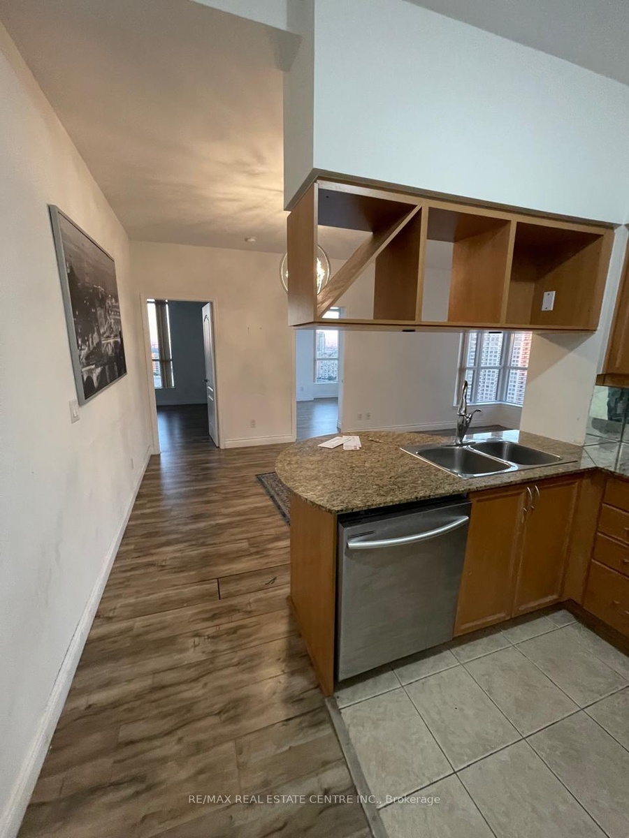 Located in the heart of Mississauga's vibrant Square One district, this high-floor corner suite offers 968 sq.ft. of well-designed living space plus an impressive wrap-around balcony with an extended section, perfect for enjoying panoramic southeast views overlooking Celebration Square and Lake Ontario.Featuring 9 ceilings and floor-to-ceiling windows, the unit is bright and airy throughout. The thoughtfully designed layout includes a large den converted into a third bedroom, providing flexibility for family, guests, or a home office.The upgraded kitchen boasts granite countertops, mirrored backsplash, custom wine rack, and track lightingideal for both everyday living and entertaining. Stylish high-end laminate flooring and mirrored closets add a modern touch, while the open-concept design enhances flow and functionality.Steps to Square One Shopping Centre, Sheridan College, restaurants, parks, public transit, and major highways, this condo offers not just a home, but a lifestyle in one of Mississaugas most dynamic communities.
