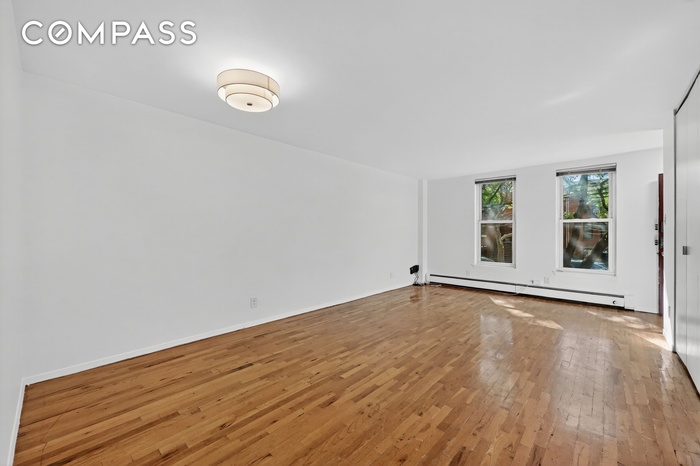 Both bedrooms are positioned at the rear of the residence for added privacy and are nearly identical in size, making them versatile for a variety of needs. Each has its own closet, supplemented by an entry closet, a hall closet, and a spacious living room closet with washer/dryer—a rare convenience in Brooklyn apartments.