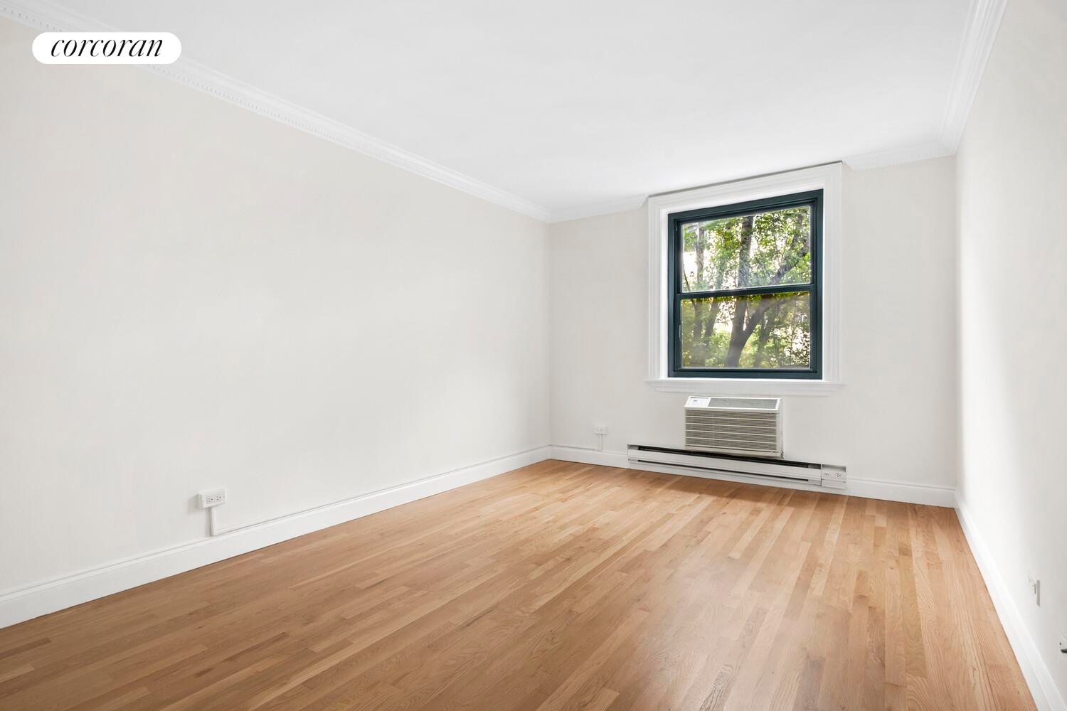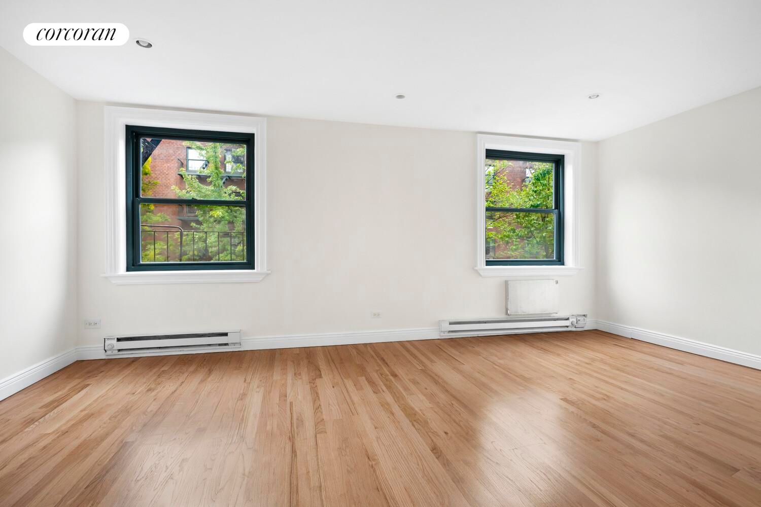 The apartment features hardwood oak flooring throughout. Both bedrooms are generously sized, a rare find in the West Village, comfortably fitting king-size beds and nightstands. Ample closet space ensures all your belongings are neatly organized and tucked away.