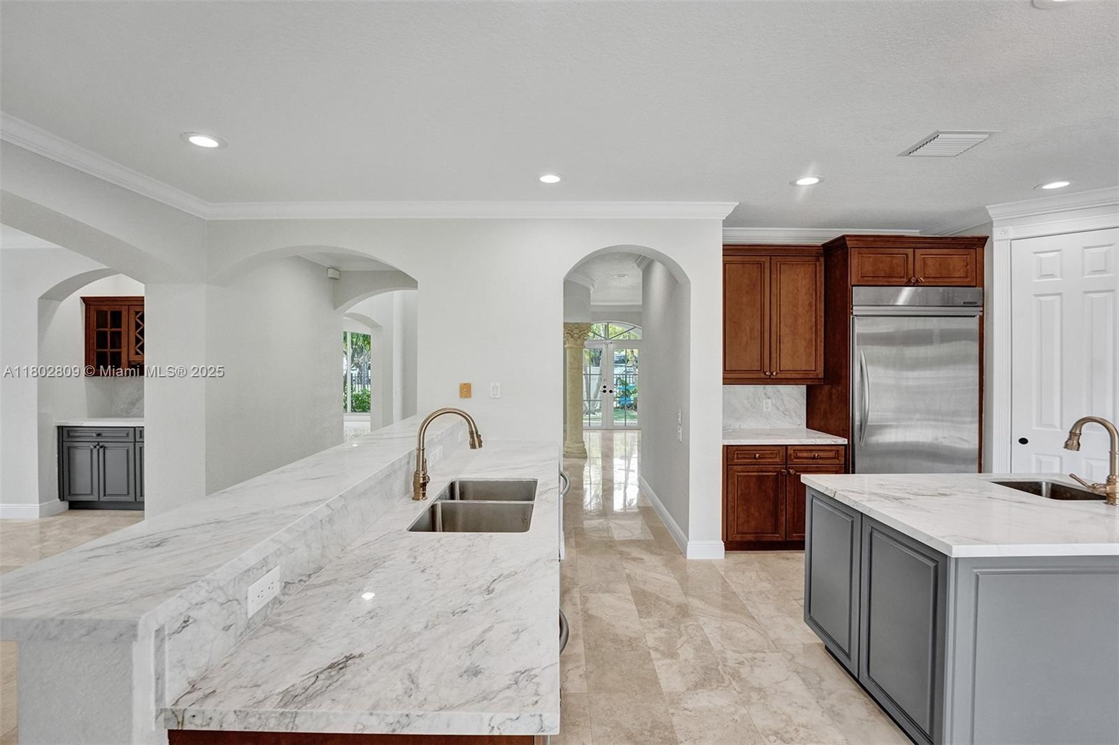 Just steps from the vibrant Las Olas Boulevard, this elegant residence is moments from world-class dining, upscale boutiques, art galleries, Fort Lauderdale Beach,all within easy reach by bike or a leisurely stroll. Behind double private gates a beautifully manicured courtyard welcomes you into a home where timeless design meets modern comforts.Chef-inspired kitchen, feat. rich 42” wood cabinetry, butcher block island, granite countertops, premium SS appliances, spacious walk-in pantry.Cozy fireplace, custom closets, impact-rated windows throughout, ensuring peace of mind and refined comfort.Retreat to your private rooftop sundeck to soak in stunning views of the downtown Fort Lauderdale skyline,ideal for intimate gatherings & effortless entertaining. Two-car garage with generous storage.