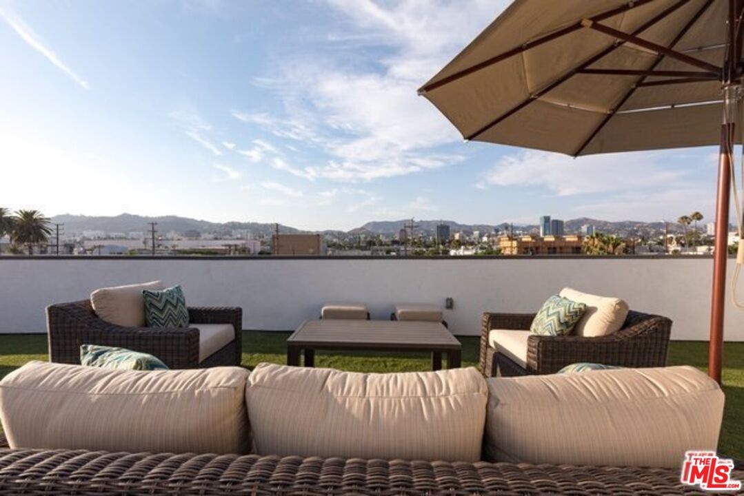 Welcome to Unit 401 at 935 N Hudson: a rare top-floor corner residence in a six-unit modern building in the heart of Hollywood. This light-filled 3BD/2BA condo blends industrial chic with luxurious comfort just steps from acclaimed dining, nightlife, and studios. Soaring ceilings and oversized windows frame an airy open-concept living space with a sleek kitchen featuring stainless appliances, quartz counters, and a generous island for effortless entertaining. The tranquil primary suite offers a spa-style bath with soaking tub; two additional bedrooms include a flexible third ideal for guests, office, or gym. Enjoy panoramic views of the Hollywood Hills and DTLA from the expansive rooftop deck perfect for sunset cocktails or alfresco dining. Additional highlights: secure controlled entry, two subterranean tandem parking spaces, in-unit laundry, and central HVAC. HOA covers water, trash, building insurance, and maintenance. Tucked on a low-traffic street minutes to Paramount, Netflix, Larchmont Village, and Sunset Blvd, this penthouse-level home delivers design, space, and views in one of LA's most vibrant neighborhoods.