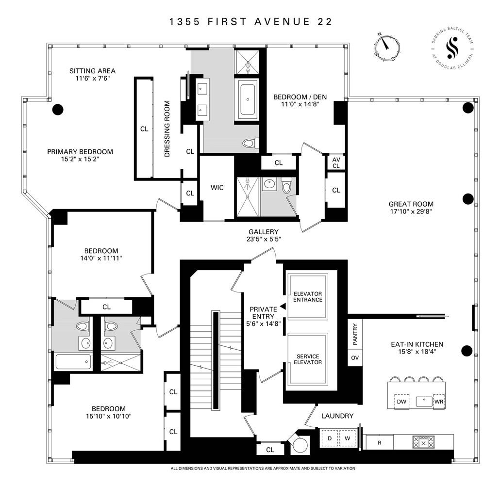 This sun-flooded, high-floor, corner residence offers triple exposures with sweeping city views through floor-to-ceiling windows. At approximately 3,500 square feet, this stunning home features four bedrooms, four bathrooms, a gracious Great Room, an oversized eat-in kitchen, and thoughtfully curated finishes throughout.