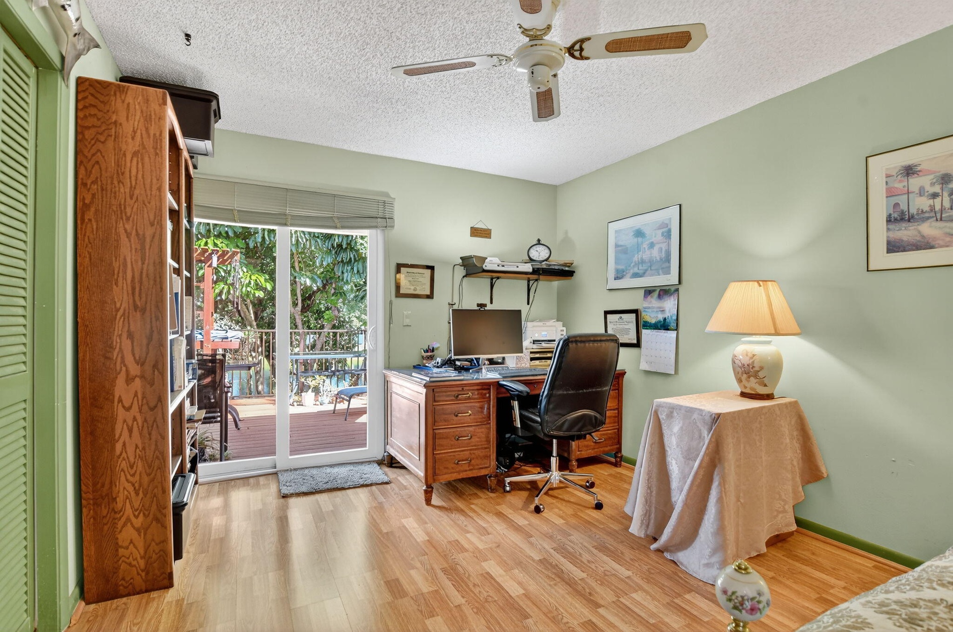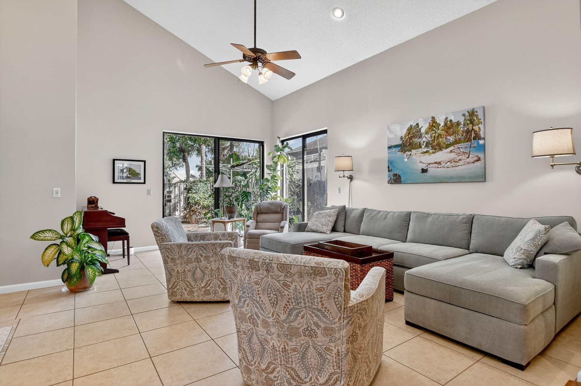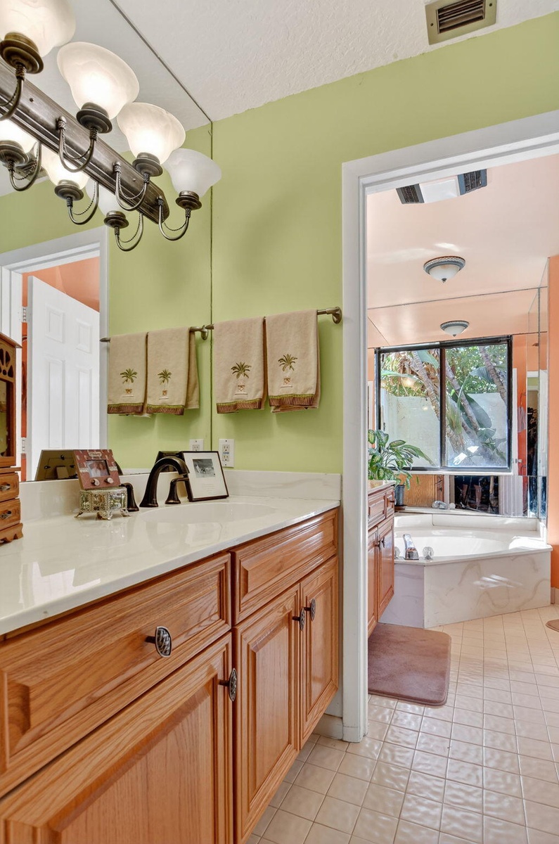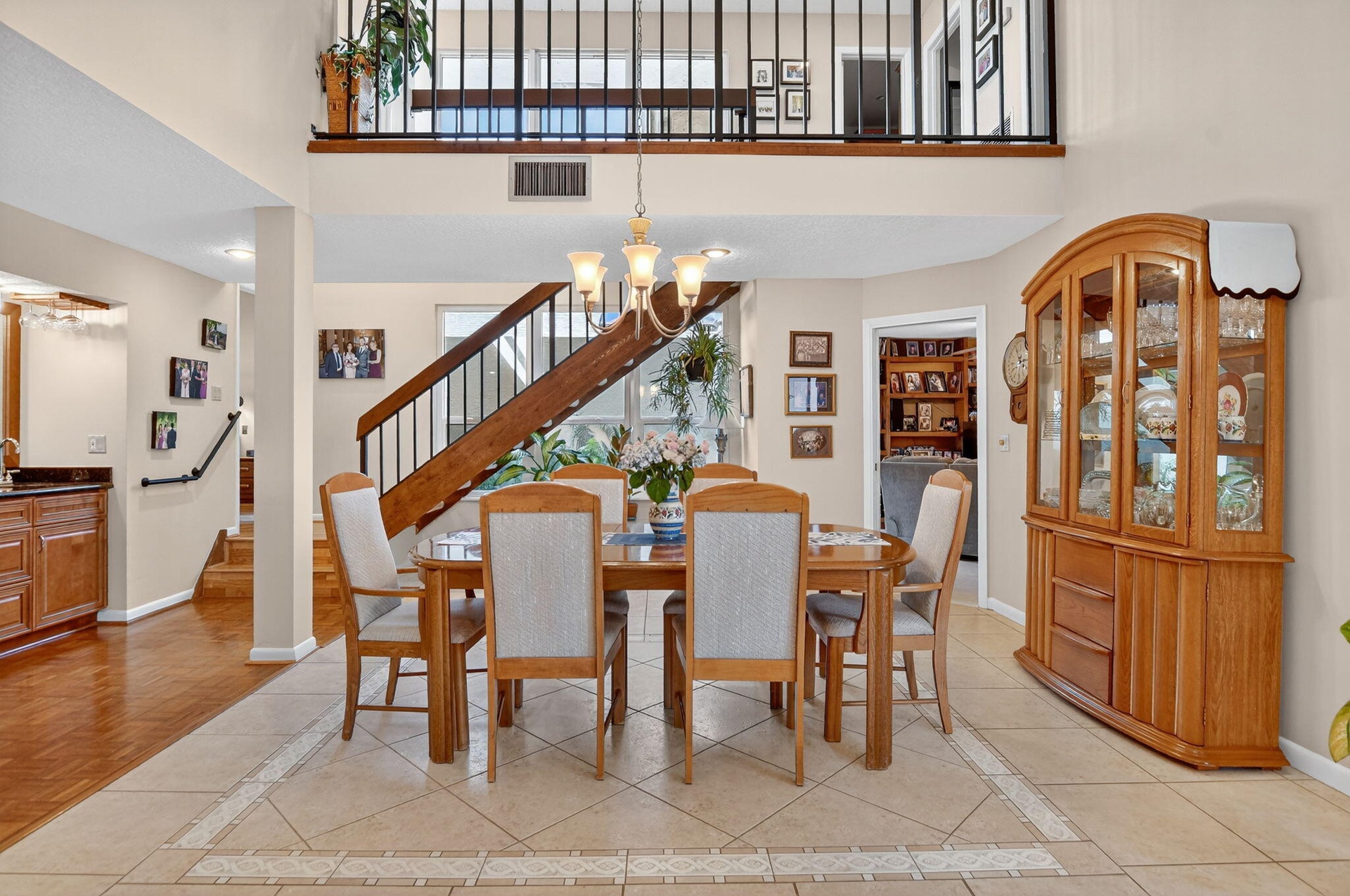 This immaculate 4-bed, 2.5-bath home permeating with natural light in a perfect location is a gem. Enjoy soaring double-volume ceilings in the formal living and dining areas, a spacious master suite (with an attached Florida room), and an oversized enclosed patio with a spa-jacuzzi. The roof and both AC units were replaced in 2023, and upstairs windows feature impact glass. Relax on the large deck overlooking the lake, or access the water directly through the private lake gate. Very close walking distance to places of worship.