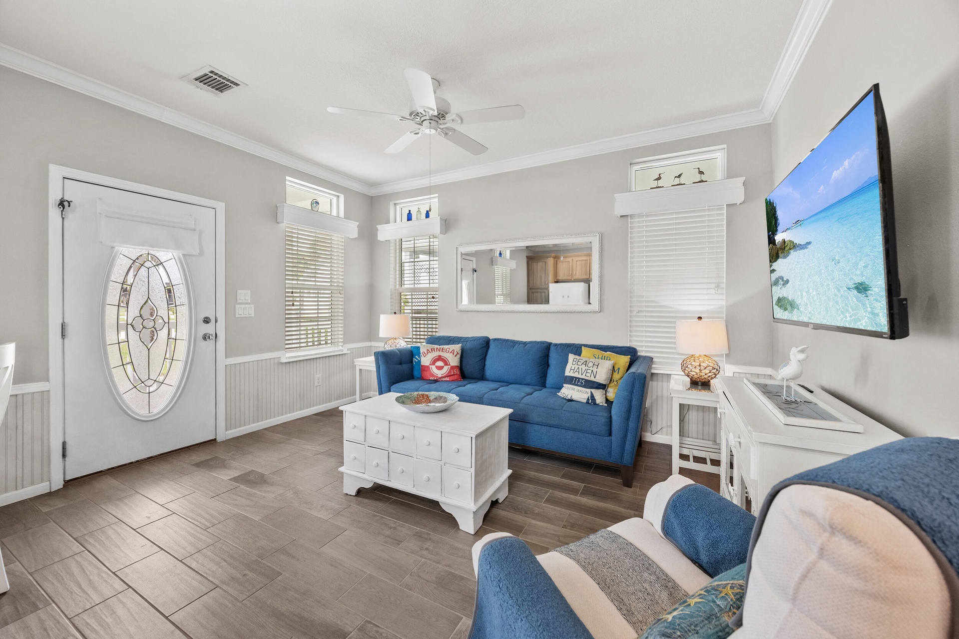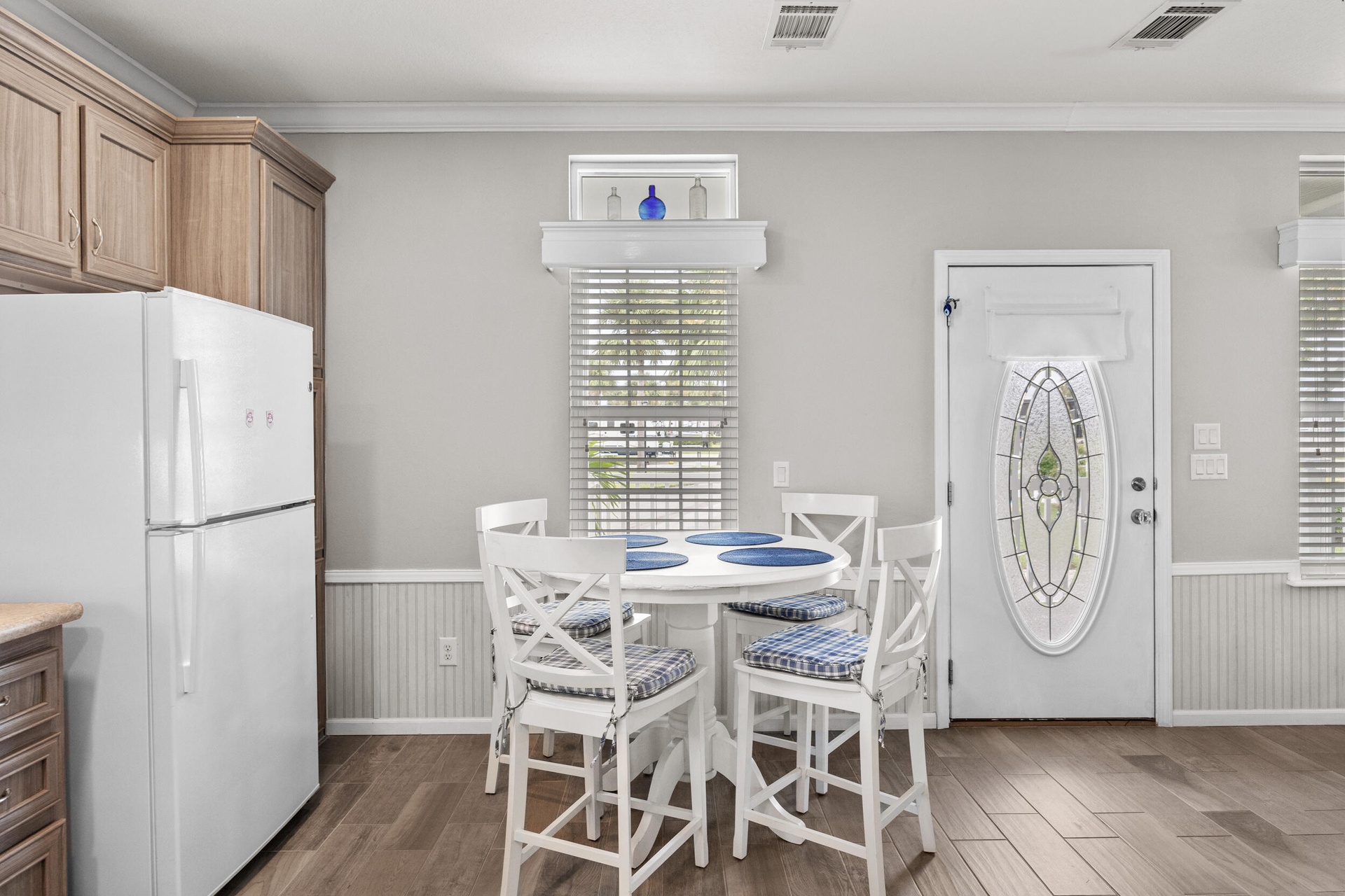 DescriptionLight, bright, and move-in ready! This 2-bedroom, 2-bathroom home offers 1,105 sq. ft. of stylish living space built in 2017, featuring an open floor plan and beautiful wood-look tile flooring throughout for a cohesive and modern look. The kitchen showcases warm wood tone cabinetry, creating a welcoming and timeless feel.Enjoy your morning coffee or evening breeze on the charming front porch or take advantage of the prime location -- just a 30-second walk to the pool, gym, sauna/steam room, and bar! You can also walk or bike to downtown Jensen Beach to explore its restaurants, shops, and waterfront charm.Sitting on one of the largest lots in the community for this size home, there's potential to add a back patio or deck (with HOA approval). The current owner
