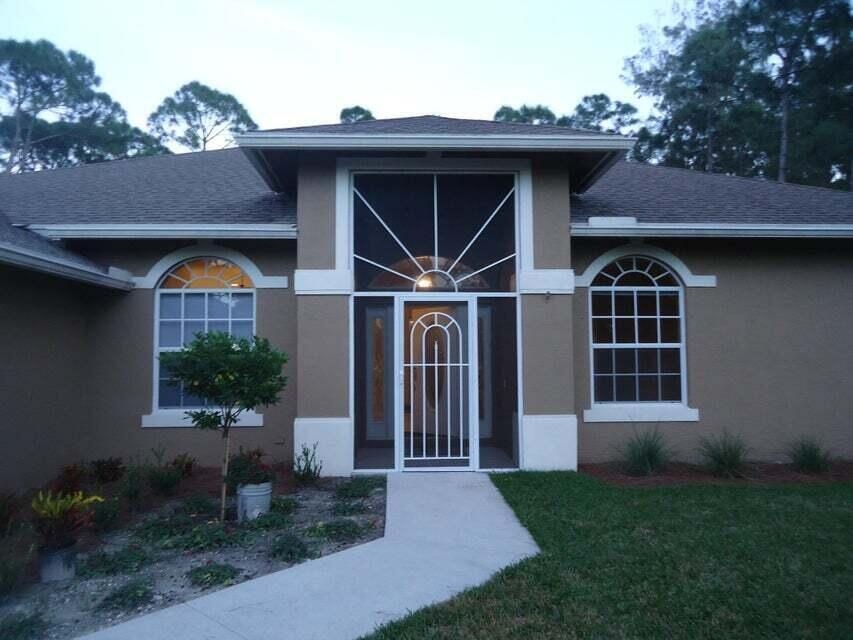 Beautifully maintained single-family home available for annual rent in desirable Palm Beach Country Estates. Situated on over an acre of land, this spacious residence offers 3 bedrooms plus a den, 2 full baths, and an oversized 2-car garage. The home features ceramic tile flooring throughout, a screened front porch, and a large screened patio perfect for relaxing or entertaining. Enjoy the privacy and space of country-style living with all the conveniences of Palm Beach Gardens just minutes away.