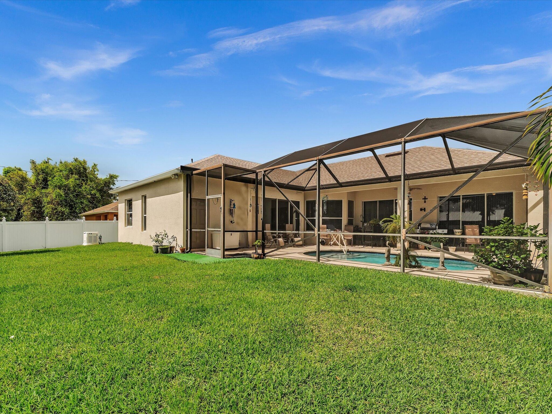 Description$5K BUYERS CONCESSIONS!!Sparkling Port St. Lucie Pool Home with Modern Upgrades & No HOA Fees!This stunning 4-bedroom, 3-bathroom, CBS construction home boasts an expansive open floor plan and features 10-foot ceilings and gorgeous 24'' marble tile flooring throughout.The split master bedroom provides a private retreat, featuring his and hers walk-in closets and a luxurious master bath with double sinks, a shower, and a soaking tub.Step outside to your very own private oasis. The screened lanai provides a perfect space to relax by the concrete pool, Equiped with 30k Generator for the whole house! with an under-roof patio for shaded enjoyment!This home is located on a generous 10,000 sq ft lot and is distinguished by its attached 3-car garage!!Schedule your private showing today!'