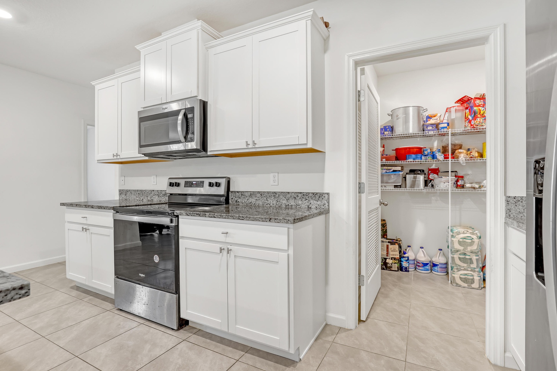 This impressive all-concrete block house showcases a two-story design that is both functional and inviting. With five spacious bedrooms and three full bathrooms, it provides ample living space for families or guests. The convenience of having one bedroom and a full bathroom on the main level is a notable feature, making it accessible for those who prefer not to navigate stairs. The open concept layout enhances the flow of the home, with a well-appointed kitchen island that serves as a central gathering point. Abundant natural light streams through large windows, creating a warm and welcoming atmosphere throughout the living areas. Step outside to the covered patio, perfect for grilling and enjoying outdoor meals.