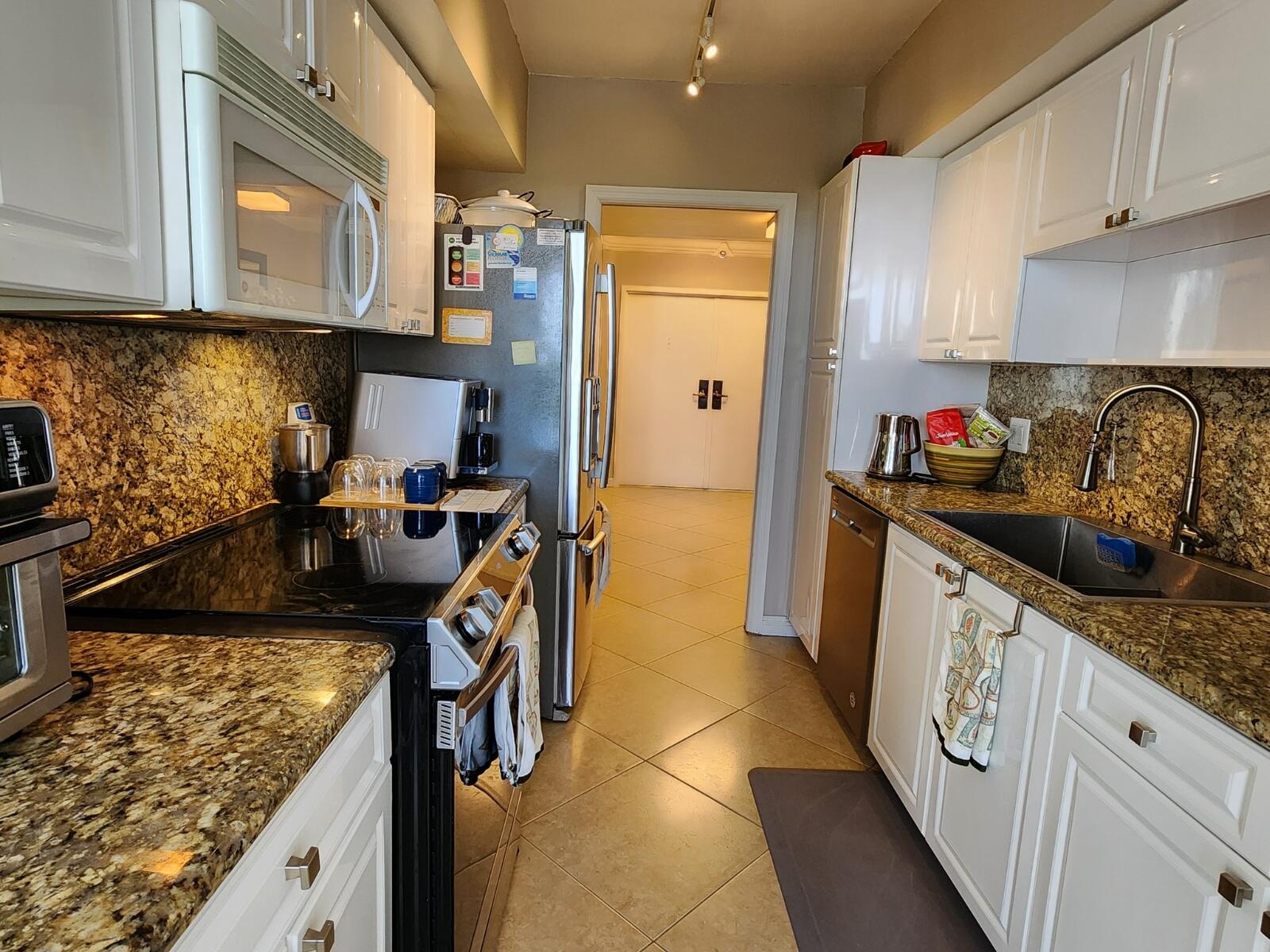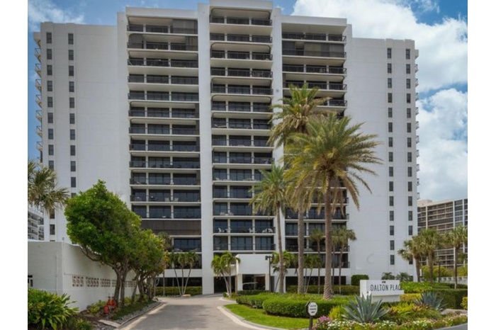 Turnkey 3-Bedroom Corner Residence with Panoramic ViewsPerched on the 5th floor of the prestigious Dalton Place in Highland Beach, Florida, this fully furnished 3-bedroom, 3-bathroom corner unit offers an exceptional coastal living experience. The split floor plan showcases stunning ocean views, complemented by a spacious balcony perfect for entertaining or relaxing.The upgraded kitchen features granite countertops and modern appliances, including a cooktop, dishwasher, microwave, two refrigerators, and an in-unit washer and dryer conveniently located in the hallway closet. Designer tile and elegant crown moldings flow throughout, while the living and dining areas boast a tasteful combination of ceramic tile and decorative carpeting. Impact glass windows and sliding doors open to th