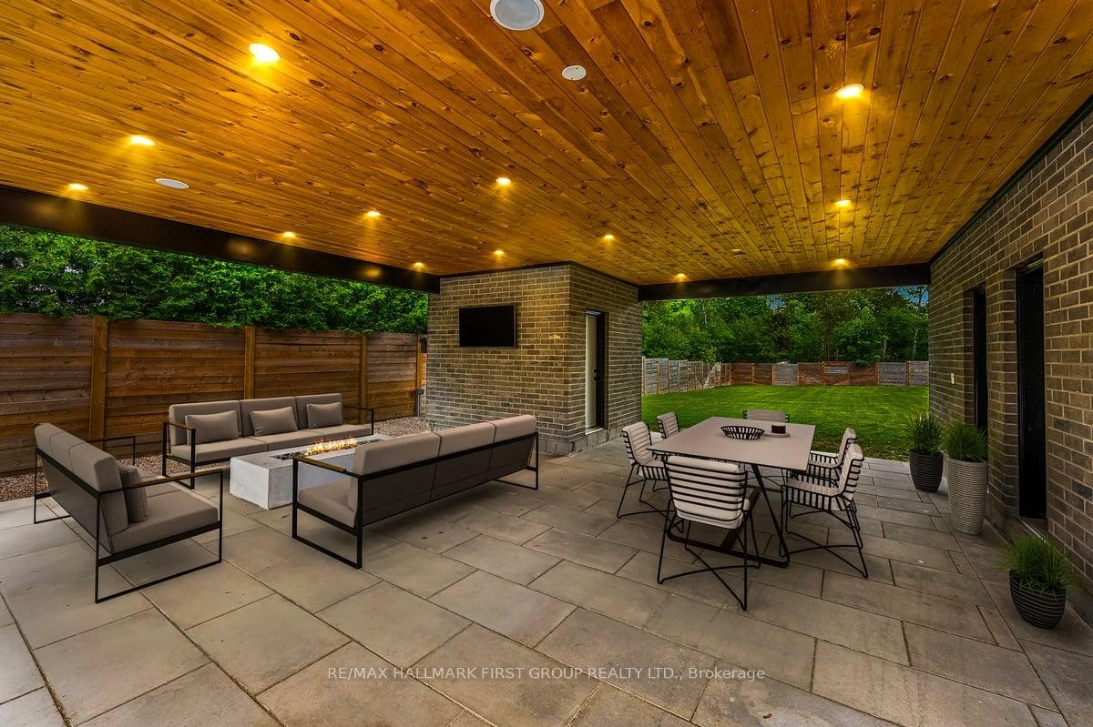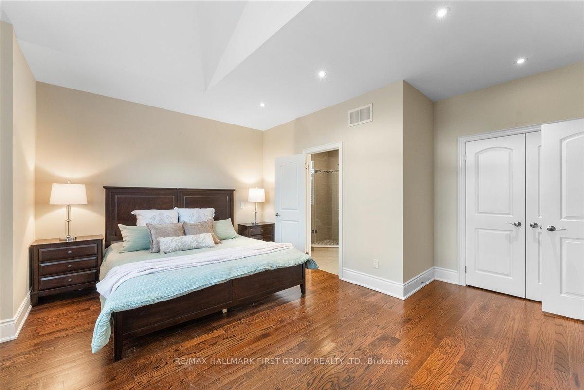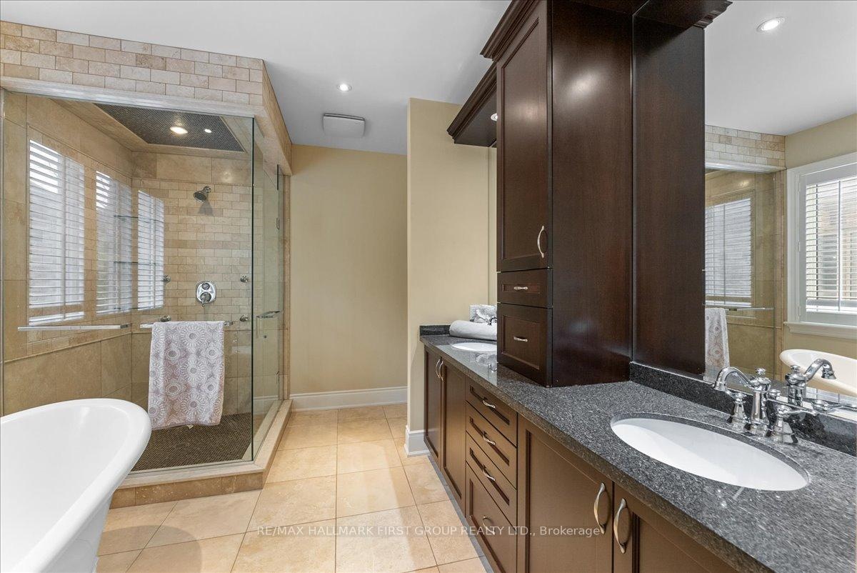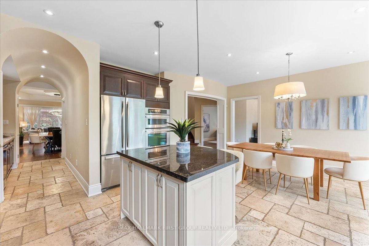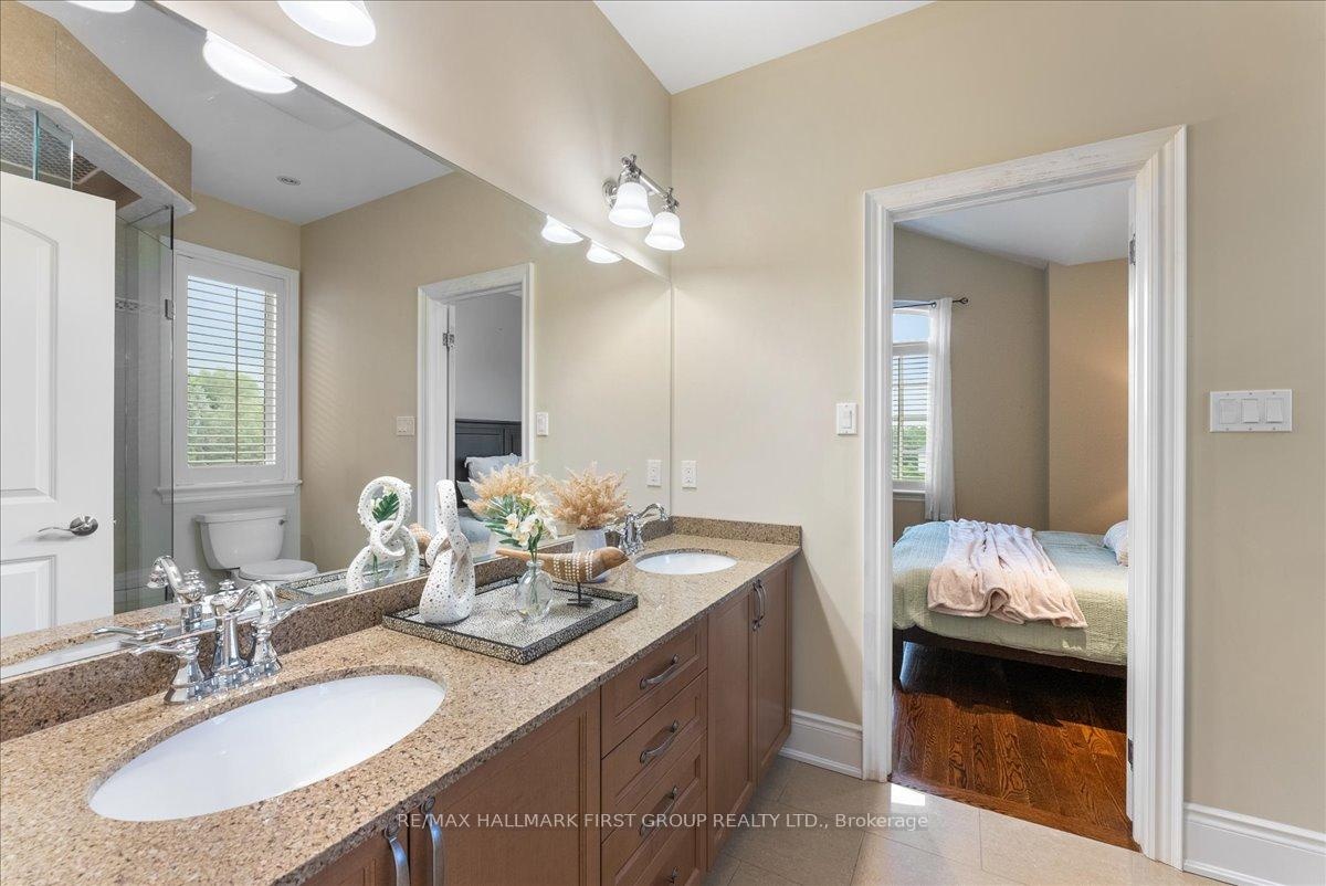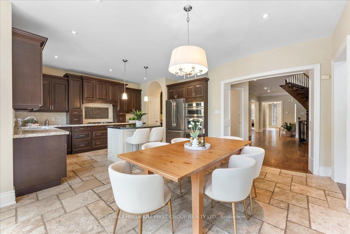 Welcome to this spectacular custom executive home, nestled on a RARE 374FT DEEP PREMIUM LOT offering ultimate privacy and serenity. Surrounded by trees and fully fenced, the professionally landscaped backyard is a true oasis featuring over $200K in recent upgrades. Enjoy resort style living with an INGROUND SALTWATER POOL with automatic cover, expansive patio, and stunning covered cabana with pot lights and gas lines ready for your firepit and BBQ. Whether you're entertaining guests or enjoying a quiet evening outdoors, the large grassy area and ambient lighting create the perfect setting. Inside, enjoy luxury finishes throughout, including hardwood floors, smooth ceilings with elegant crown moulding, pot lights, and generously sized rooms. The gourmet eat-in kitchen boasts stainless steel appliances, a center island with breakfast bar, a butlers pantry with prep sink, walk-in closet, and ample storage. The great room features soaring ceilings, and the main floor includes a private office. Upstairs, the primary suite offers double-door entry, vaulted ceilings, a 6-piece spa-like ensuite, and his/her walk-in closets. Oversized secondary bedrooms come with ensuites or semi-ensuites. Additional highlights include a balcony library/piano room and an unspoiled basement ready for your personal touch! With a spacious double car garage and third tandem spot, this home truly has it all - just minutes to the 401, the GO Station, shopping, restaurants, schools, and parks.