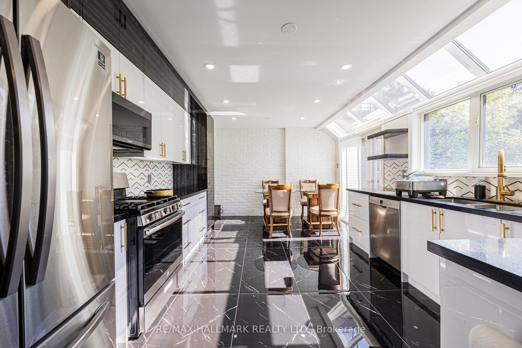 Discover Refined Luxury and Timeless Elegance in This Stunning North York Home.Ideally located near the TTC, subway, top schools, shopping, dining, and parks, this sun-filled 4+1 bedroom residence offers the perfect blend of comfort and sophistication.A grand foyer with a solid wood circular staircase sets the tone for the homes elegance. The kitchen and family room open to a covered porch and a private, south-facing backyard with no rear neighborsperfect for entertaining.The main-floor office can serve as a fifth bedroom, while the primary suite features a spa-inspired five-piece ensuite and three additional spacious bedrooms.With new hardwood floors, skylights, crown moulding, and meticulous renovations throughout, this home is truly one of a kindoffering style, comfort, and enduring quality in every detail.