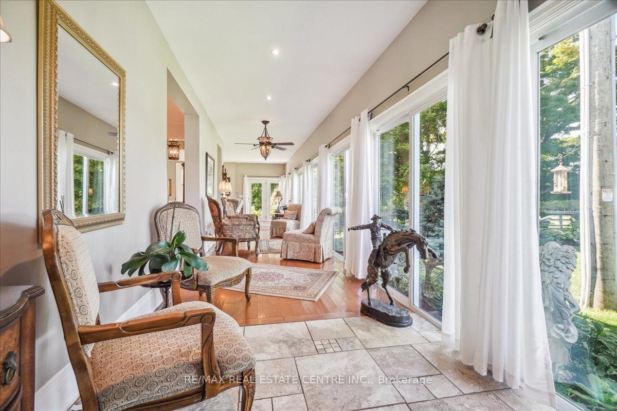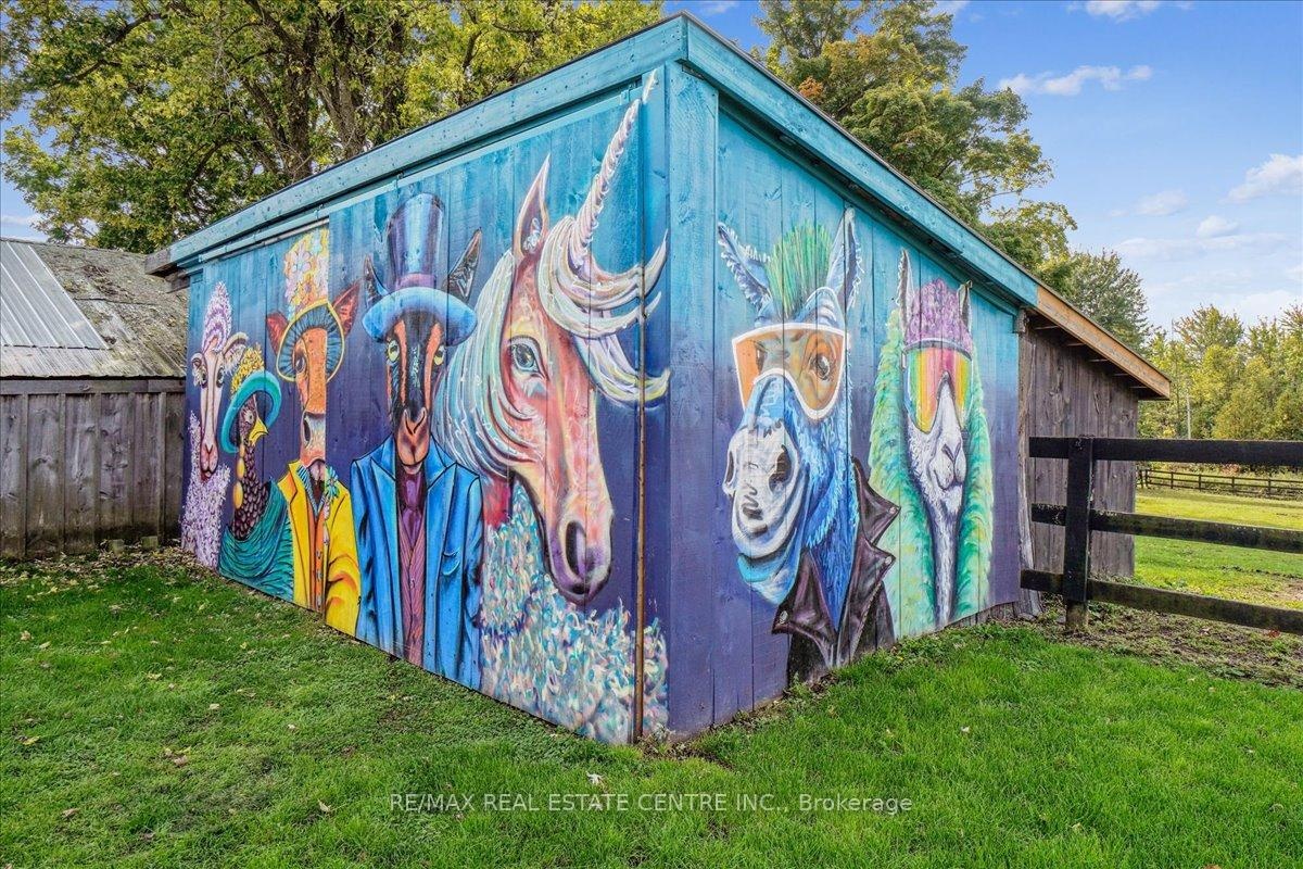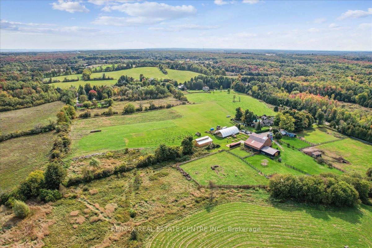 Dream Estate with Endless Possibilities Minutes from the GTA. Discover this exceptional property set on acres of rolling countryside, offering a beautiful home complete with an in-law suite, two kitchens, two living rooms, a great room, and two laundry rooms. Oversized principal rooms create the perfect setting for entertaining, while the spacious kitchen, featuring quartz counters and a large centre island, makes cooking and baking a true pleasure. Step outside to your private retreat: a 20 x 40 inground pool, expansive yard, oversized pavilion, and professionally landscaped gardens. A bright sunroom spans the front of the home, overlooking lush gardens and horse paddocks. Accented with commissioned artwork by a renowned Toronto artist. The property is equally impressive for potential equestrian and agri-business pursuits. Highlights include a 6-stall horse barn, large bank barn with new stabling, orchards, a Mennonite-built marketplace with ice cream and bakery display equipment, a picnic area with stage, extensive paddocks with underground water and power, and a 40 x 80 coverall with lighting. Conveniently close to the GTA, this property also benefits from Halton's new bylaw allowing additional residential units on rural lands unlocking incredible potential. Whether you envision a family estate, farm, market, or Agri-tourism venture, the opportunities here are endless. The retiring vendor welcomes you to bring your vision to this extraordinary, ready-to-go property and make your dream a reality.