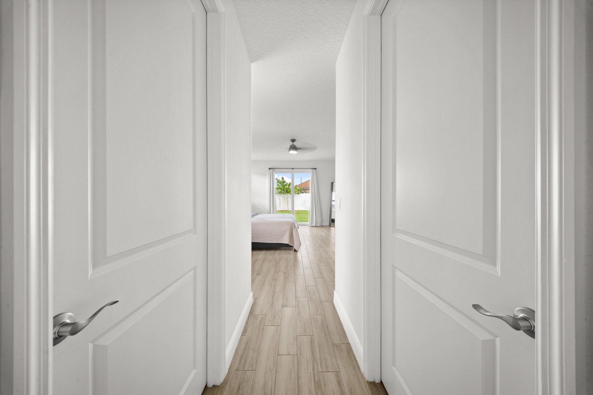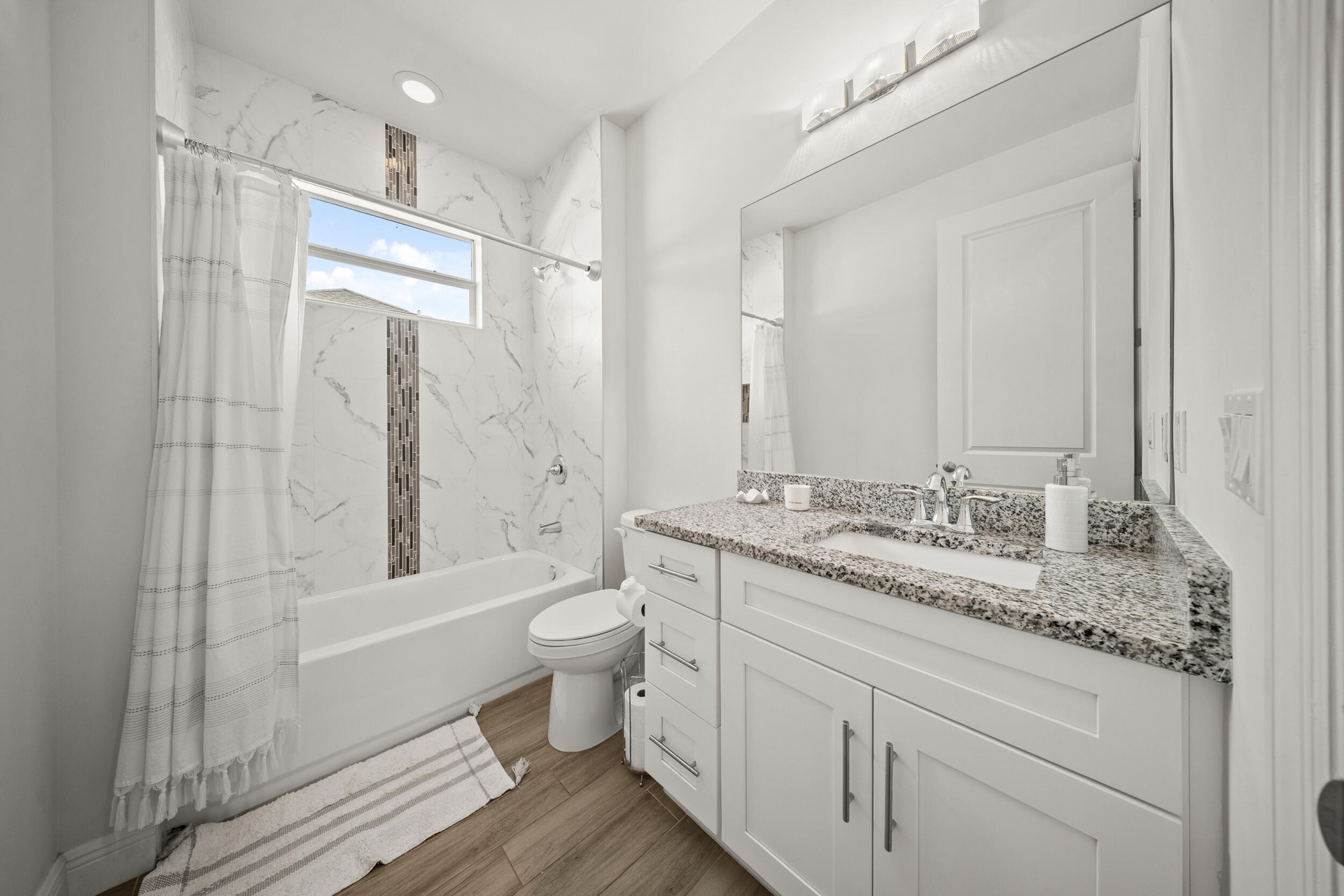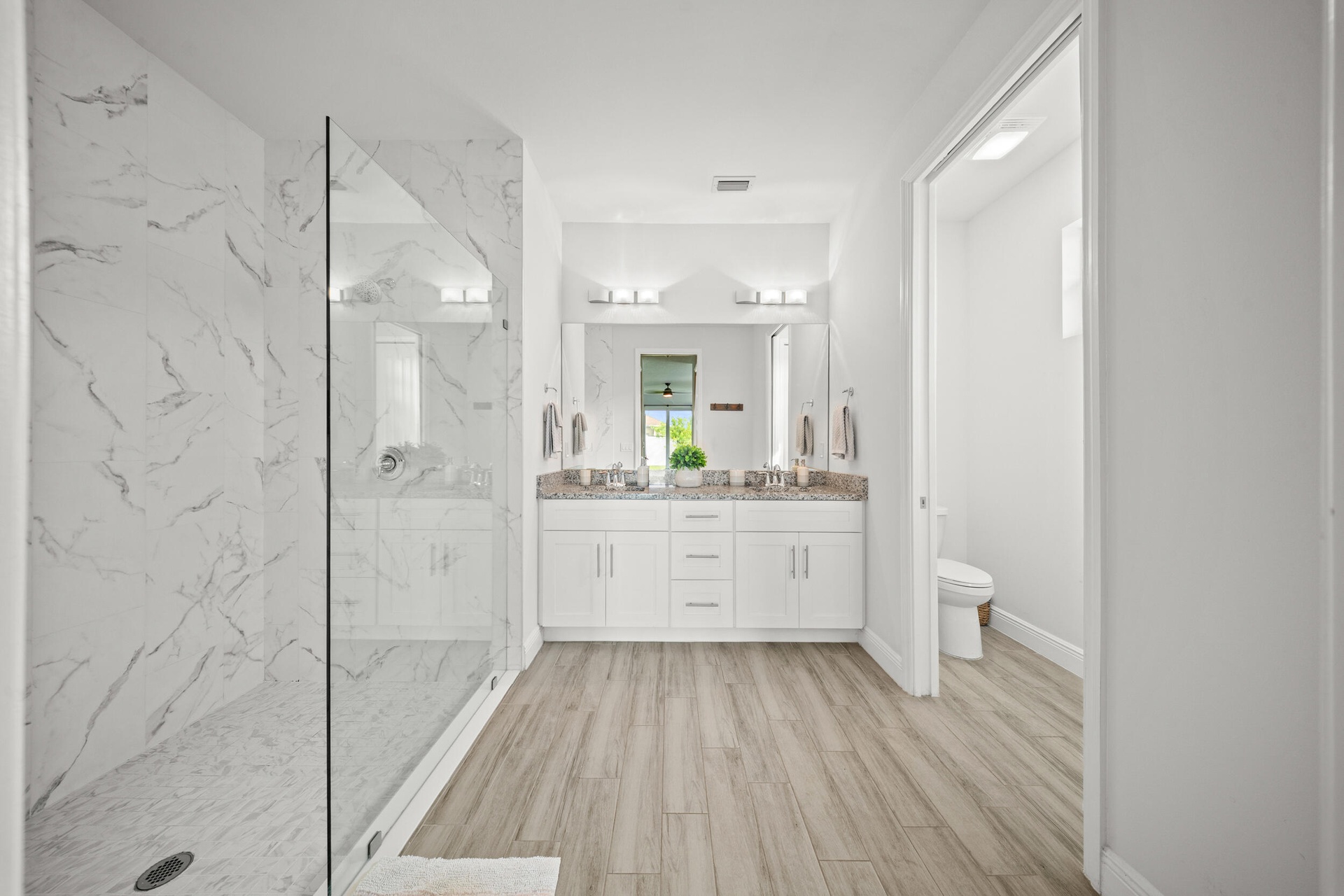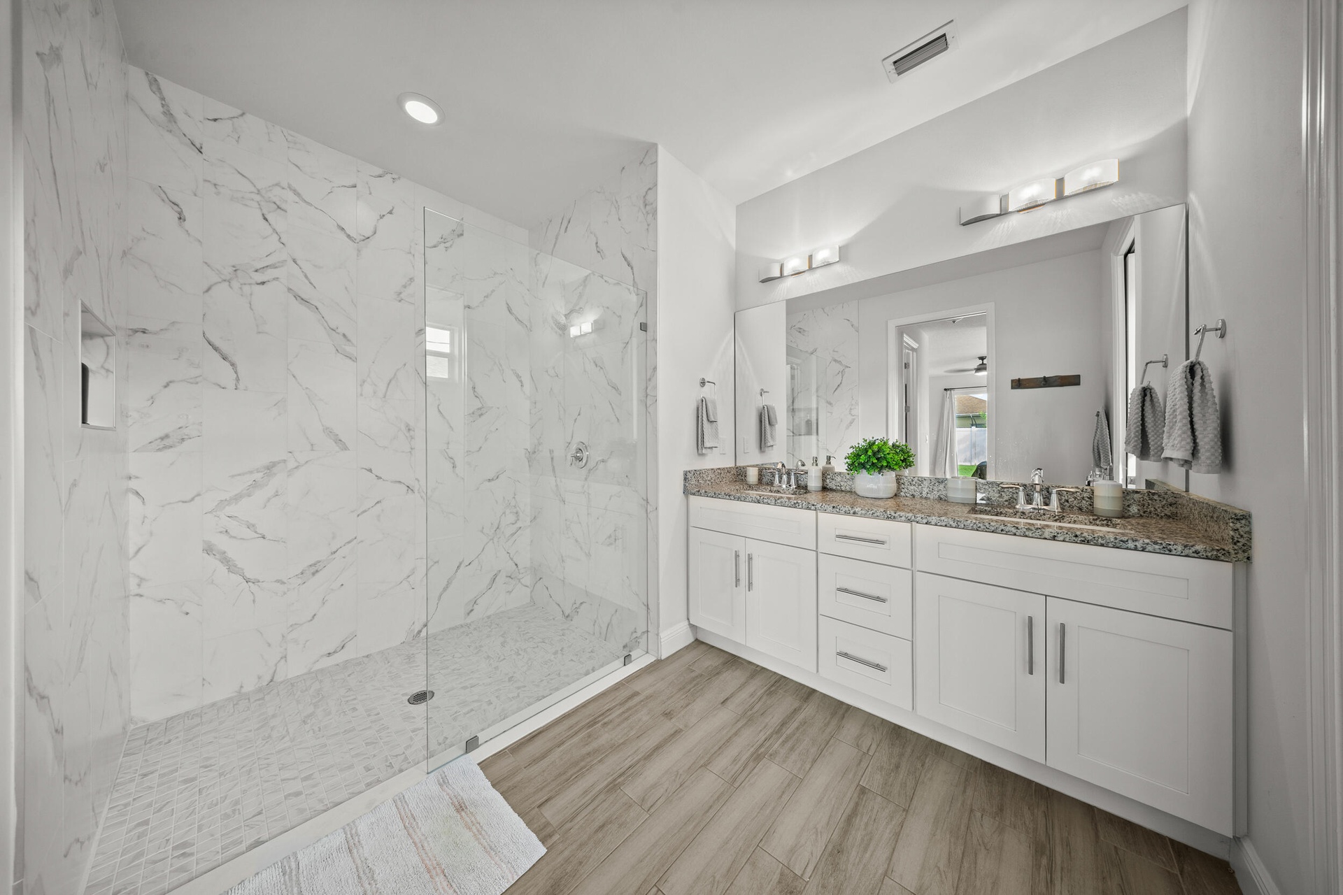 Welcome to 2437 SW Santana Ave, a stunning 4-bed, 2-bath home built in 2021 that blends style and comfort. Inside, you'll find gorgeous wood-look tile flooring throughout and a bright open-concept layout. The modern kitchen features granite countertops, stainless steel appliances, and plenty of cabinetry. The spacious primary suite offers two walk-in closet, sleek contemporary bathroom, and sliders leading to the fully fenced backyard with crisp white vinyl fencing and gutters--perfect for privacy and pets. Both bathrooms showcase clean, modern finishes, while the oversized laundry room includes cabinetry, a wash sink, and a countertop for folding. Move-in ready and thoughtfully designed!