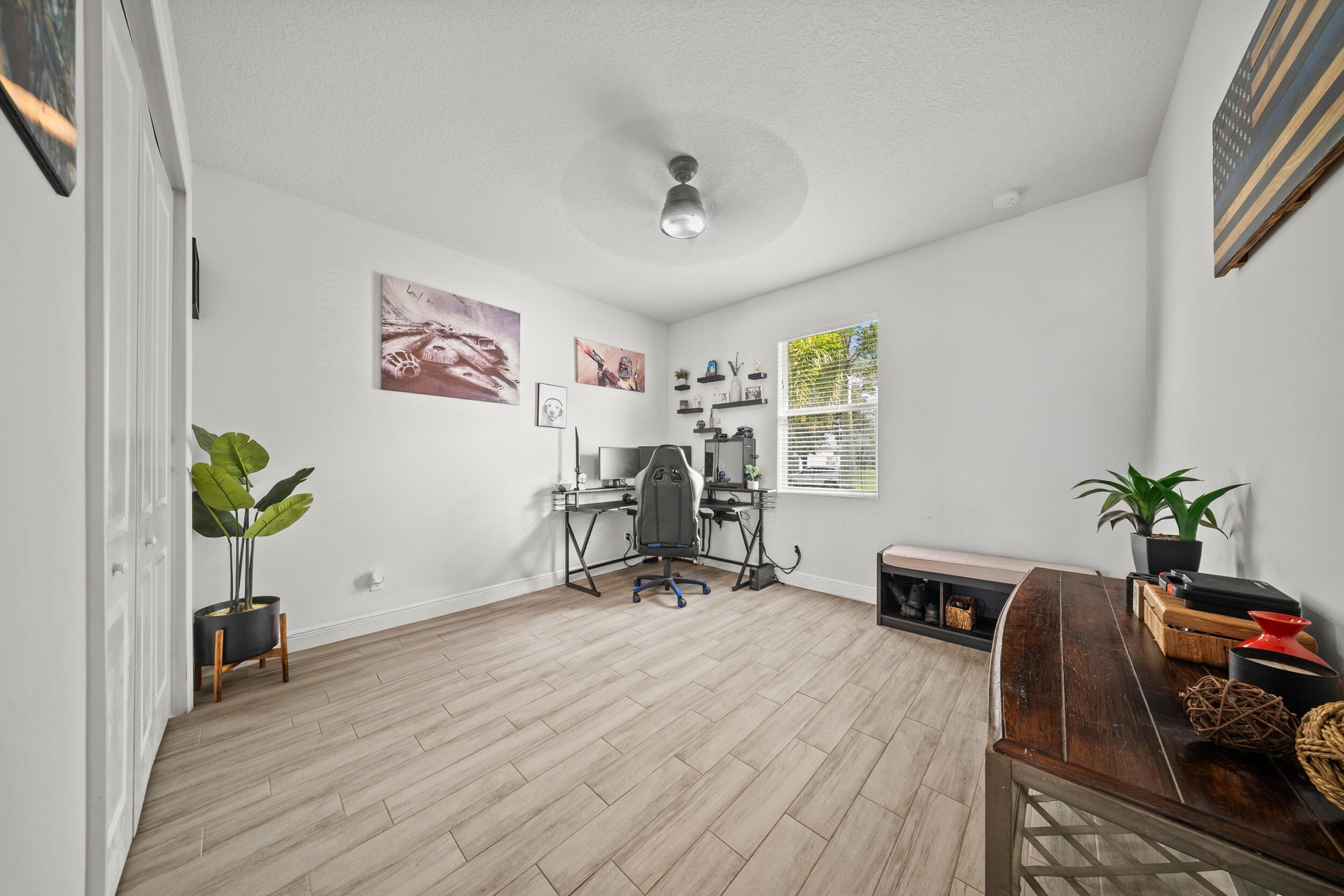 DescriptionWelcome to 2437 SW Santana Ave, a stunning 4-bed, 2-bath home built in 2021 that blends style and comfort. Inside, you'll find gorgeous wood-look tile flooring throughout and a bright open-concept layout. The modern kitchen features granite countertops, stainless steel appliances, and plenty of cabinetry. The spacious primary suite offers two walk-in closet, sleek contemporary bathroom, and sliders leading to the fully fenced backyard with crisp white vinyl fencing and gutters--perfect for privacy and pets. Both bathrooms showcase clean, modern finishes, while the oversized laundry room includes cabinetry, a wash sink, and a countertop for folding. Move-in ready and thoughtfully designed!
