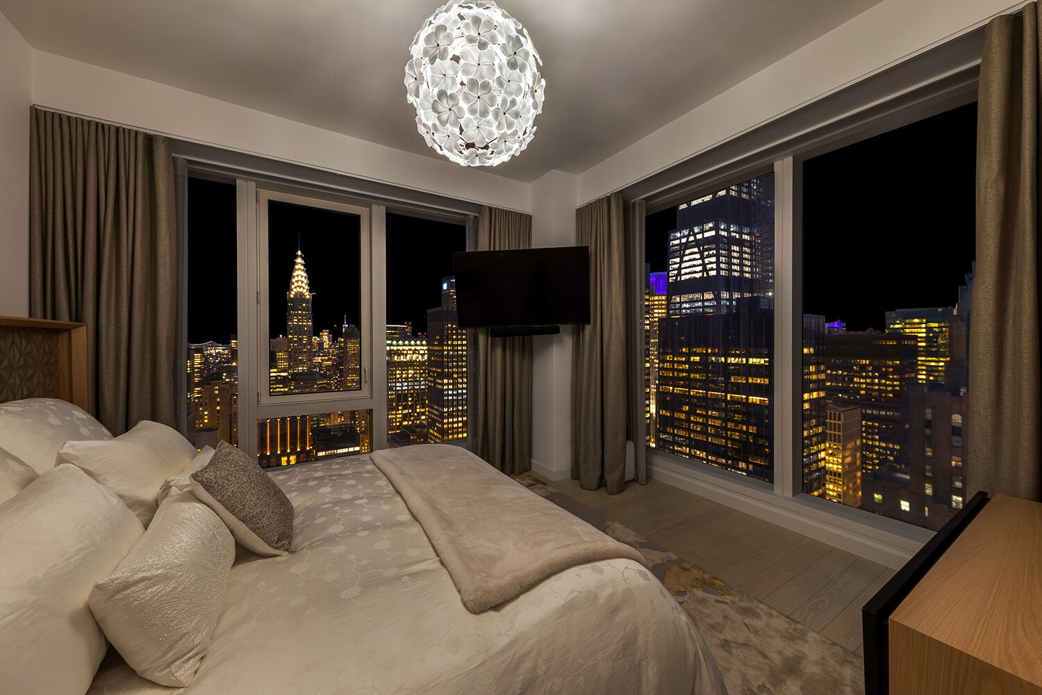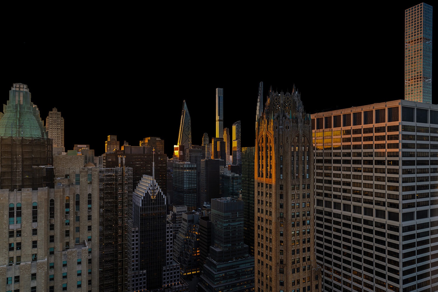At 71 stories, The Centrale takes its place alongside Midtown Manhattan's most iconic buildings, encompassing a collection of 124 classic yet undeniably modern residences, envisioned by Champalimaud Design. The Centrale's exterior design by Pelli Clarke Pelli Architects, builds upon classic Art Deco architecture with contemporary elements thoughtfully displayed throughout, including the lightly reflective glass facade articulated with facets of terracotta chevrons. The Centrale reveals its base, body and crown from street to the sky with crystalline switchbacks, creating a dynamic rhythm of angled reflections of the surrounding Midtown landscape.