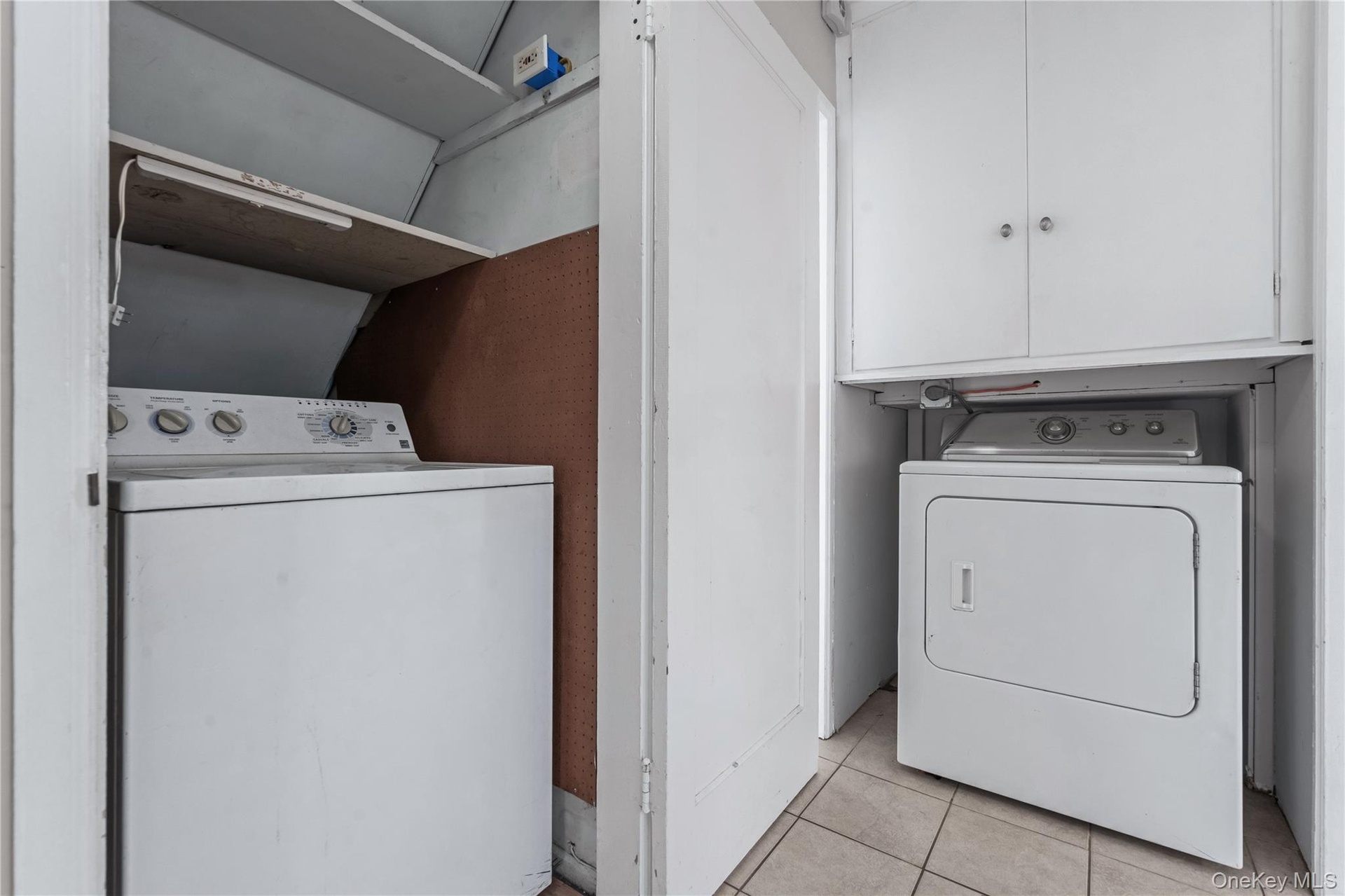 - Washroom featuring washer / clothes dryer and light tile patterned flooring