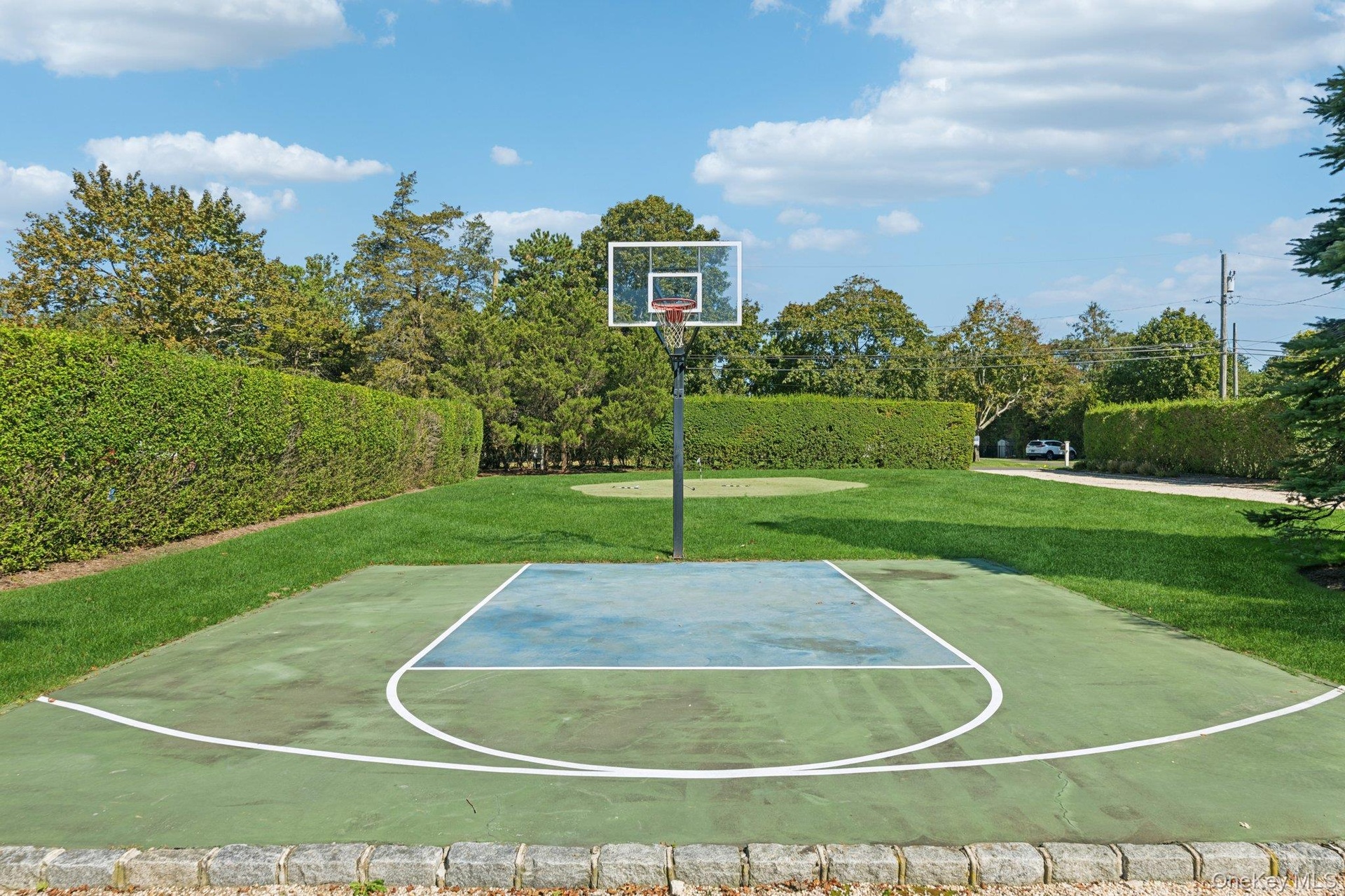 Custom built in 2000, the home blends timeless Hamptons character with modern comfort. Wrapped in classic cedar siding with a brand-new cedar roof, it sits beautifully within its natural surroundings. Outdoors, the grounds are designed for recreation and relaxation alike—featuring a pristine bulkhead, heated gunite pool with spa, putting green, basketball court, outdoor grill, and a gas fireplace for year-round enjoyment. The western-facing backyard captures unforgettable sunsets over the bay, creating a perfect setting for gatherings.
