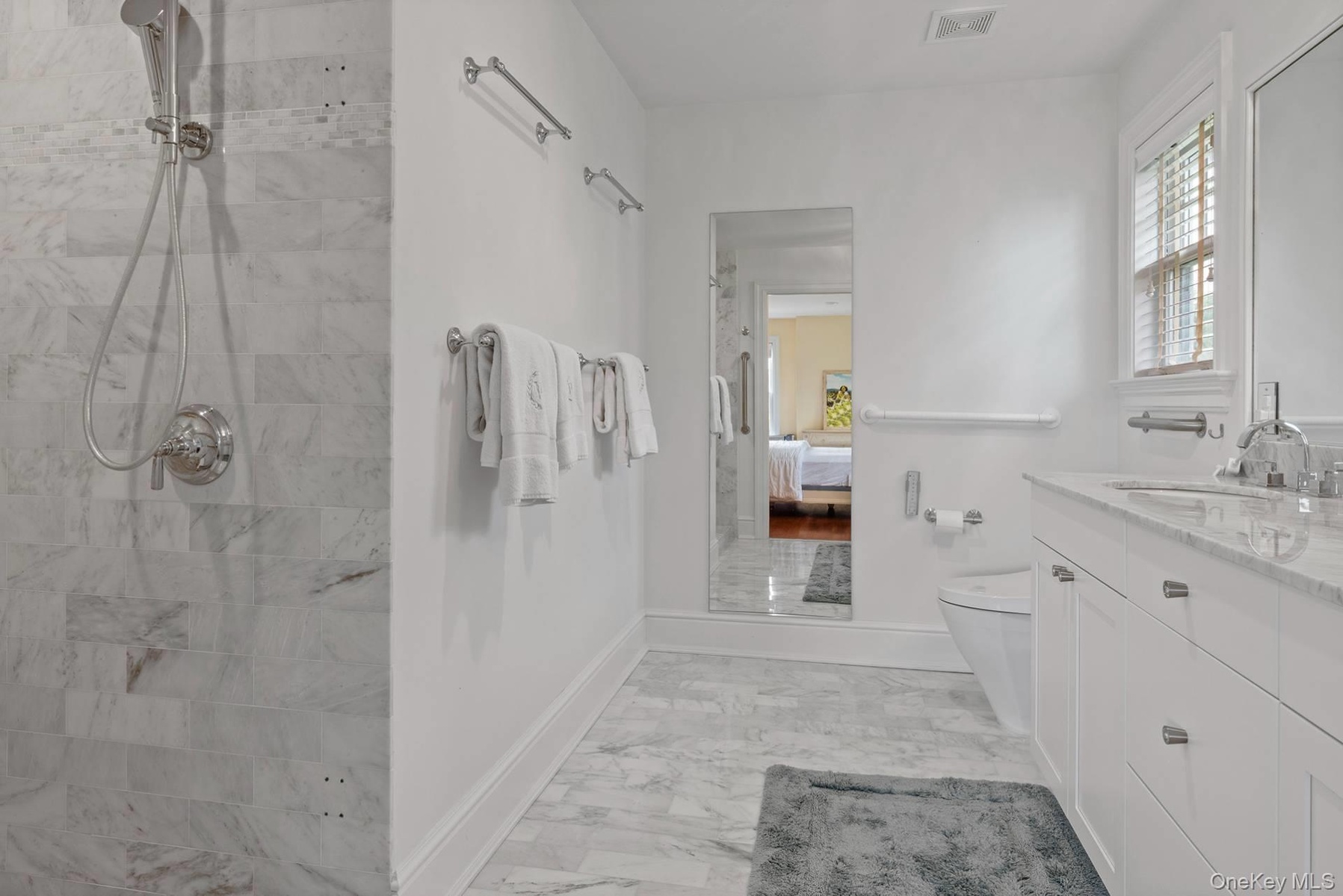 Located just moments from world-class beaches, dining, shopping, and cultural attractions, 4 Spring Lane offers the best of Hamptons living - whether as a full-time residence, summer escape, or investment opportunity. Set on a meticulously kept and landscaped property, this spacious home offers a lifestyle of ease and elegance with gourmet kitchen with island seating and stainless-steel appliances, formal dining area, den/office/TV room, living room with soaring ceilings and a wall of windows plus a gas fireplace. The first floor offers a junior primary ensuite with a spa-inspired bathroom, while the second story features a stunning primary suite and three additional ensuite bedrooms connected by an elegant catwalk that overlooks the main floor. The fully finished lower level includes an additional bedroom and full bath, gym, laundry, plus additional spaces providing flexibility for guests, office space, or recreation. A set of French doors open to a private backyard oasis complete with a heated gunite pool, jacuzzi, covered patio, and lush gardens - ideal for summer gatherings or serene relaxation. Amenities include community tennis, and a two-car garage adds convenience to this already exceptional offering. 4 Spring Lane presents an incredible opportunity to own a sophisticated home in one of the Hamptons' most desirable areas.