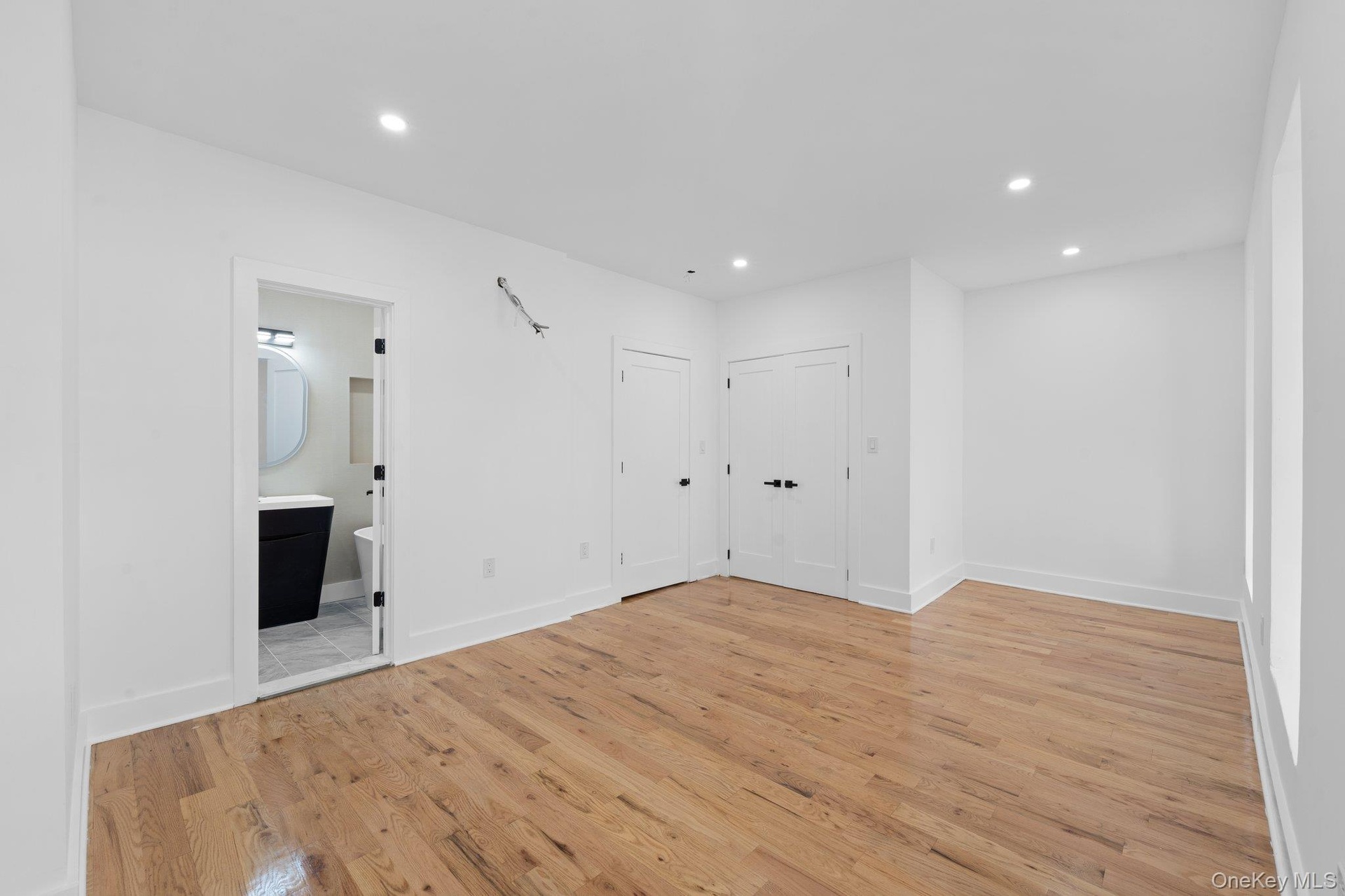 - Unfurnished bedroom featuring light wood-style floors, recessed lighting, and ensuite bathroom