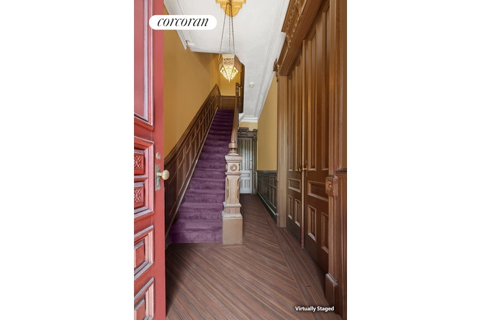 Step back in time as you enter this stately, south-facing brownstone, built circa 1899. Every detail recalls an era when craftsmanship mattered-rare woods, intricate plasterwork, and hand-carved stone.