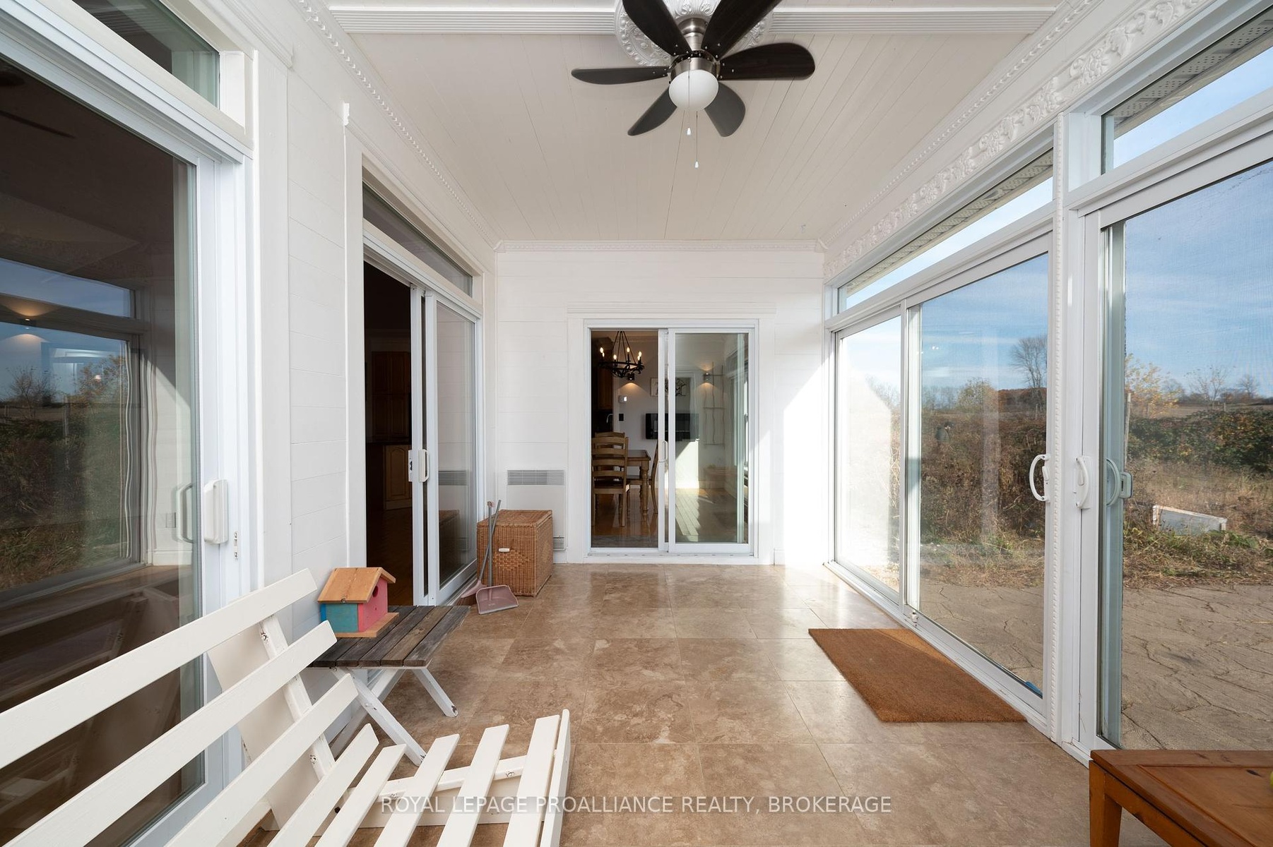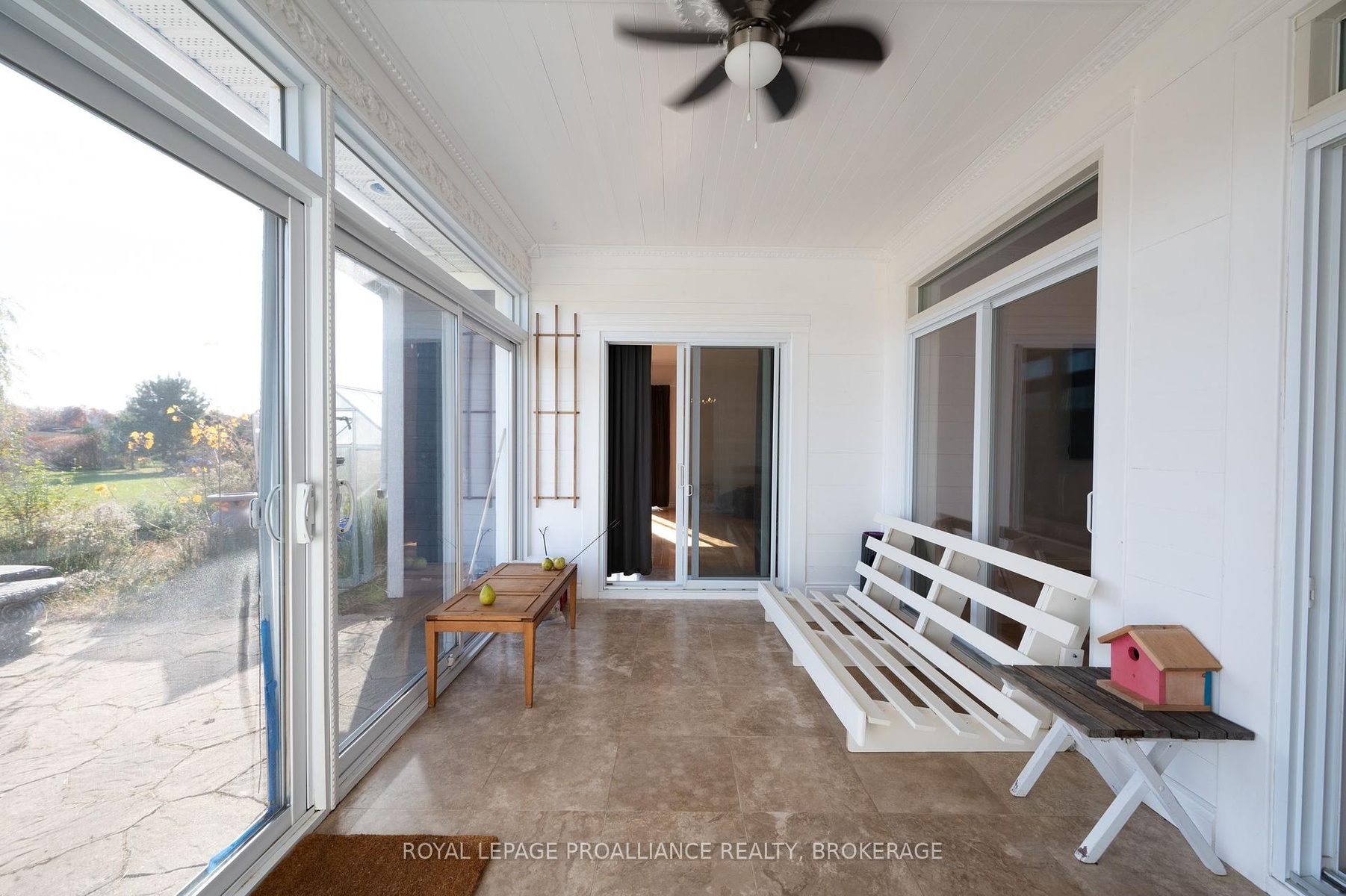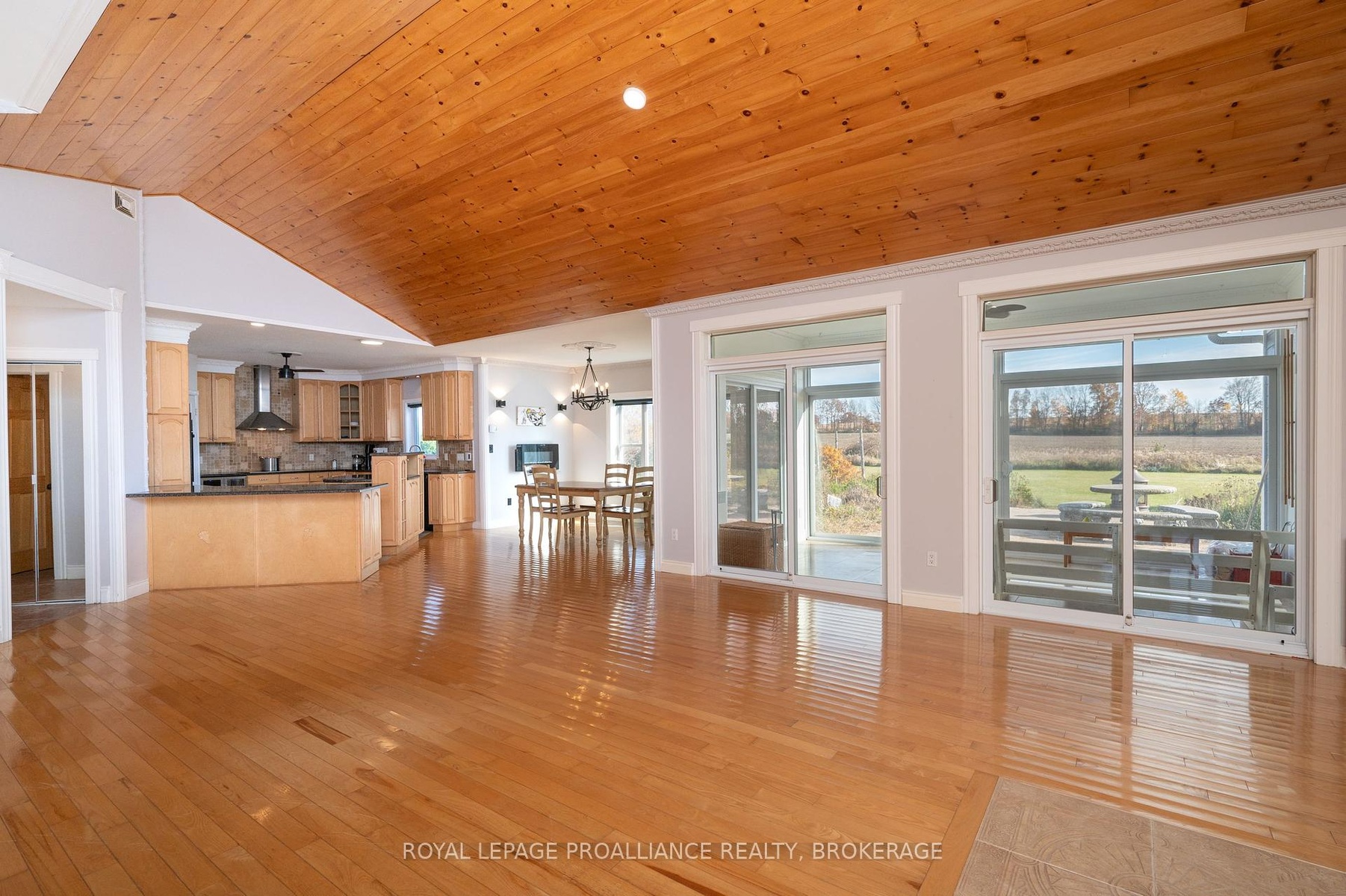 Looking for a peaceful and serene home on Howe Island? Look no further than this stunning 2-bedroom 3-bathroom wood-sided bungalow on a 1.5-acre corner lot, including not only a relaxing hot tub, but your own greenhouse! You are immediately greeted by an open concept living and dining room area with gleaming hardwood floors, high vaulted pine-covered ceilings, two electric fireplaces and banks of sunlit windows. The kitchen is a dream with custom cabinetry, built-in appliances, granite countertops and a built-in pantry. Both bedrooms are spacious, bright, carpet free and include their own spa-inspired ensuite bathrooms. You can access your all-season sunroom from all directions of the home to access your back yard oasis with a tranquil stone patio, gardens, hot tub and greenhouse or simply stay inside and enjoy the views. Steps to the Howe Island Ferry, a 5-minute ferry ride to or from the island, and a 15-minute drive to the heart of downtown Kingston.