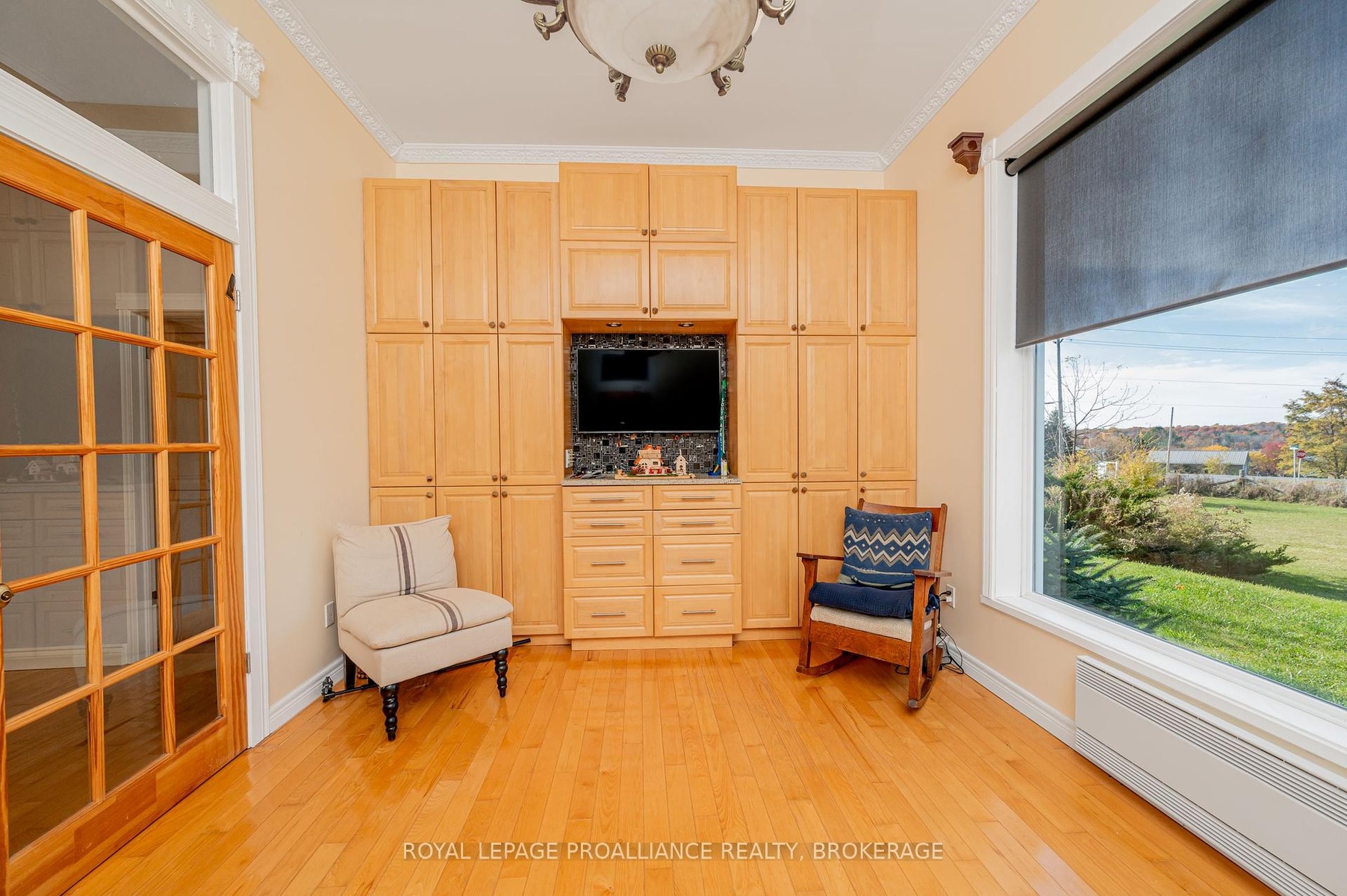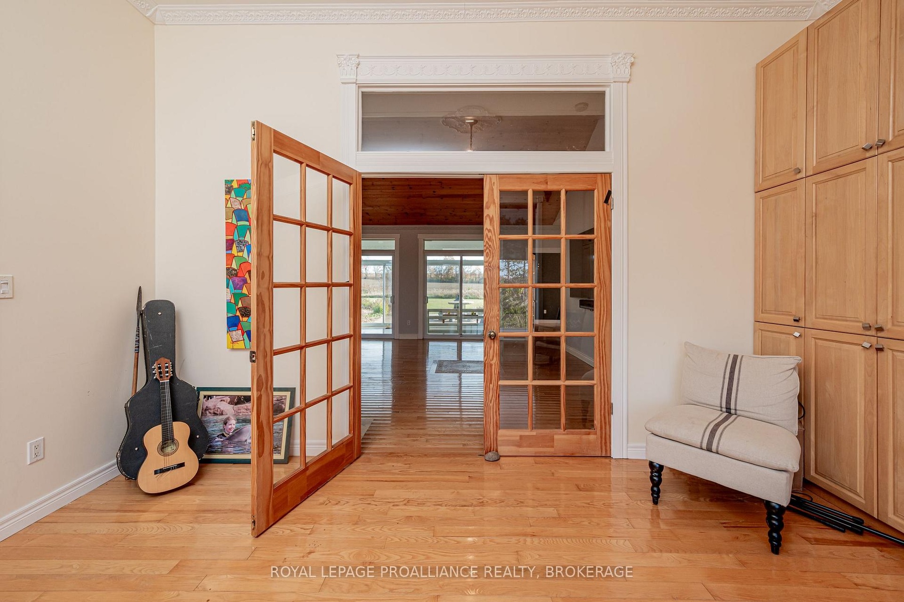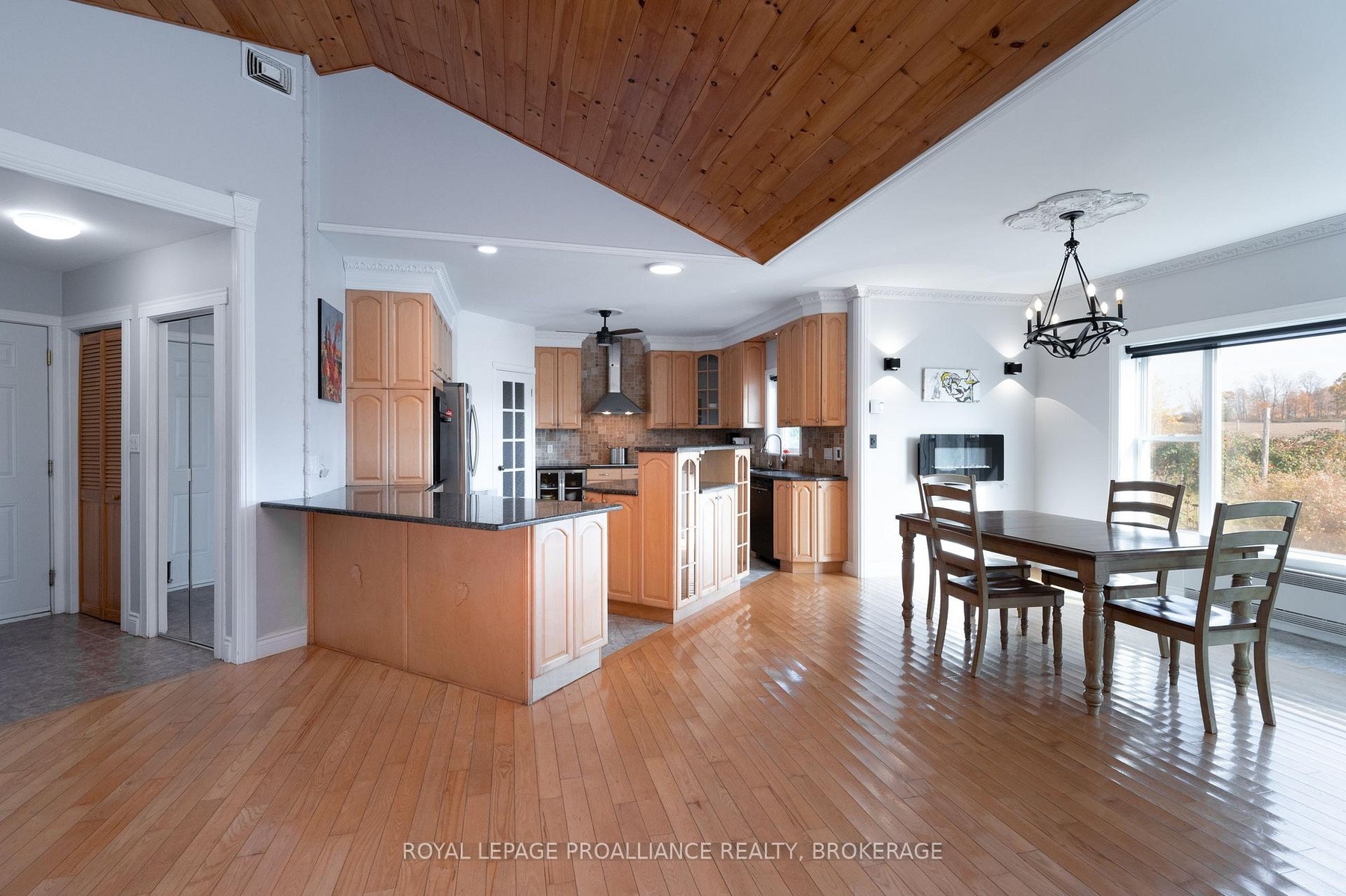 Looking for a peaceful and serene home on Howe Island? Look no further than this stunning 2-bedroom 3-bathroom wood-sided bungalow on a 1.5-acre corner lot, including not only a relaxing hot tub, but your own greenhouse! You are immediately greeted by an open concept living and dining room area with gleaming hardwood floors, high vaulted pine-covered ceilings, two electric fireplaces and banks of sunlit windows. The kitchen is a dream with custom cabinetry, built-in appliances, granite countertops and a built-in pantry. Both bedrooms are spacious, bright, carpet free and include their own spa-inspired ensuite bathrooms. You can access your all-season sunroom from all directions of the home to access your back yard oasis with a tranquil stone patio, gardens, hot tub and greenhouse or simply stay inside and enjoy the views. Steps to the Howe Island Ferry, a 5-minute ferry ride to or from the island, and a 15-minute drive to the heart of downtown Kingston.