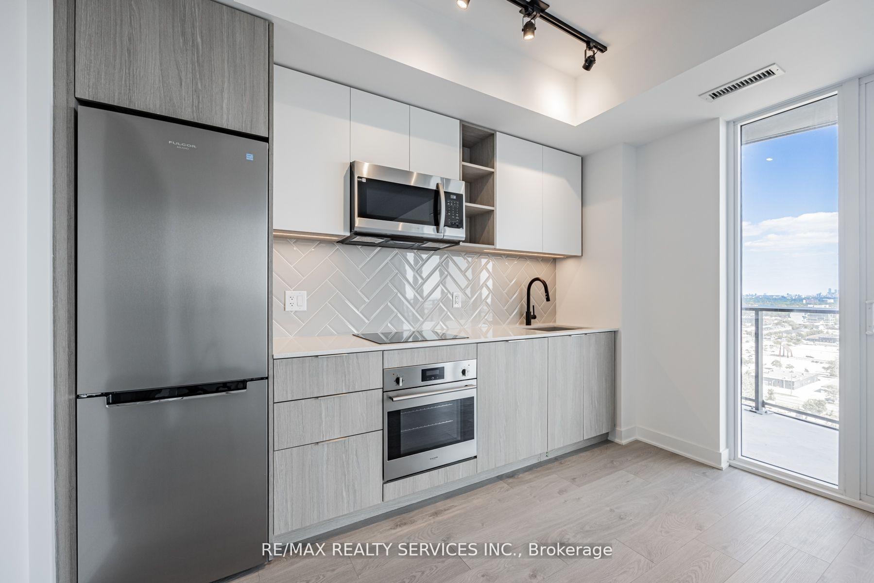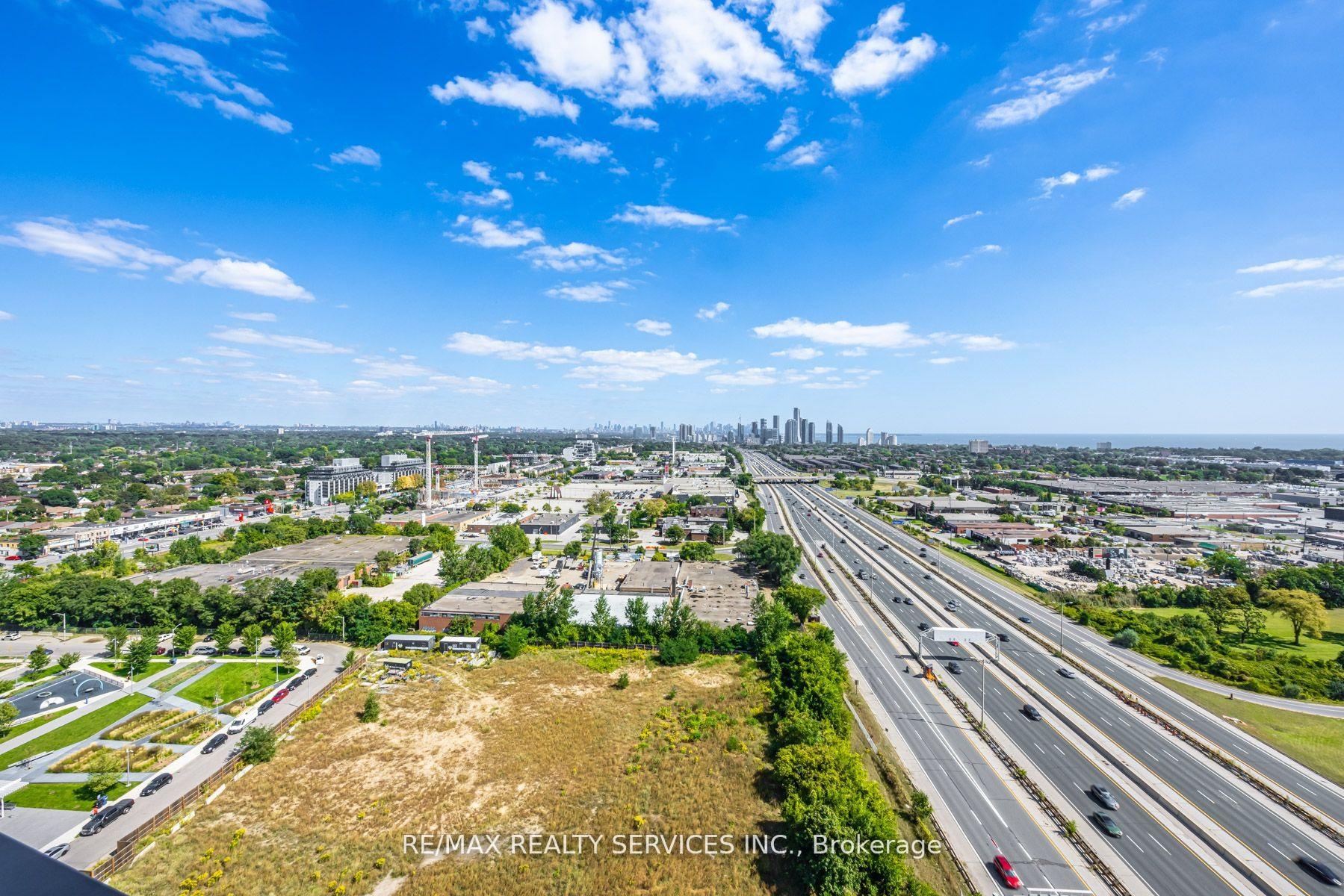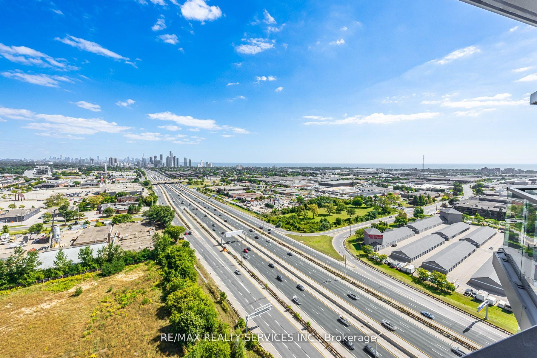 Introducing this pristine 2-bed, 2-bath suite at 36 Zorra, a stylish 36-storey building offering 9,500 sqft of amenity space. The unit features a thoughtfully designed layout with laminate flooring throughout, a spacious balcony showcasing unobstructed skyline views, and parking & locker included for added convenience. Floor-to-ceiling windows fill the space with natural light, while elegant quartz countertops in both the kitchen and bathrooms elevate the look. Conveniently located at Kipling & QEW, this prime spot offers easy access to public transit, the 427, QEW, shopping, dining, and entertainment. Amenities include a gym, pet grooming station, sauna, lounge, BBQ area, pool, guest suites, party room, concierge, co-working space, children's play area, and much more. Experience modern urban living at its finest.