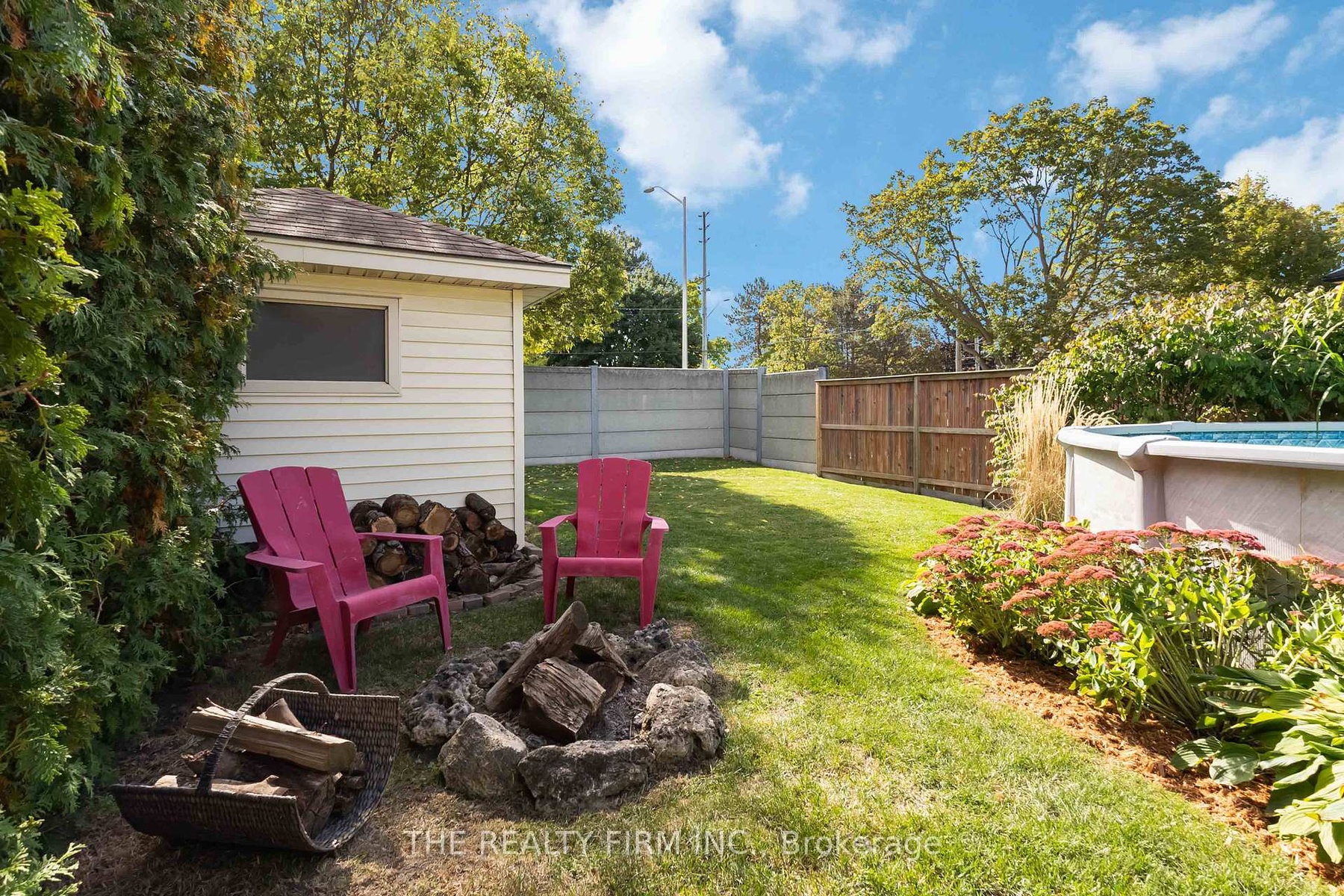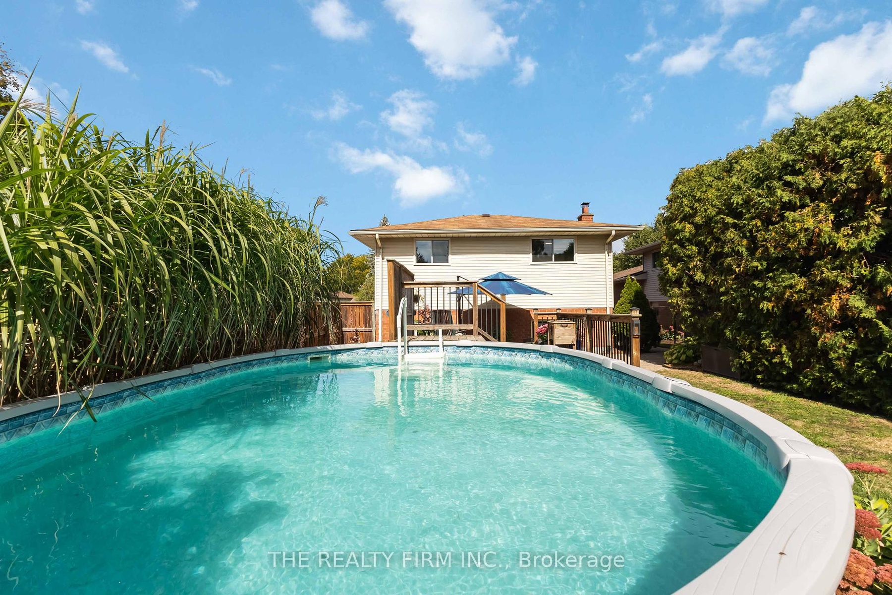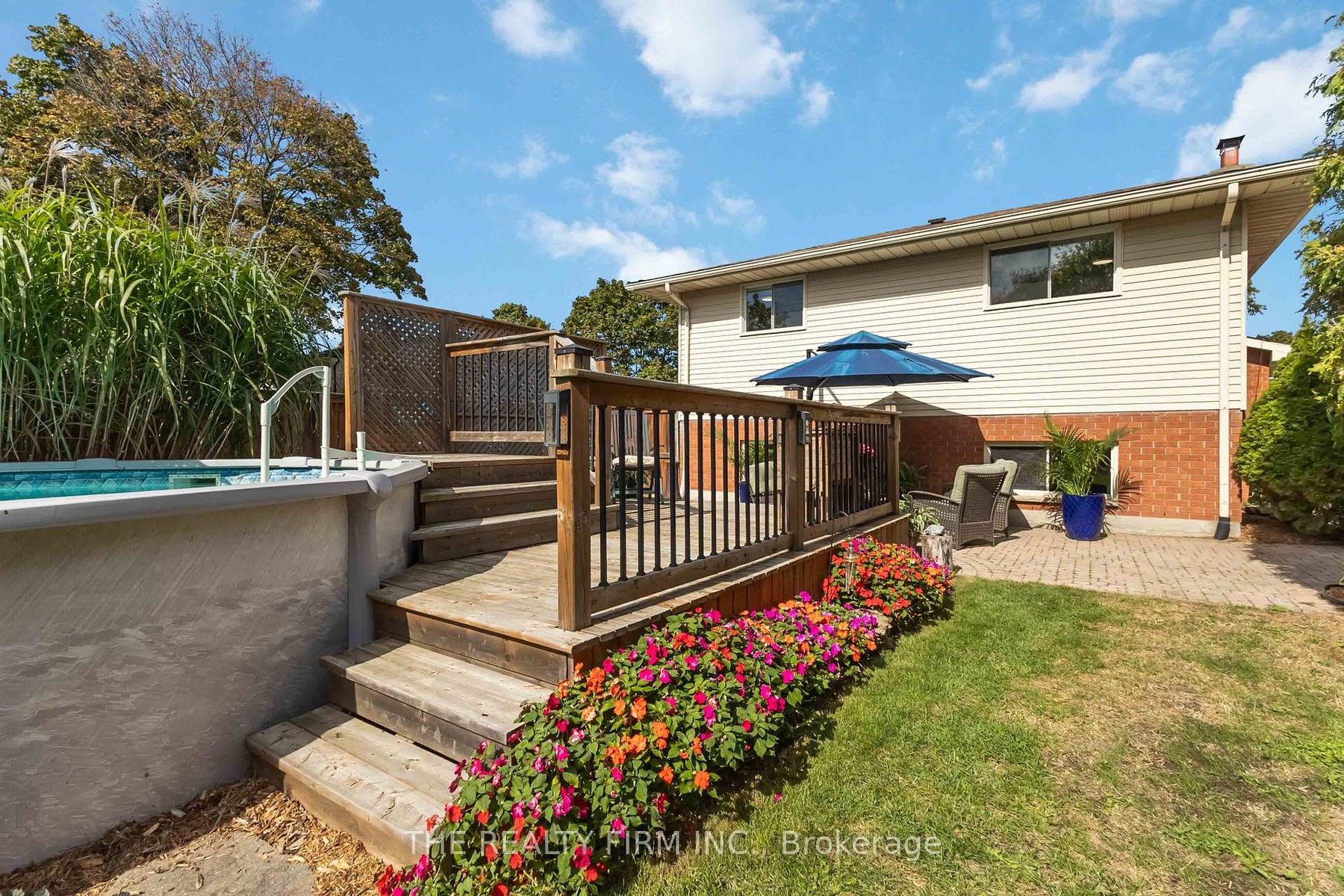 Nestled in the coveted Oakridge neighbourhood, this 3+1 bedroom, 2 full bath home offers 4 finished levels of living on a beautifully landscaped 155-foot deep lot with salt water pool. With only one neighbour, enjoy both privacy and community in one of London's most sought-after areas. Families will particularly love the easy walk to London's top-rated schools: Clara Brenton, St. Paul Elementary, and Oakridge Secondary. Pulling up to the home along the tree-lined street, you will be greeted by stunning curb appeal: a welcoming covered front porch, pristine gardens, and undeniable charm. Inside, the bright, functional layout features a spacious living room, an inviting eat-in kitchen with updated appliances and a stylish backsplash, and a formal dining room perfect for family gatherings. The upper level hosts the large primary bedroom, two additional bedrooms, and a full bathroom. Downstairs, the third level is a true standout, with soaring 9 ft ceilings, a cozy wood-burning fireplace, large windows, a fourth bedroom, and a second full bath. Complete with a separate side entrance, this area offers fantastic granny suite potential or an ideal teen retreat! The lowest level adds even more practical living space with a versatile finished rec room, large laundry and storage room/cold room. Step out to your private paradise and enjoy all-day sun with a fantastic deck surrounding the saltwater above-ground pool (approx. 10 yrs old), or entertain guests on the paver stone patio. The deep lot provides ample green space for play, gardening, and outdoor fun. Practical updates include the furnace (2009), heated eaves, and a secondary electrical panel wired for a portable generator. Situated in an unbeatable location, walk to Remark Fresh Market, Superstore, Shoppers Drug Mart, parks, and dining. This home is ready for you, simply move in and start enjoying the absolute best of Oakridge family living!