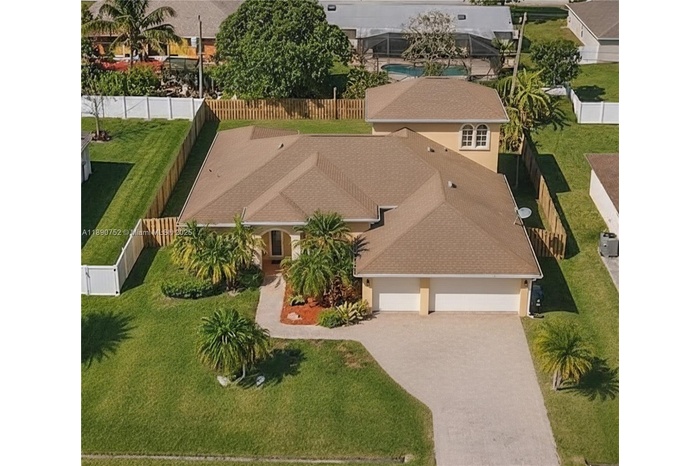 DescriptionBRAND NEW ROOF! This beautifully designed 5-bedroom, 3-bath home offers style, space, and comfort. Inside, enjoy a blend of diagonal tile and hardwood floors throughout. The gourmet kitchen features granite countertops, wood cabinetry, and newer stainless steel appliances. Elegant details like double tray ceilings, arches, and crown molding add timeless charm. The spacious primary suite includes a jetted tub, tiled shower, and dual sinks. Upstairs, a versatile bedroom is ideal for a loft, office, or media room. The fenced backyard features a screened lanai and extended paver patio—perfect for outdoor living. Conveniently located near shopping, dining, and local amenities. Move-in ready and priced to sell!Amenities- Blinds