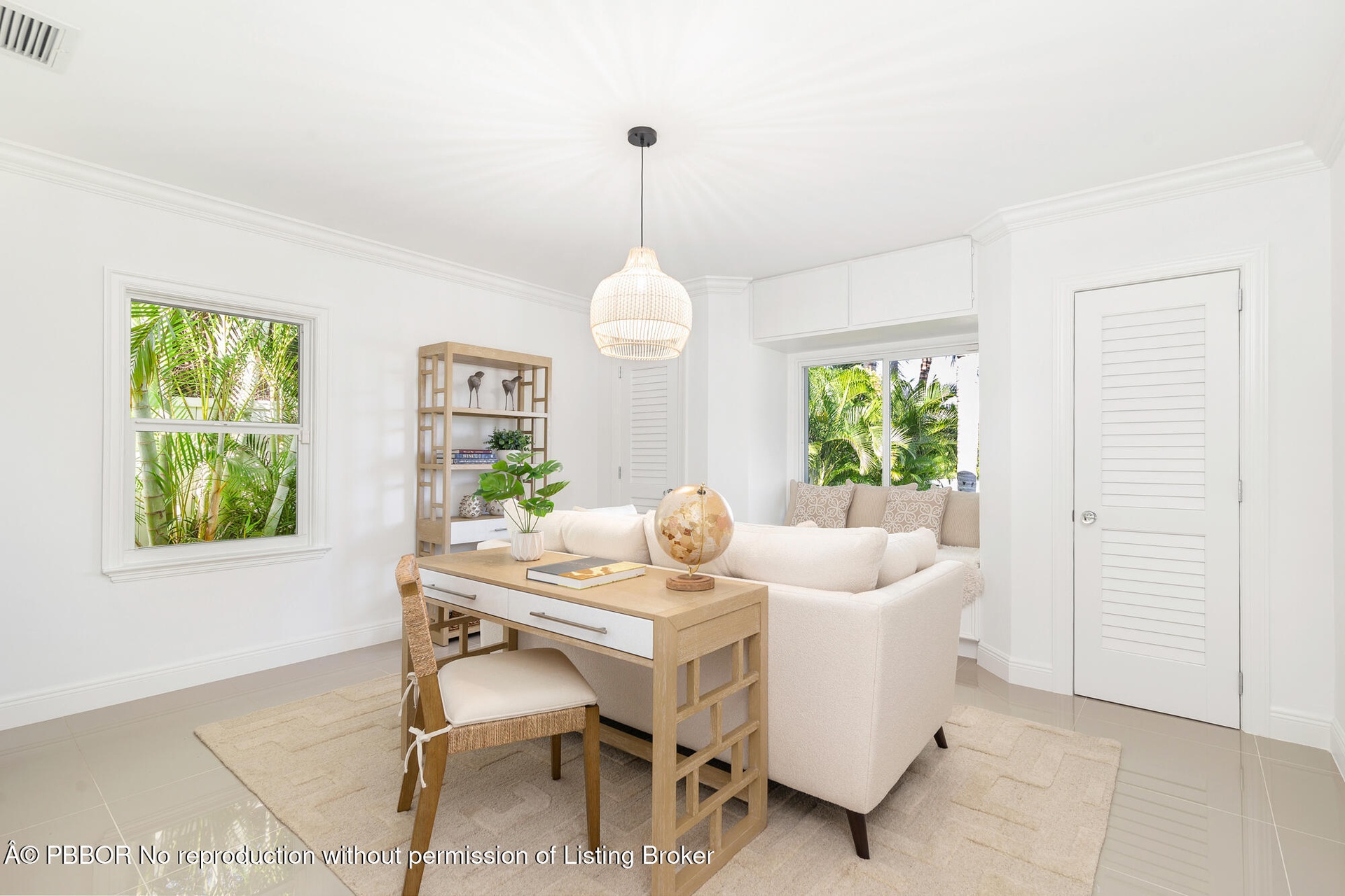 Surrounded by lush, tropical landscaping, and a resort style heated pool and covered loggia, this residence is ideal for indoor/outdoor entertaining. One mile to Palm Beach, you are also steps away from shopping, restaurants, the Norton Museum of Art, downtown West Palm Beach and Palm Beach International Airport.