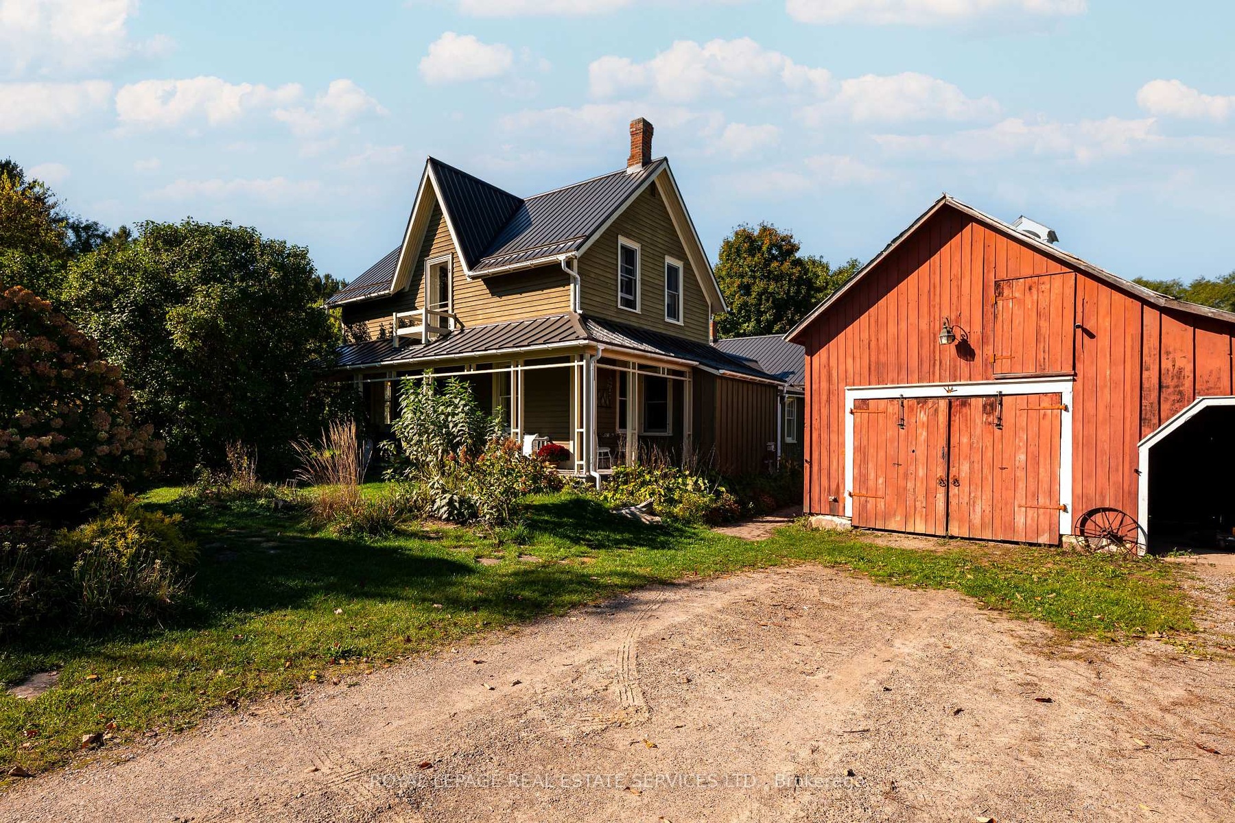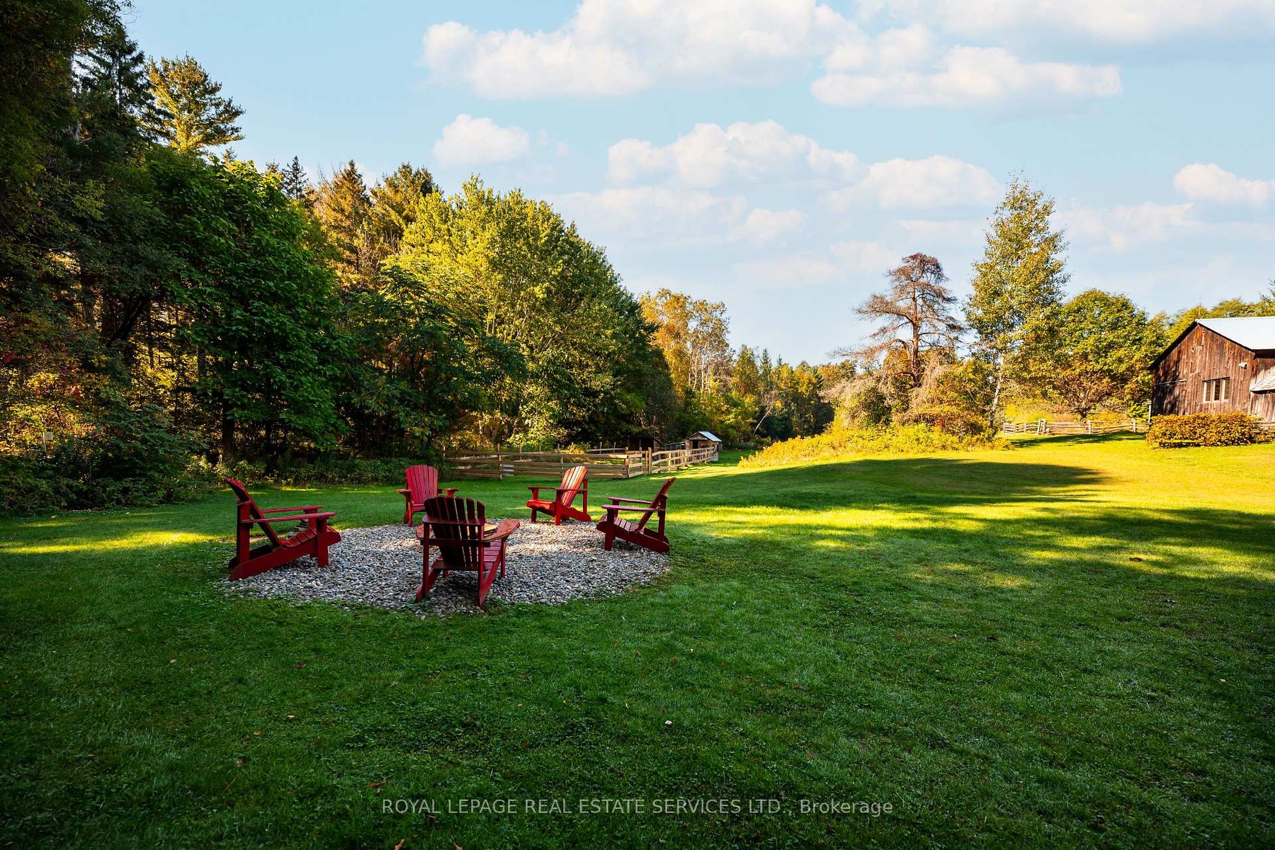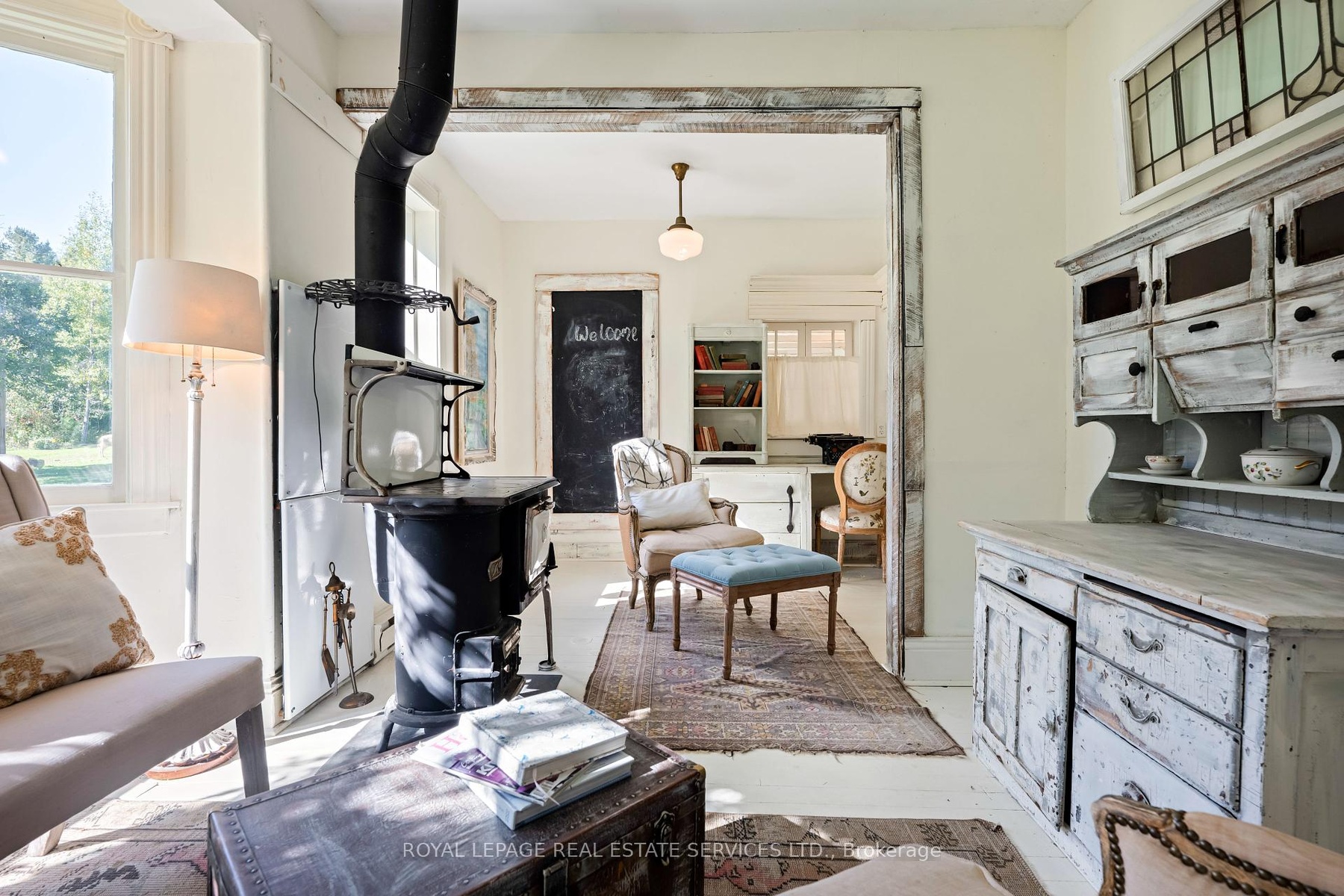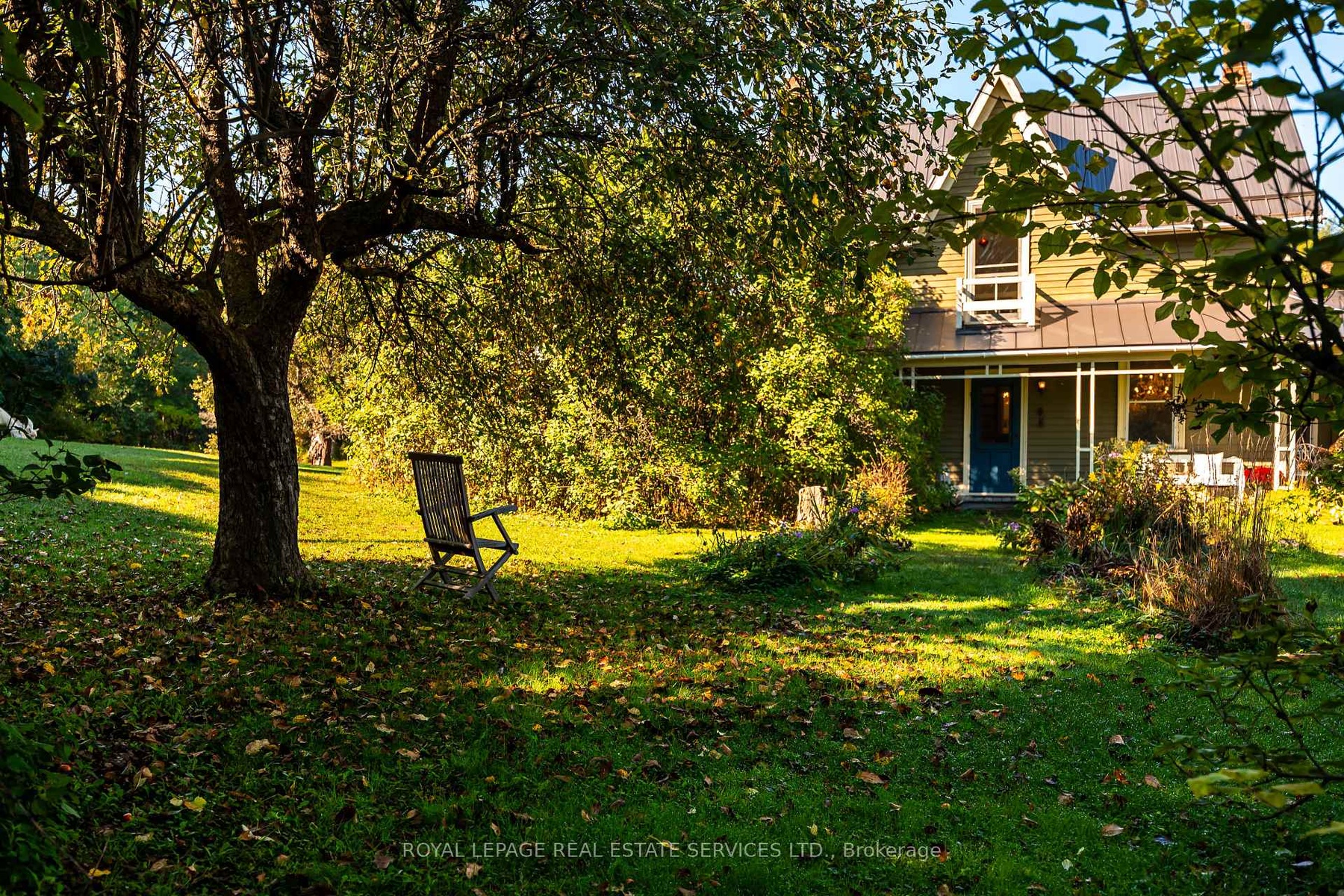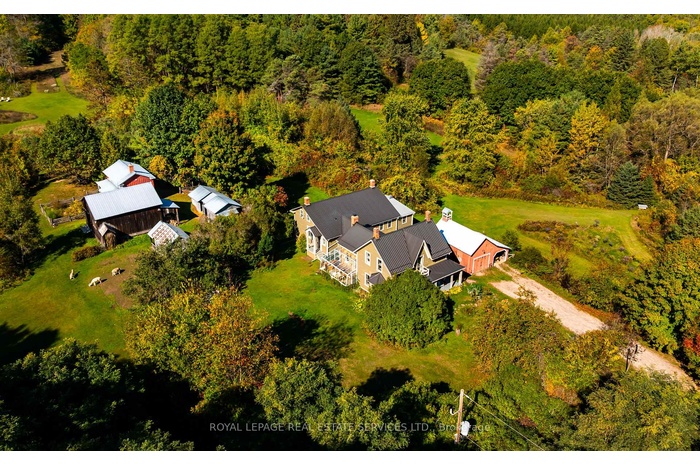 Two homes and one magical location, perfect for homesteading nestled on 25.5 acres of carefully maintained with organic practices under the protection of the Nottawasaga Conservation and (Oakridge Moraine protection easement). For over a decade, this land has been organically maintained, loved, nurtured, and left unharmed by chemicals ready for your next chapter of slow, meaningful living. The main residence is a love letter to simpler days, with original wide plank floors, a wood-burning fireplace in the kitchen, and a layout that invites warmth and connection. Share casual meals around the kitchen island or gather for unforgettable dinners in the grand dining room with hidden pantry. The living room radiates rustic elegance, while every bedroom holds its own kind of magic. The primary retreat includes a walk-in closet, studio space, and a fully wheelchair-accessible bathroom. A bright and airy sunroom offers the perfect place to sip morning coffee, read a book, or simply watch the seasons unfold in quiet beauty. A completely separate guest cottage provides space for visitors or 'Airbnb' potential, but with so much serenity, you may choose to keep it all to yourself. With so many areas to relax, indoors and out, there's no need for a cottage escape when you have it all right here. Geothermal and baseboard heating, plus wood fireplaces, keep the home efficient and cozy. A fresh spring-fed well provides excellent water potability, while a spring-fed pond adds a touch of wild beauty to the landscape. Surrounded by hundreds of acres of protected forest, you'll enjoy unmatched privacy, your own network of trails for hiking, snowshoeing or skiing, and the joy of watching animals roam freely or cared for in pens and a charming chicken coop. Just 25 minutes to Orangeville and a short drive to Hockley Valley. Imagine living the dream in this magical location that can be fully sustainable.