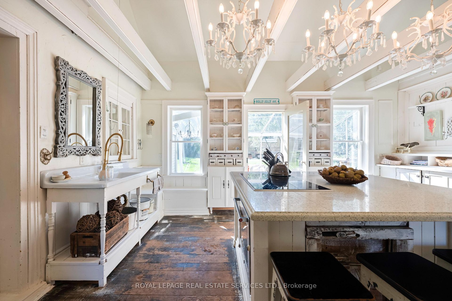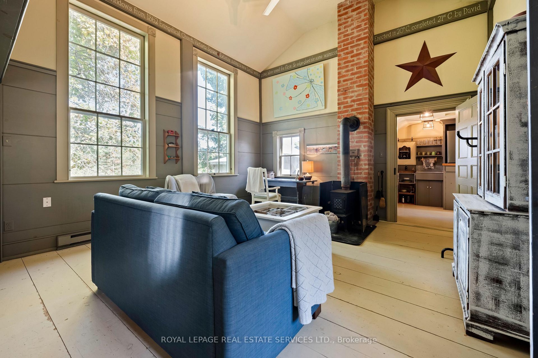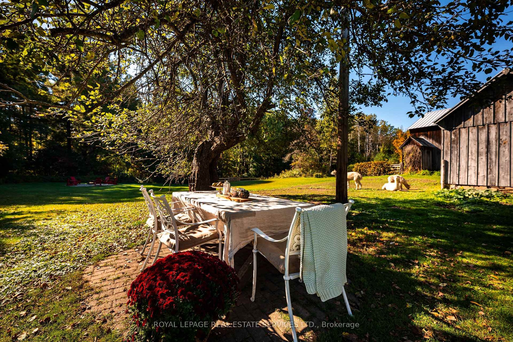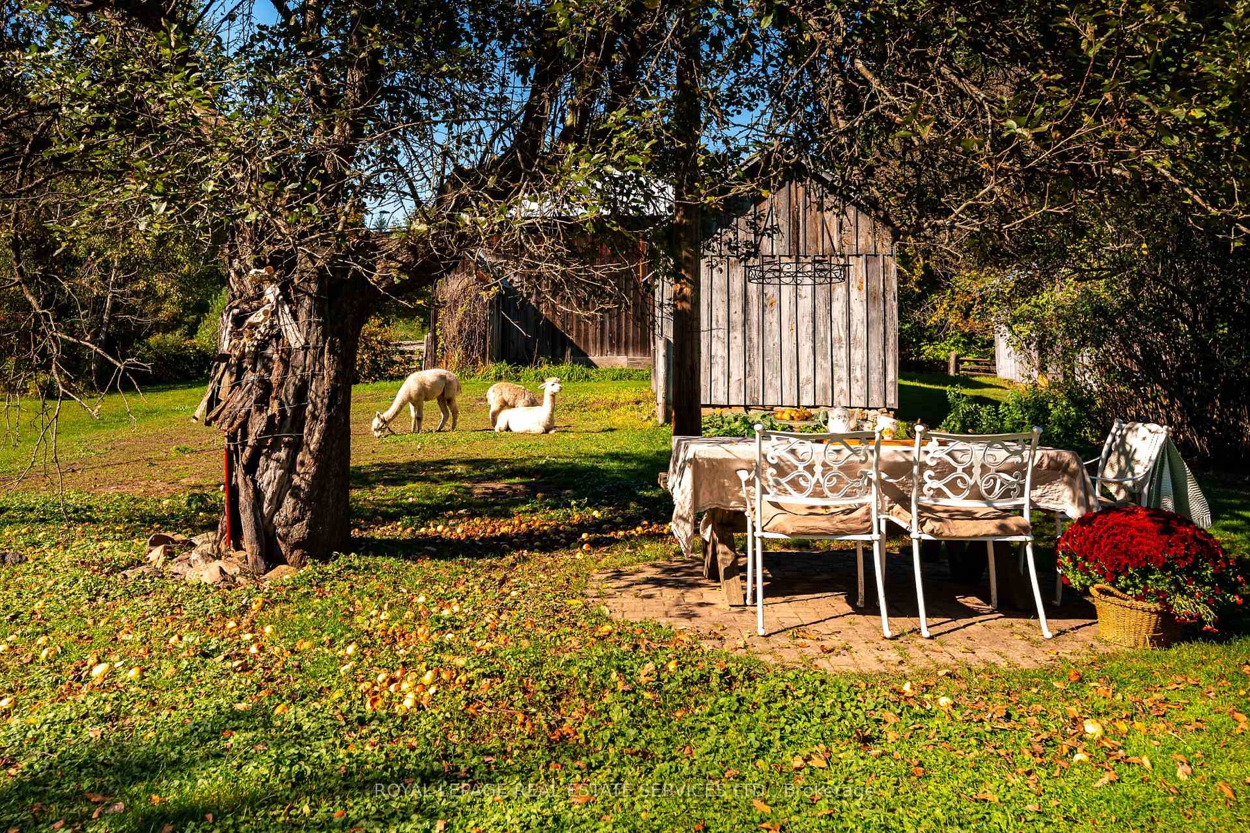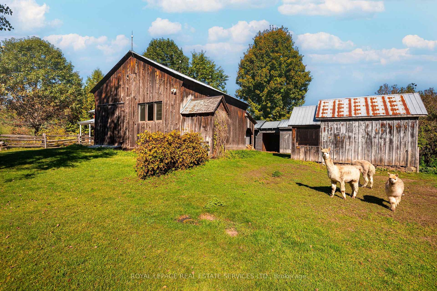 Two homes and one magical location, perfect for homesteading nestled on 25.5 acres of carefully maintained with organic practices under the protection of the Nottawasaga Conservation and (Oakridge Moraine protection easement). For over a decade, this land has been organically maintained, loved, nurtured, and left unharmed by chemicals ready for your next chapter of slow, meaningful living. The main residence is a love letter to simpler days, with original wide plank floors, a wood-burning fireplace in the kitchen, and a layout that invites warmth and connection. Share casual meals around the kitchen island or gather for unforgettable dinners in the grand dining room with hidden pantry. The living room radiates rustic elegance, while every bedroom holds its own kind of magic. The primary retreat includes a walk-in closet, studio space, and a fully wheelchair-accessible bathroom. A bright and airy sunroom offers the perfect place to sip morning coffee, read a book, or simply watch the seasons unfold in quiet beauty. A completely separate guest cottage provides space for visitors or 'Airbnb' potential, but with so much serenity, you may choose to keep it all to yourself. With so many areas to relax, indoors and out, there's no need for a cottage escape when you have it all right here. Geothermal and baseboard heating, plus wood fireplaces, keep the home efficient and cozy. A fresh spring-fed well provides excellent water potability, while a spring-fed pond adds a touch of wild beauty to the landscape. Surrounded by hundreds of acres of protected forest, you'll enjoy unmatched privacy, your own network of trails for hiking, snowshoeing or skiing, and the joy of watching animals roam freely or cared for in pens and a charming chicken coop. Just 25 minutes to Orangeville and a short drive to Hockley Valley. Imagine living the dream in this magical location that can be fully sustainable.