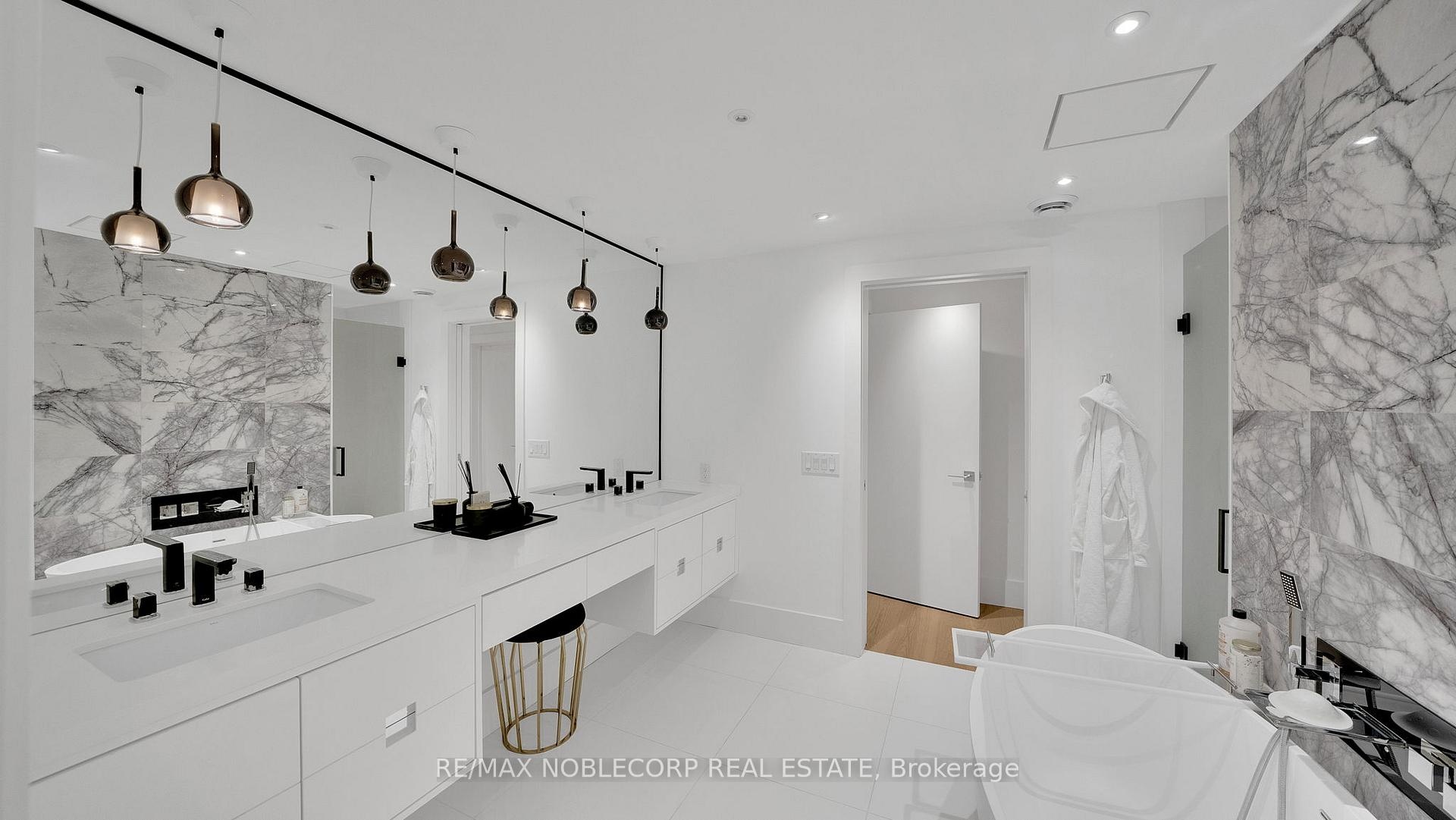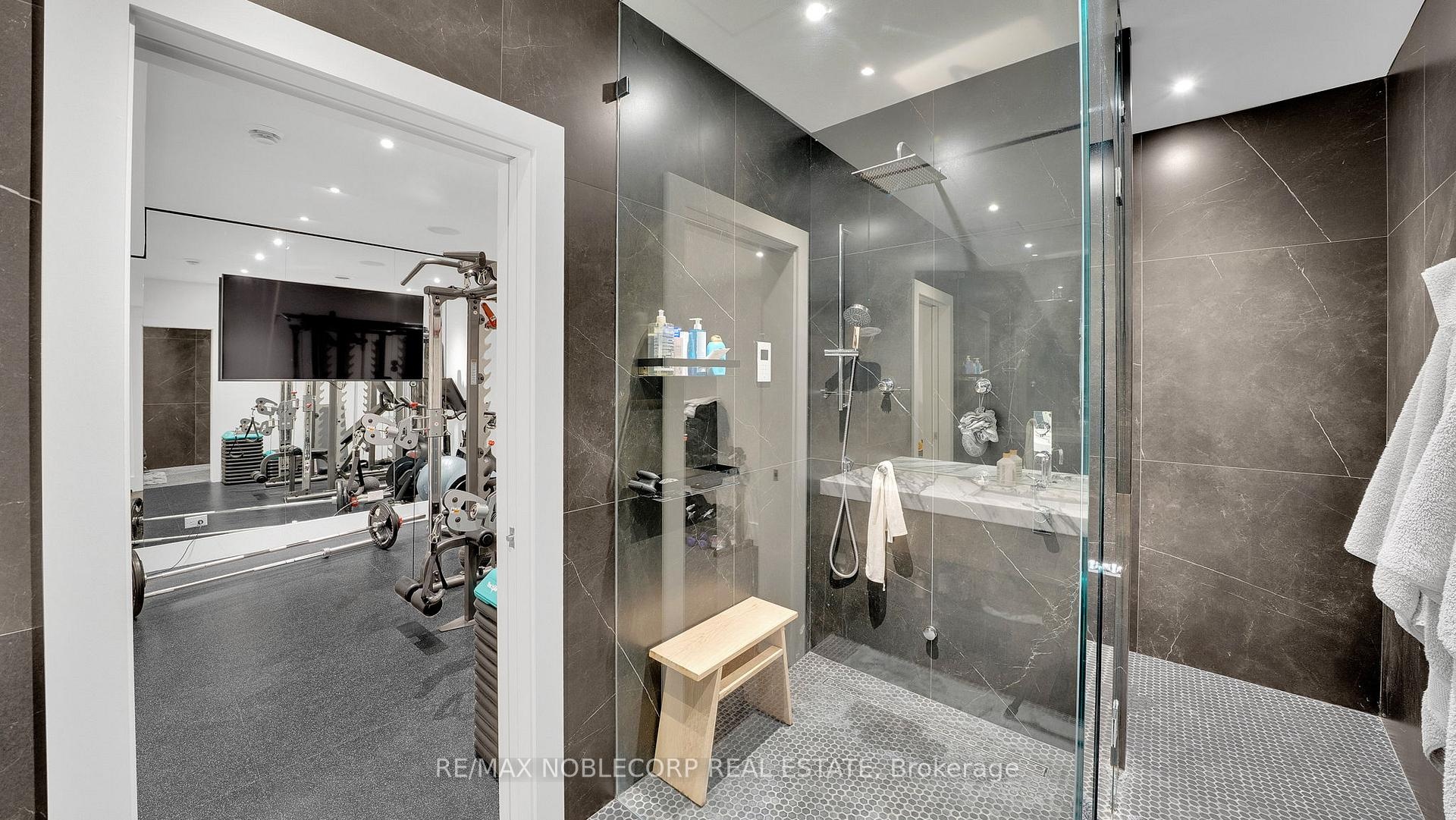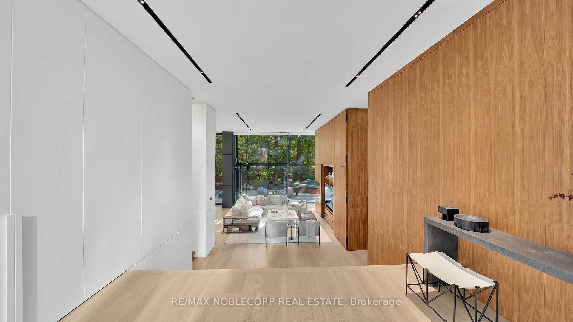 Inspired by the precision and versatility of a Swiss Army knife, this internationally award-winning, architecturally significant residence offers over 6,000 sq.ft. of luxury living on a private, forested ravine cul-de-sac. Designed with dynamic multi-level functionality, its dual wings are connected by a sleek glass bridge and clad in a striking blend of reflective titanium, simulated walnut, and rich black Palisade panels. A descending entrance introduces the main living area where a panoramic fireplace anchors open-concept spaces extending to the outdoors through a dramatic, folding glass hangar door. Every detail is engineered for seamless living and entertaining from the indoor/outdoor dining areas, hidden wine closet, and wet bar to the amenity-rich lower level featuring a full kitchen, gym, and theatre. The primary suite is a true retreat with his-and-hers closets, a spa-inspired ensuite, and a private balcony overlooking the ravine. Outside, a tiered infinity pool, integrated outdoor kitchen, and fire table are enveloped by nature, creating a breathtaking, resort-like oasis.