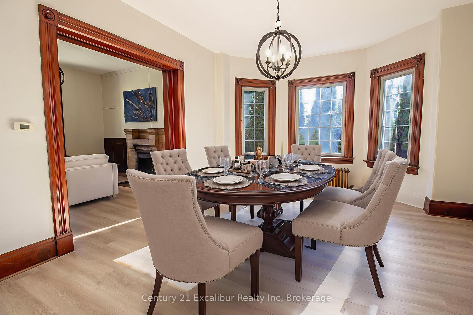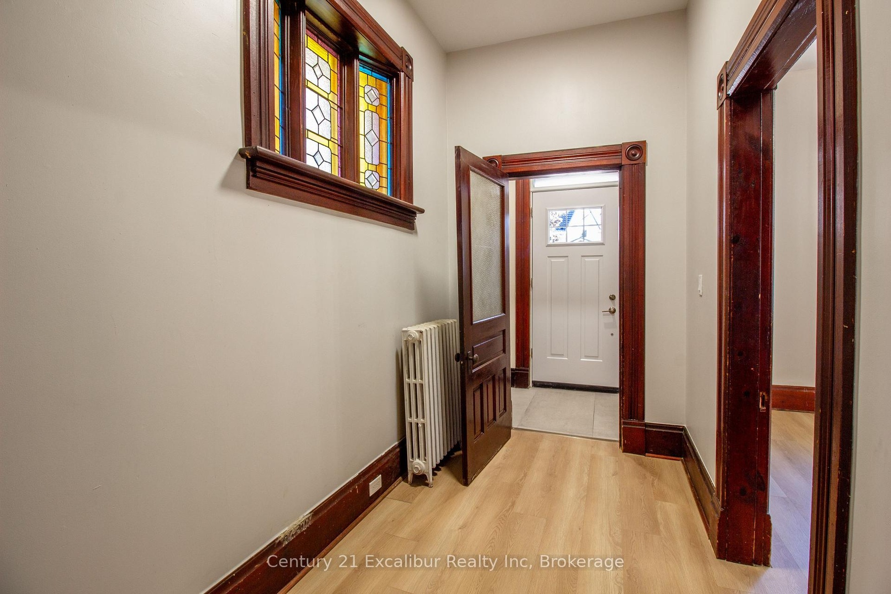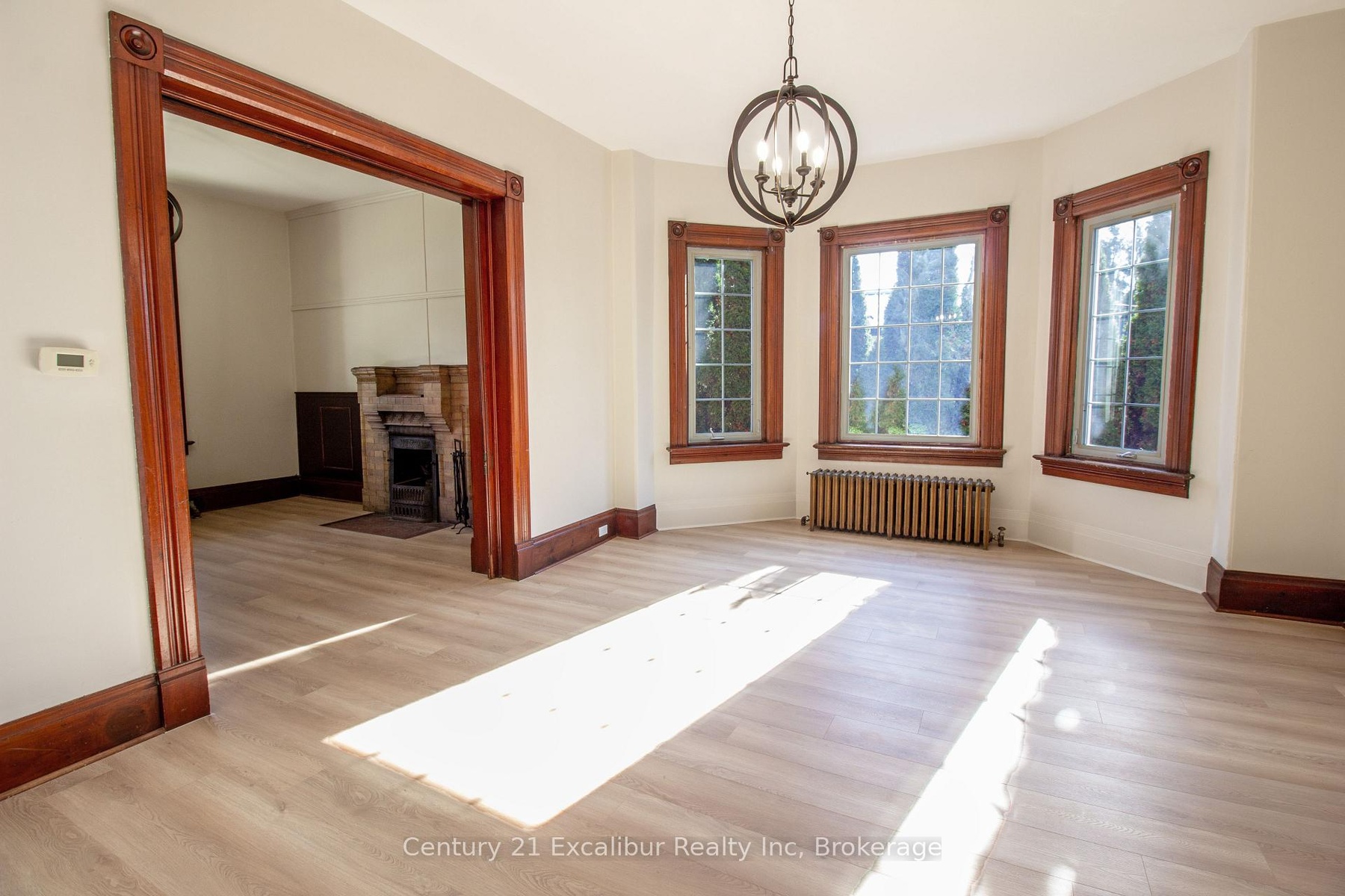 Welcome to this stunning red brick century home, offering 3 story's, 5 bedrooms, and 3 bathrooms with 2,324 sq. ft. of above-ground living space. Fully renovated on all levels, this home features brand-new flooring, fresh paint, a modern kitchen, and updated bathrooms every detail has been thoughtfully refreshed. Inside, you'll find high ceilings, abundant natural light, and plenty of storage. While the updates bring a fresh, modern feel, the home retains its charm with an original fireplace and original glass pocket doors. The exterior is equally impressive, with a covered front porch, newly paved driveway, and a large fenced backyard. Enjoy outdoor living on the poured concrete patio, perfect for entertaining or relaxing in a private setting. This property combines timeless character with modern updates, making it a truly move-in ready century home.