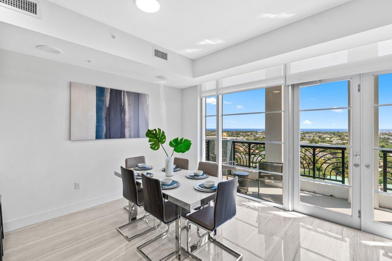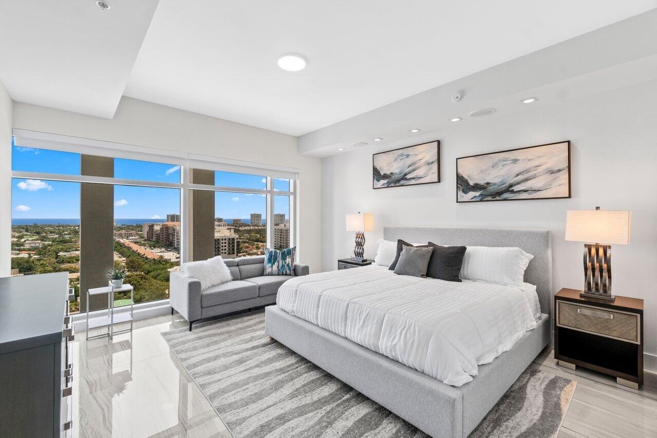 Experience luxury living at its finest in this breathtaking 12th-floor penthouse located in the heart of East Boca. Boasting panoramic ocean and city views, this contemporary furnished 3 bedroom, 3.5-bath residence offers unmatched elegance and style. The master suite is conveniently located on the main floor, providing ultimate privacy & comfort. Floor-to-ceiling windows flood the space with natural light. The chef's kitchen features quartz countertops, Italian cabinetry, Subzero refrigerator, & a spacious center island perfect for entertaining. Steps away from downtown Boca & Mizner Park, this penthouse combines upscale living with unparalleled convenience. Don't miss the opportunity to make this extraordinary residence your own!