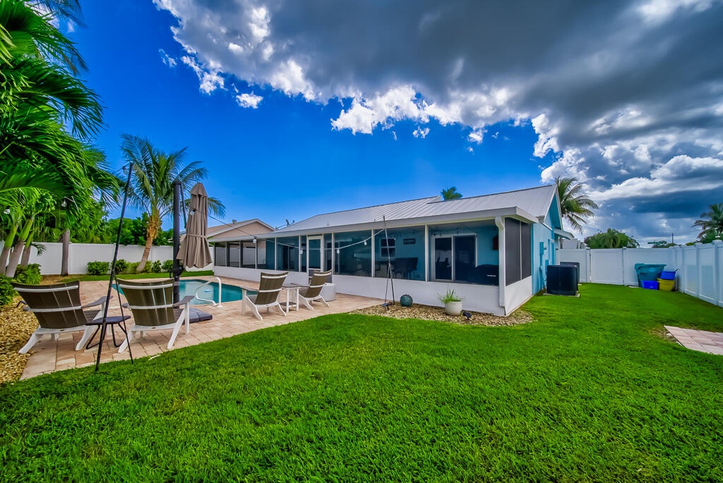 DescriptionWelcome to your dream corner lot POOL home in highly desired Sky Lake. This community has one of the lowest HOA fees in the area. A true dream, featuring 3 bedrooms, 2 bathrooms, and a 1.5 car garage within 1,310 square feet of modern living space. The open floor plan showcases elevated ceilings and wood tile floors throughout, accented by a striking metal roof (2021), ADT cameras and hurricane impact windows and doors for added security. Step into the oversized kitchen, complete with Corian countertops, a gas stove top, white cabinetry, stainless steel appliances, and a convenient island with a snack bar. The laundry area in the garage includes a washer and dryer along with shelves and cabinets, providing functionality and ease.