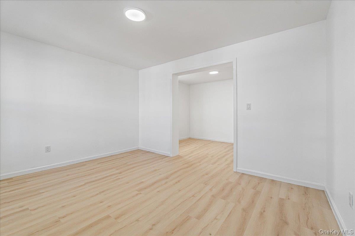 - Unfurnished bedroom with light wood-type flooring and baseboards