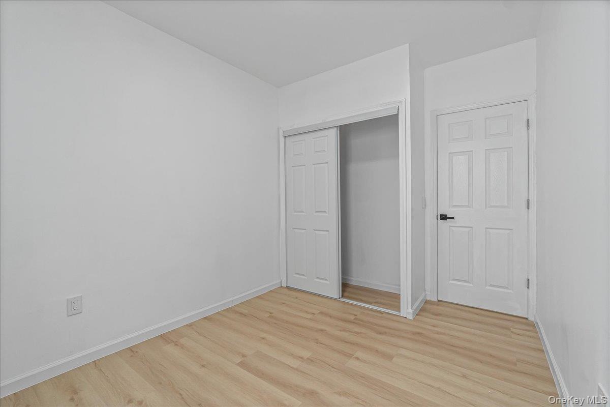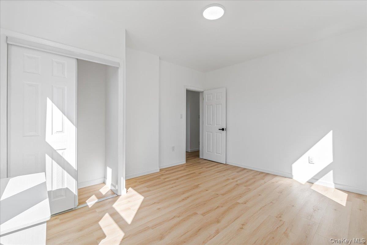 - Unfurnished bedroom featuring light wood-style floors and a closet