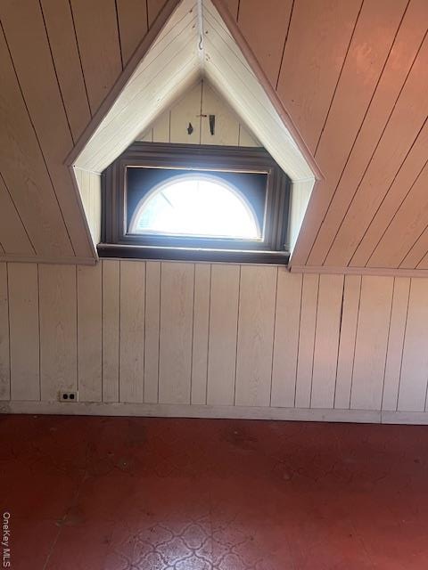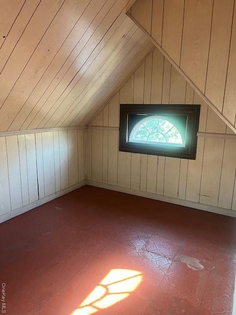 - Bonus room featuring wooden walls and lofted ceiling