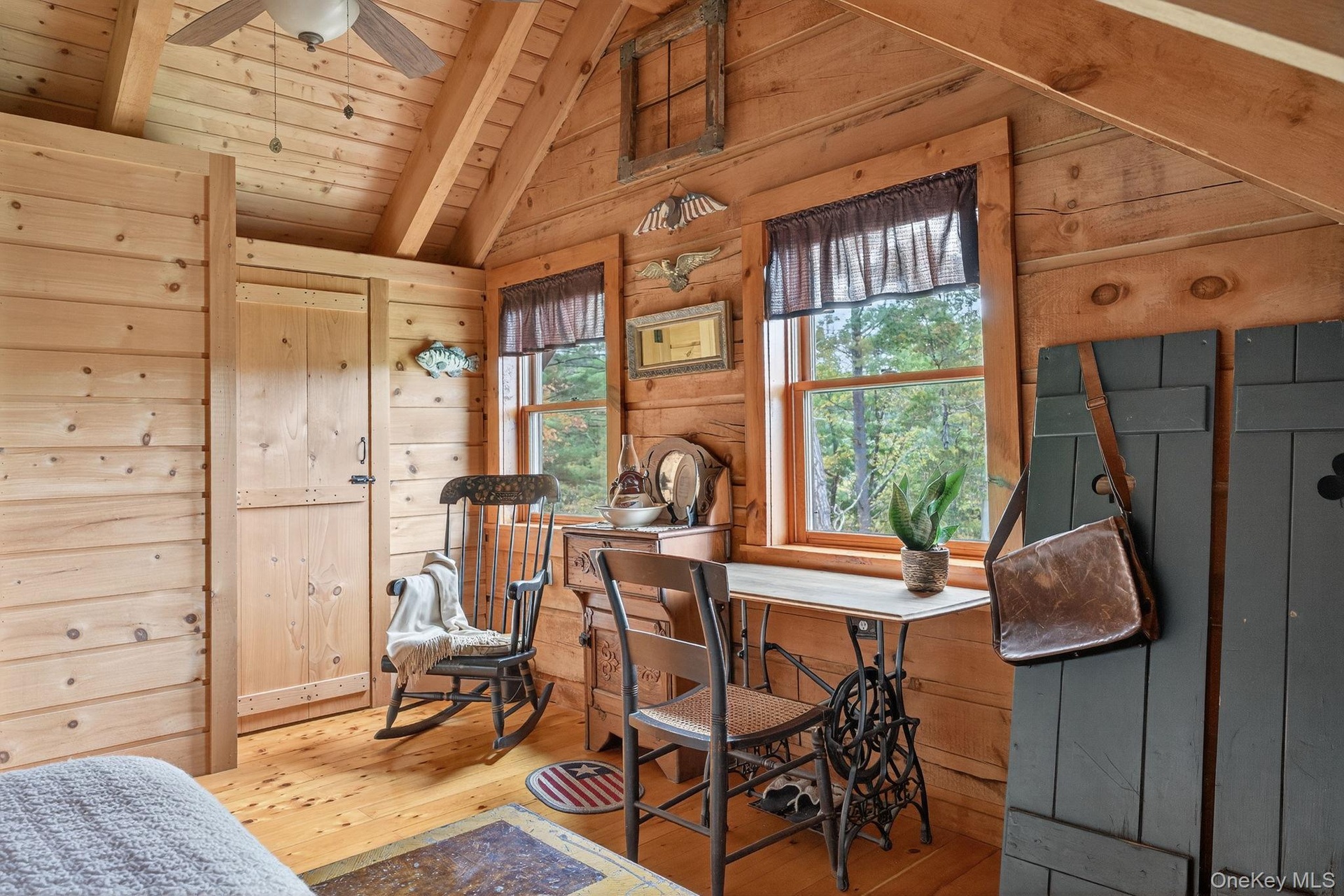 Tucked next to the main home - the unfinished artist studio - whispers of potential. Whether you're a painter, a poet, or a dreamer in search of space, this light-filled outbuilding is ready to become whatever you need it to be. The log construction, with its timeless lines and grounding presence, creates the perfect vibe to let your creative juices flow.