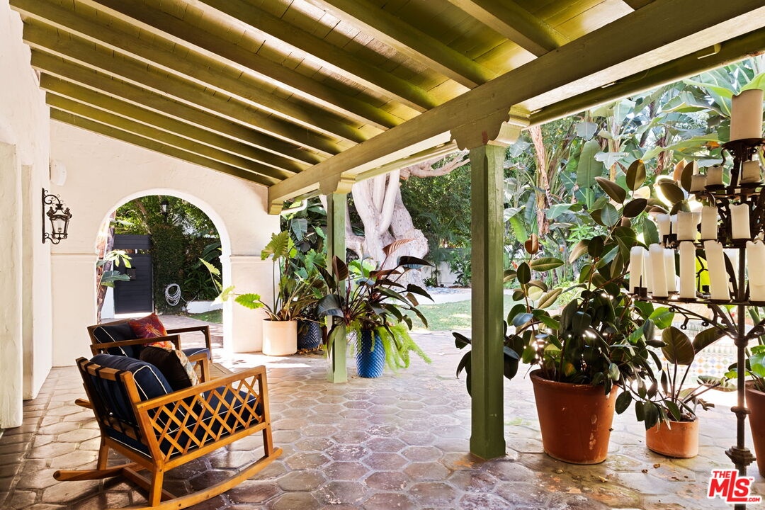 Welcome to this stunning Spanish-style estate at 1800 Outpost Drive., a beautifully gated, hedged, and private residence that seamlessly blends classic elegance with modern luxury. Boasting 4 bedrooms and 3.5 bathrooms, this home offers an ideal layout for both entertaining and comfortable everyday living. The home's high ceilings and rich wood floors create an inviting atmosphere throughout, complemented by abundant natural light streaming in through French doors that lead to the pool, spa, and covered patios.The downstairs features an oversized living room with beamed ceilings, perfect for hosting guests or relaxing with family. Adjacent is a spacious dining room and a gourmet kitchen equipped with top-of-the-line Sub-Zero, Viking, Wolf, and Miele appliances. A family room provides the perfect space for relaxing, watching TV, or casual gatherings. A convenient powder bath serves guests, while a bedroom with an en-suite full bath provides privacy and comfort for visitors or live-in accommodations.Upstairs, the primary suite is a true retreat, complete with an en-suite bathroom, walk-in closet, and private balcony overlooking the pool. The second and third bedrooms each offer their own charm the third bedroom with a private balcony, and the fourth bedroom sharing a well-appointed bathroom. A hallway balcony overlooking the courtyard adds a touch of elegance and a serene view from above.Step outside to a private backyard and a Saltillo-tiled courtyard with a fountain and built-in BBQ area, offering a peaceful oasis for relaxation or entertaining. The pool with spa, covered patios, and expansive gated driveway with a garage add to the luxurious lifestyle this home provides. This residence is partially furnished, allowing for an effortless move-in experience while showcasing its sophisticated style.Situated in a highly desirable area, this home provides the perfect combination of privacy and convenience. Residents enjoy proximity to top-rated schools, shopping, dining, and recreational options, making 1800 Outpost Drive. not just a home, but a prime location in one of the most sought-after neighborhoods. Available for a minimum 13-month lease term.