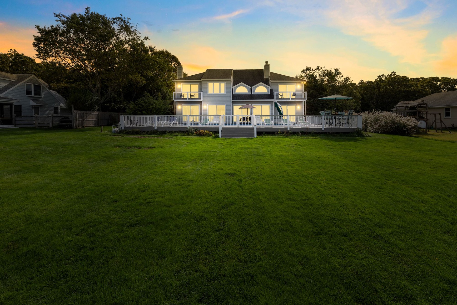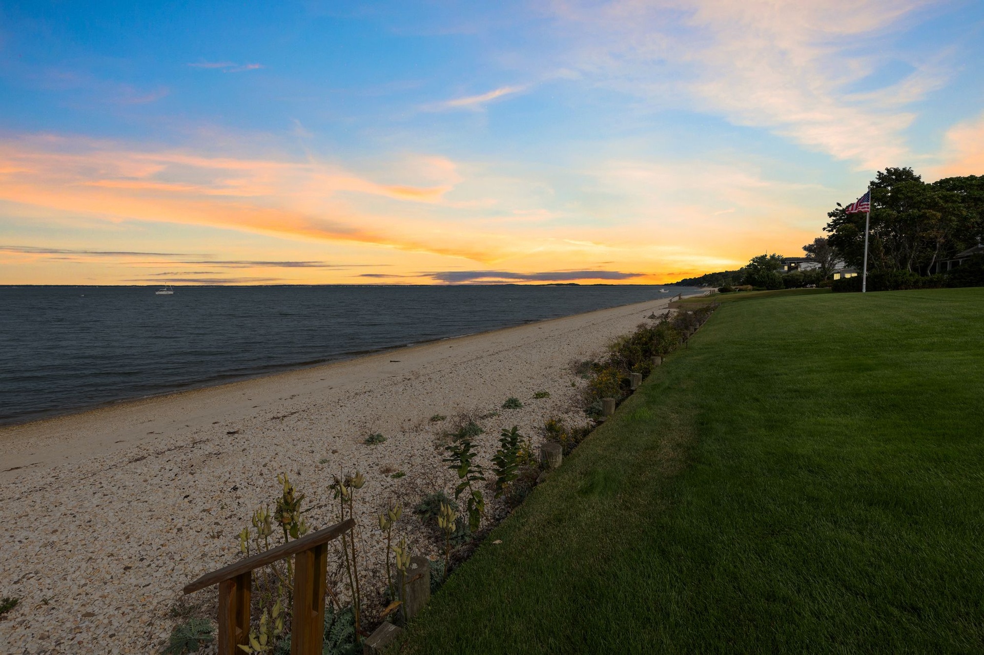 A true Hamptons seaside retreat, this sunny waterfront home on the Peconic Bay offers private beach access, summer-ready outdoor living, and spectacular water and sunset views.
