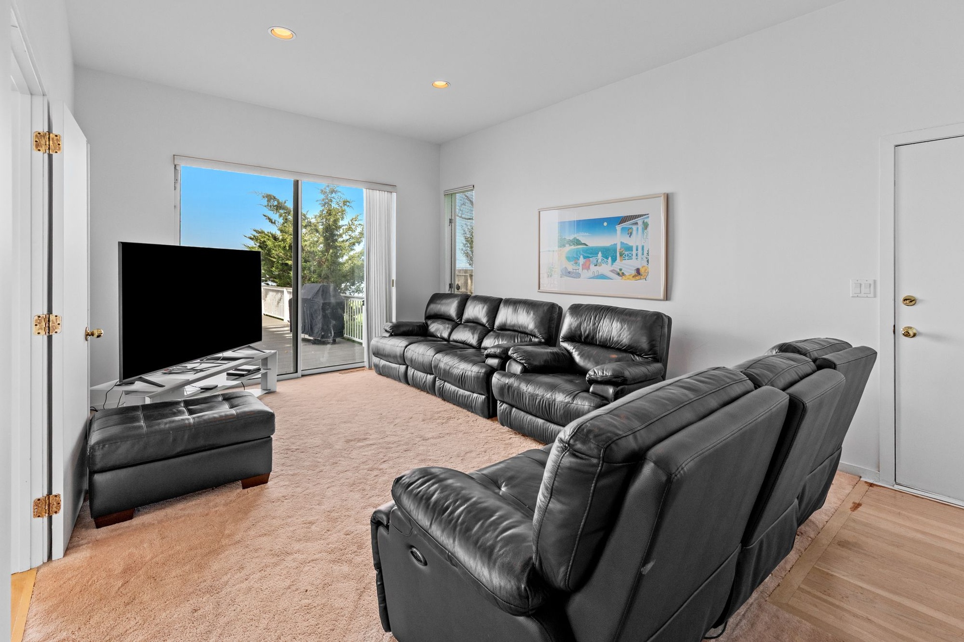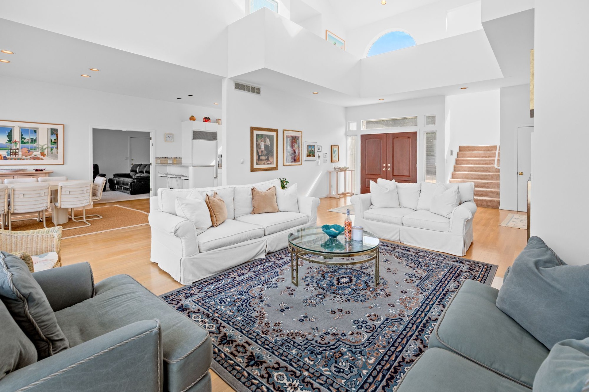 Flooded with natural sunlight thanks to high ceilings and expansive windows, the 4-bedroom residence has an inviting, beachy feel throughout. Upon entry, you’re welcomed into an open living room that flows seamlessly into the kitchen, dining area, and a second den for lounging or entertaining. The first floor features a primary bedroom suite, providing the convenience of ground level living for guests.