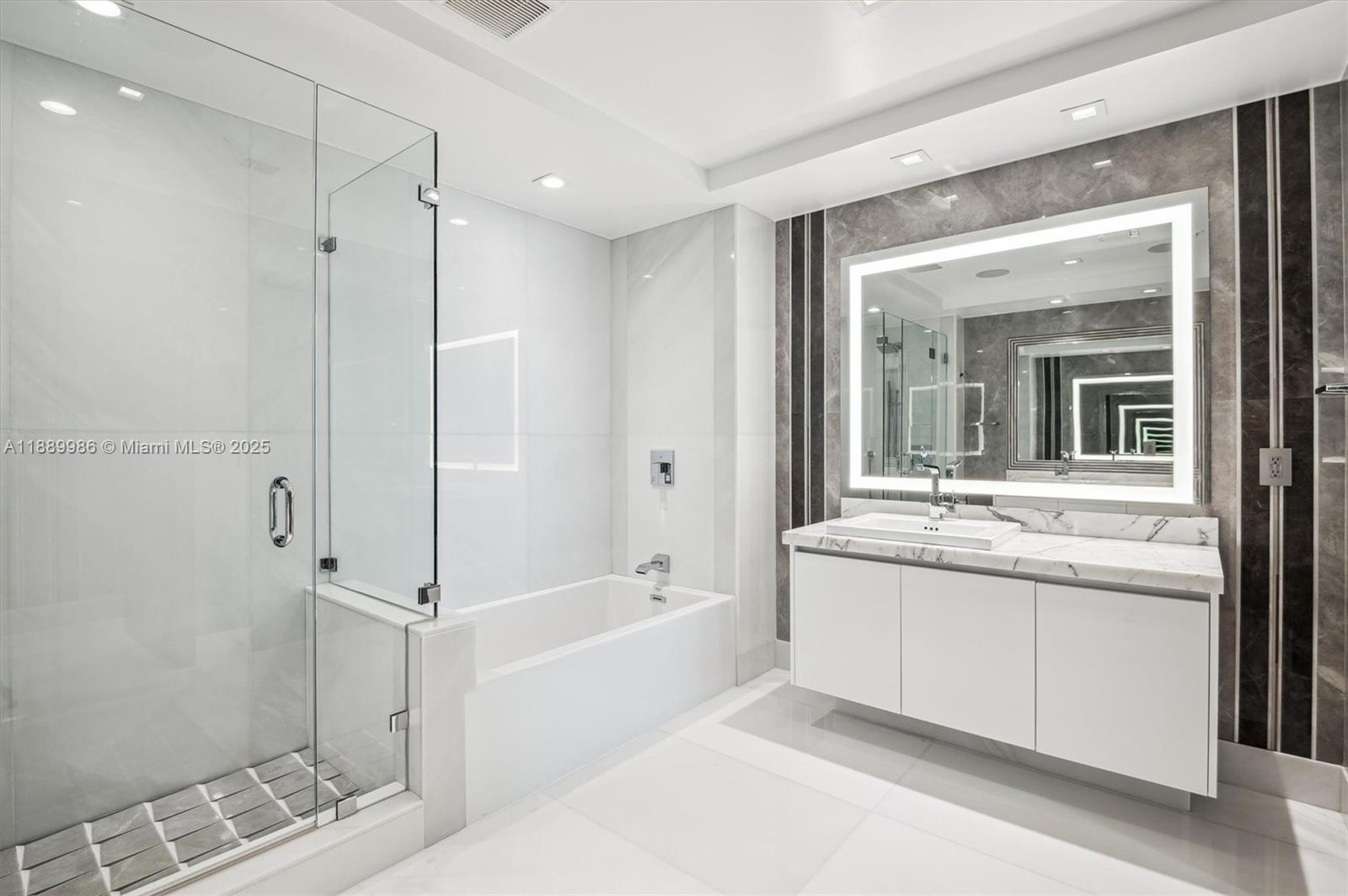 - - Marble Countertops w/ Dual Sinks & Grohe Fixtures, Seura Lighted Vanishing TV Mirror. Separate Water Closet Room.