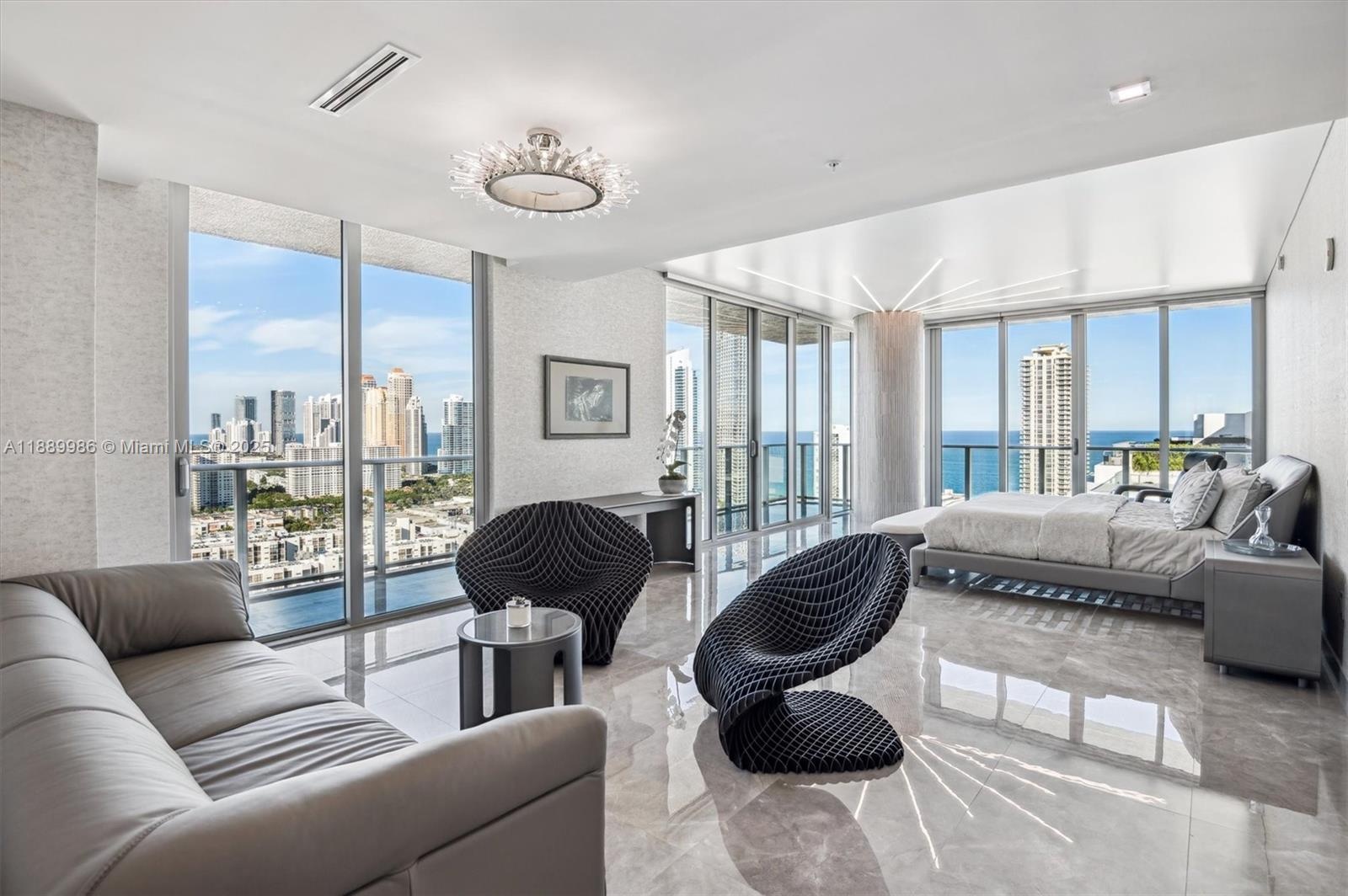 This stunning, state of the art Upper Penthouse is the epitome of turnkey luxury, w/4BR+Den & 5BA, spanning nearly 5,000sf of living space (3,877sf interior+1,011sf wrap around balcony) just steps from the beach. Professionally designed by Intero Futuro to provide an unparalleled living experience. Open layout with stretch ceilings and ultra-modern, linear LED lighting. Floor to ceiling windows with breathtaking views of the ocean, intracoastal and city skyline. Customized closets and a curated collection of luxury Italian furniture. Top-tier chef’s kitchen, Wolf/Sub-Zero/Bosch appliances with marble+adamantium quartzite countertops. Spacious primary suite with stunning ocean views, designer walk-in closet and a spa-like bathroom that creates a serene and lavish escape.